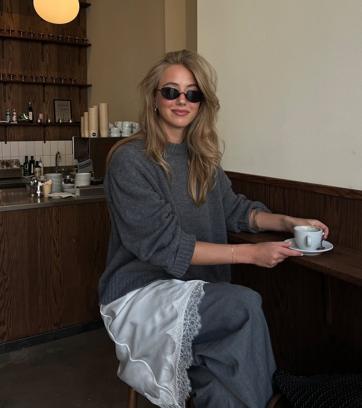 Maryline is wearing Le Presley skirt in Licorice as a top