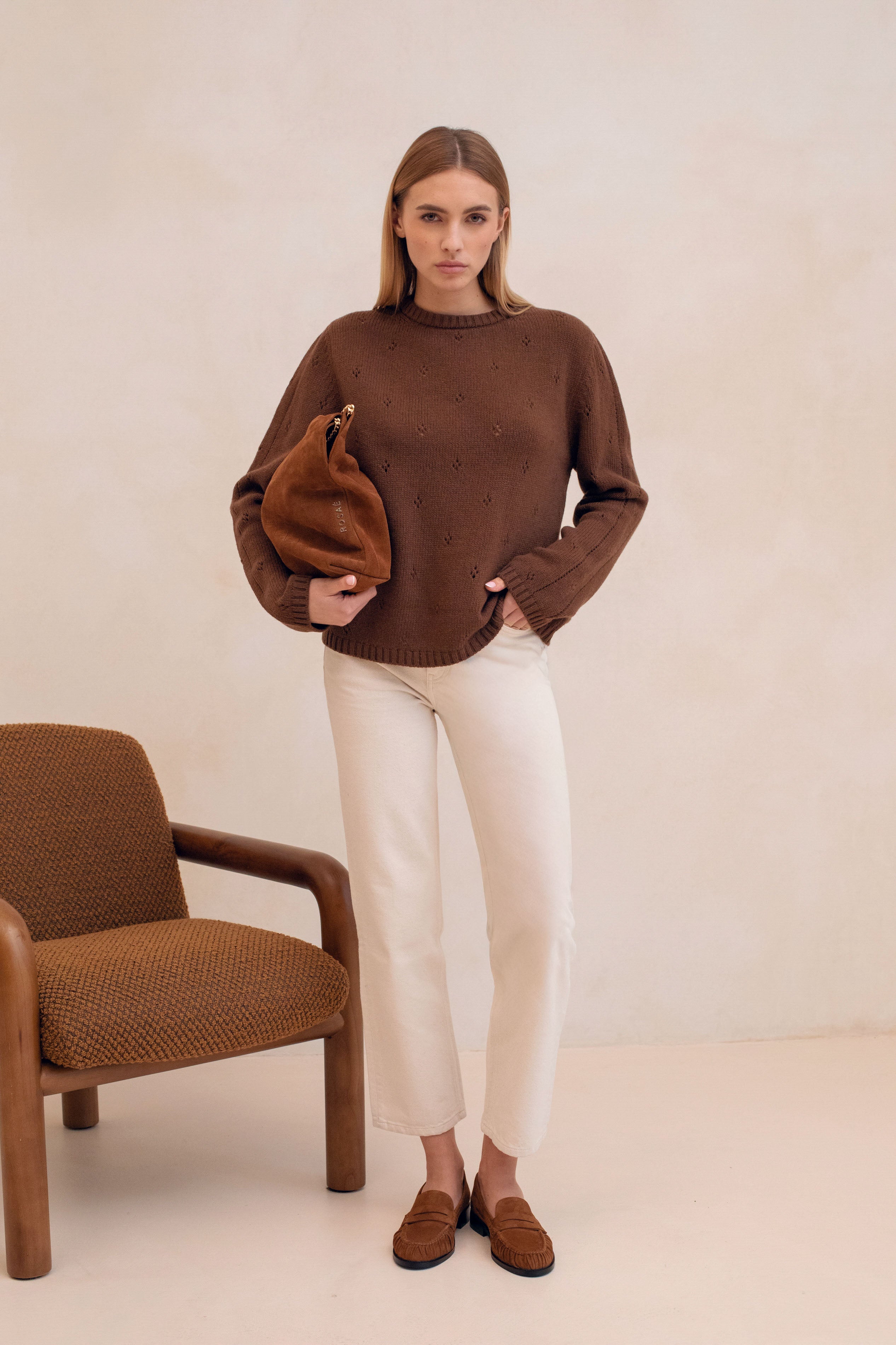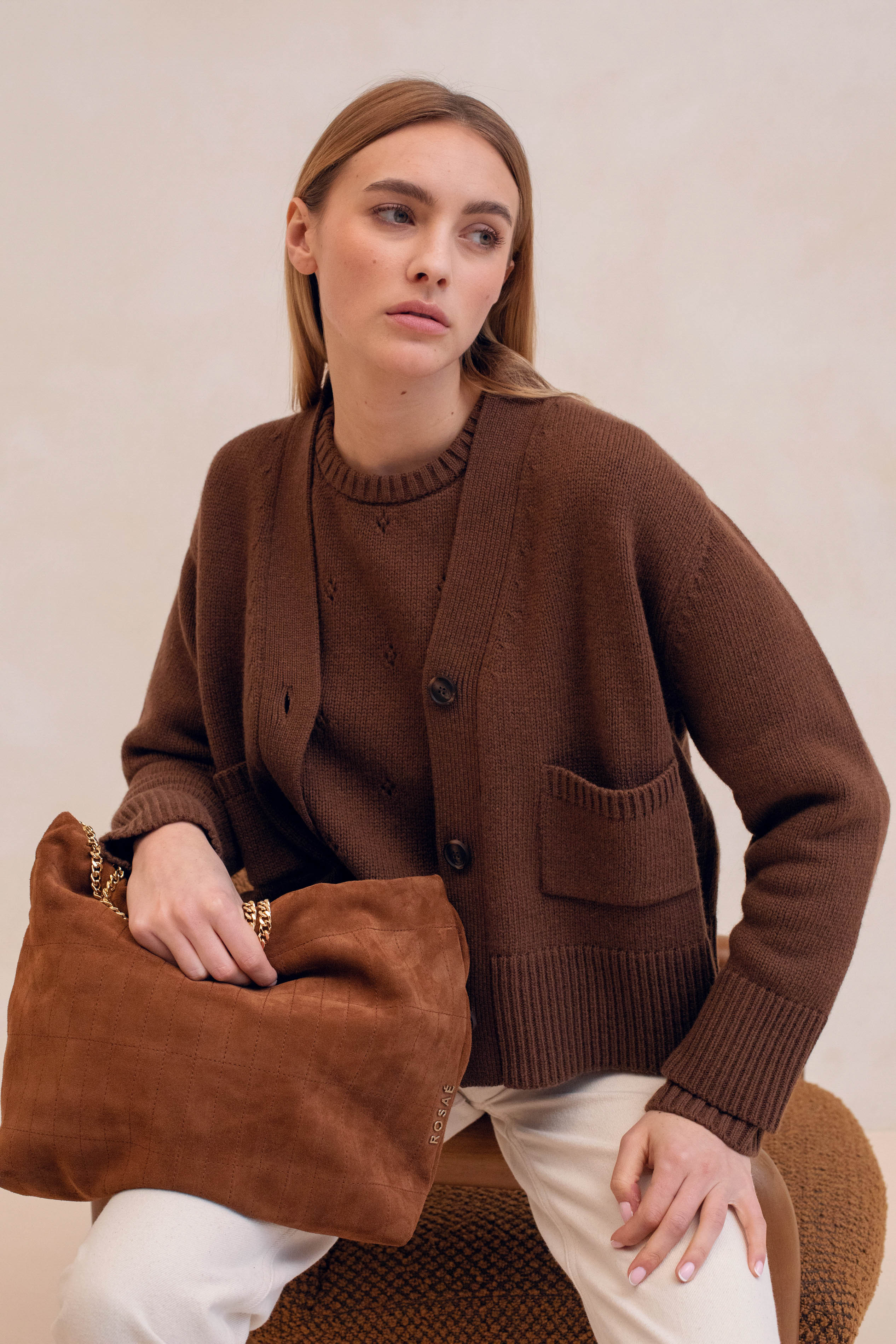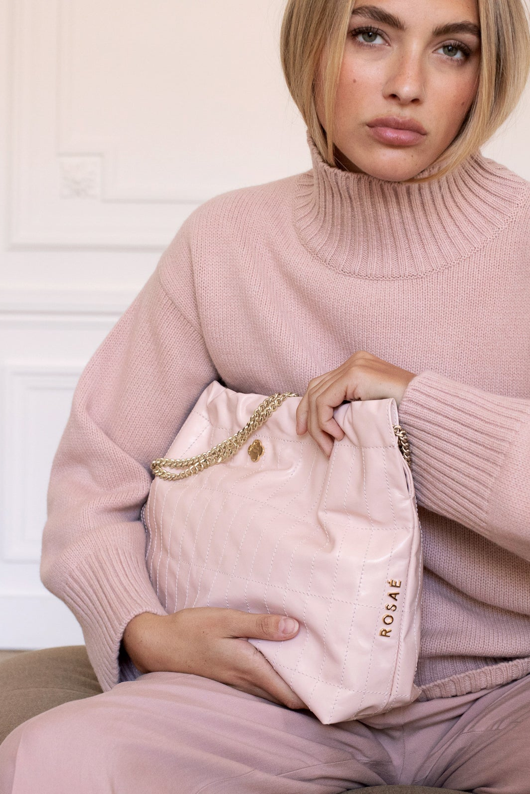 - Zipped Patched Pocket with Rosaé Paris logo (embossed on the chocolate suede version and hot stamped on the licorice and chantilly versions)