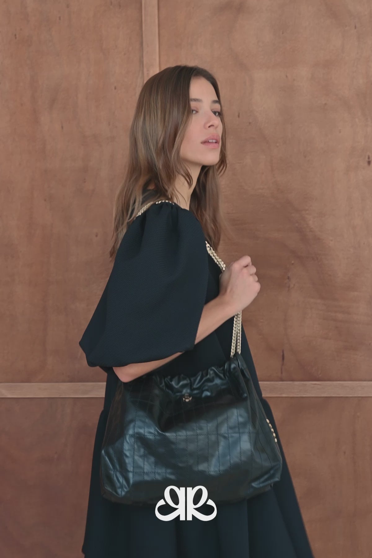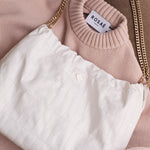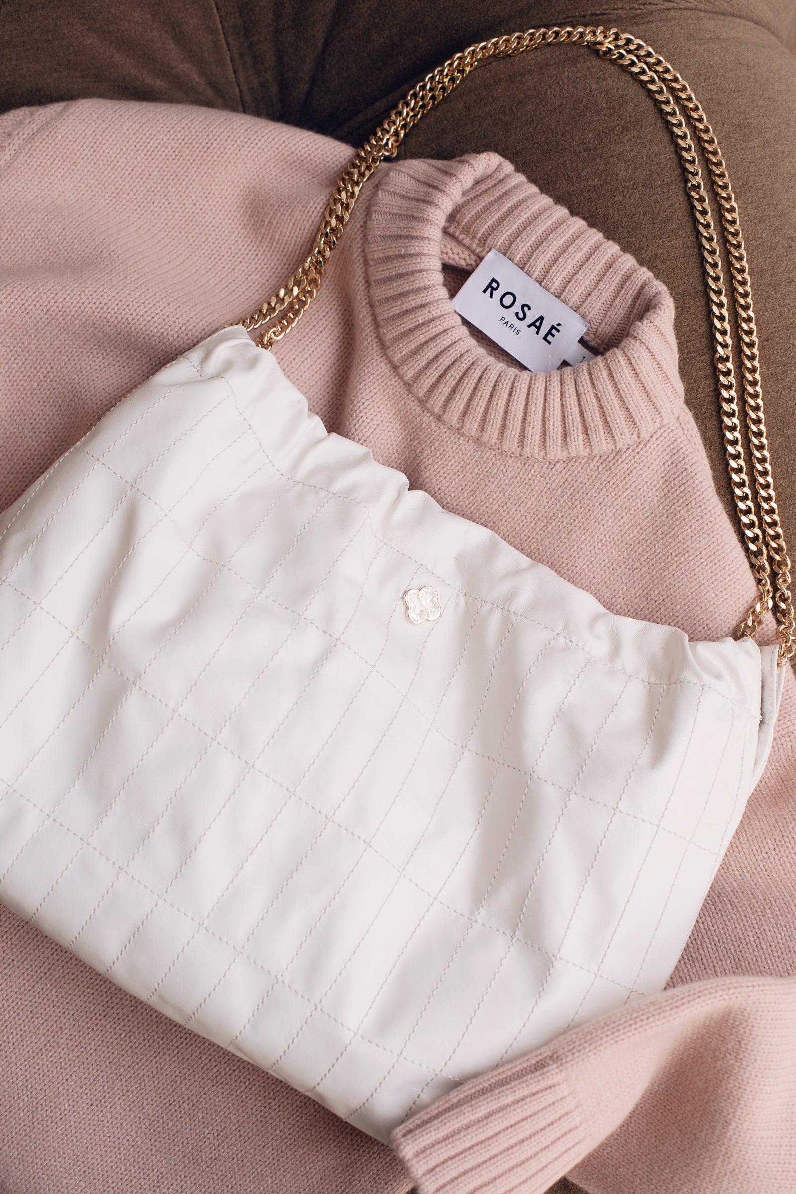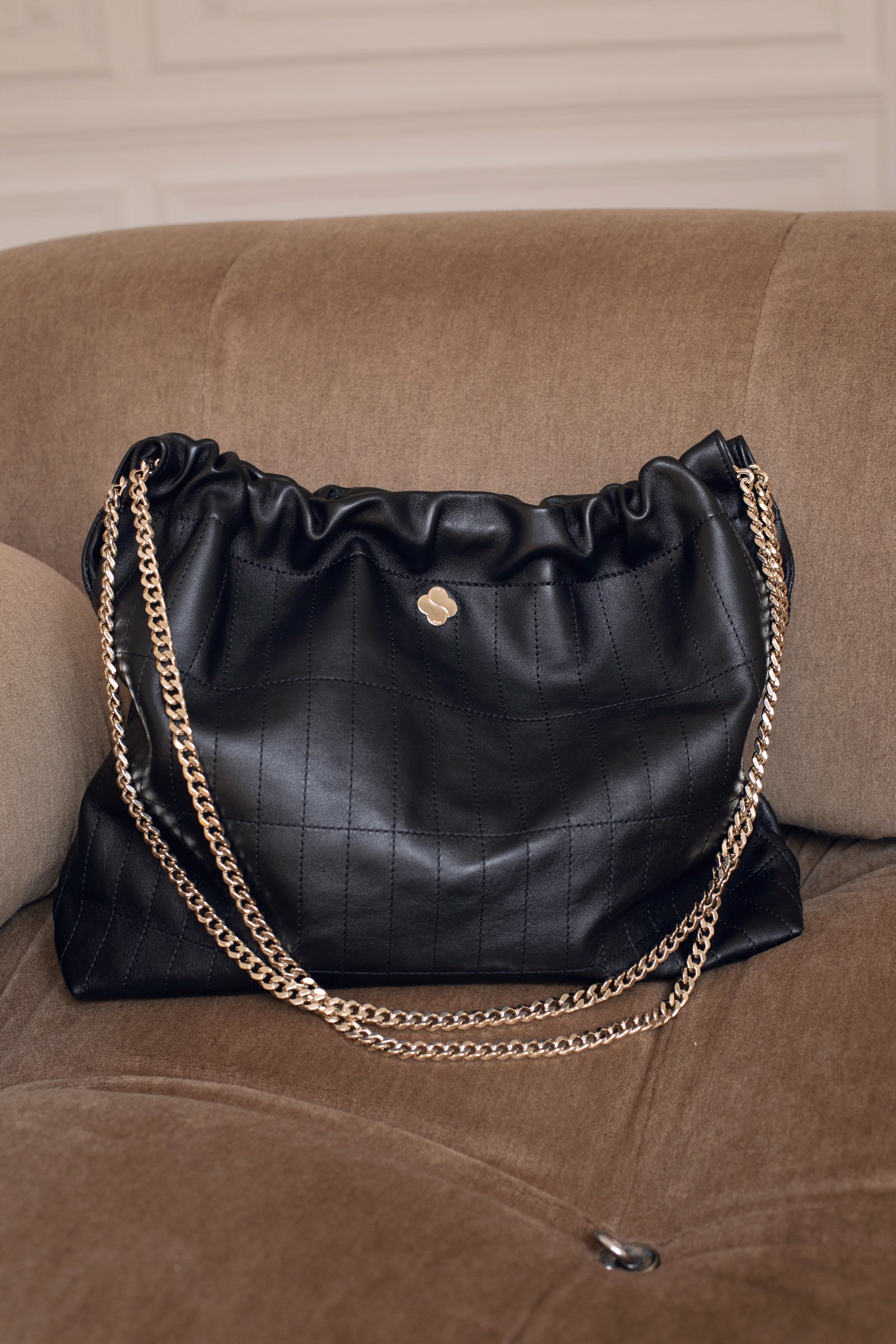 The pouch bag has become one of our everyday essential, an absolute must-have to wear from day to night. With its chic and luminous drawstring golden chain, Le Chenonceau is the most desirable adjustable handbag of the season. Made of soft, buttery premium leather, decorated with our exclusive rectangular topstitching and gold metallic logo and monogram, Le Chenonceau is lightweight and spacious, perfect for carrying all your essentials with you. A timeless, effortlessly chic and soon-to-be iconic piece that will elevate all of your outfits.