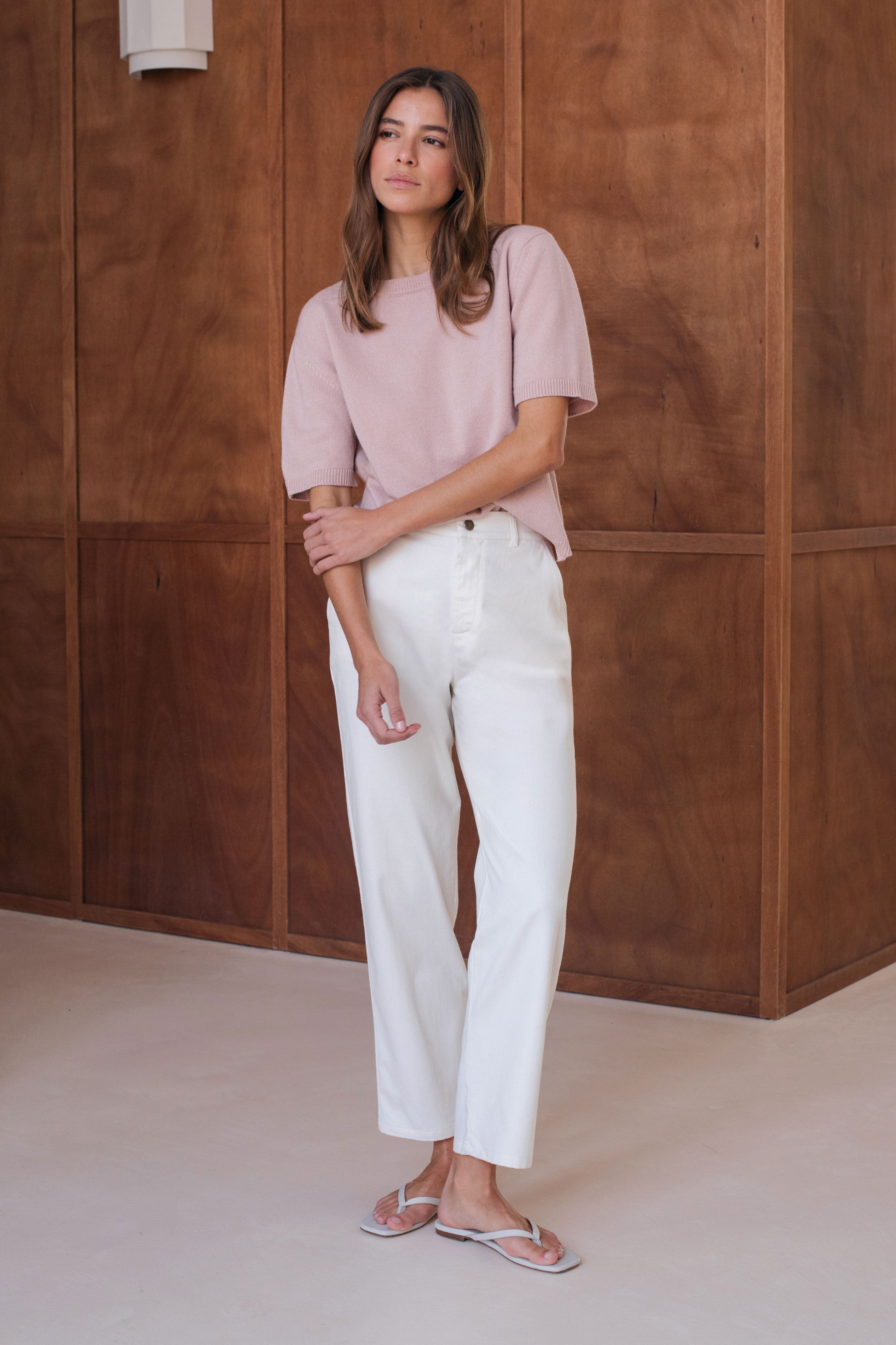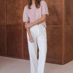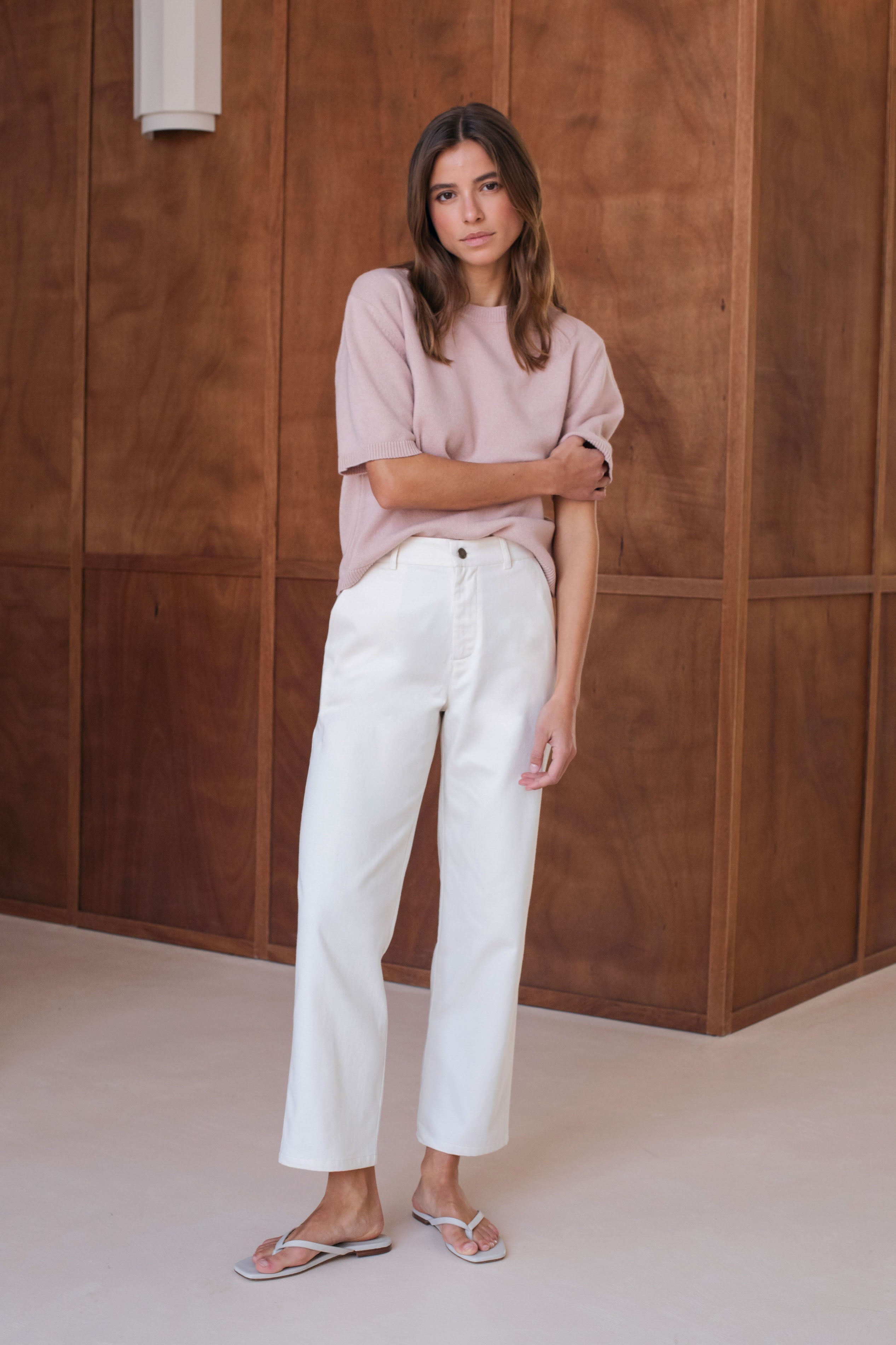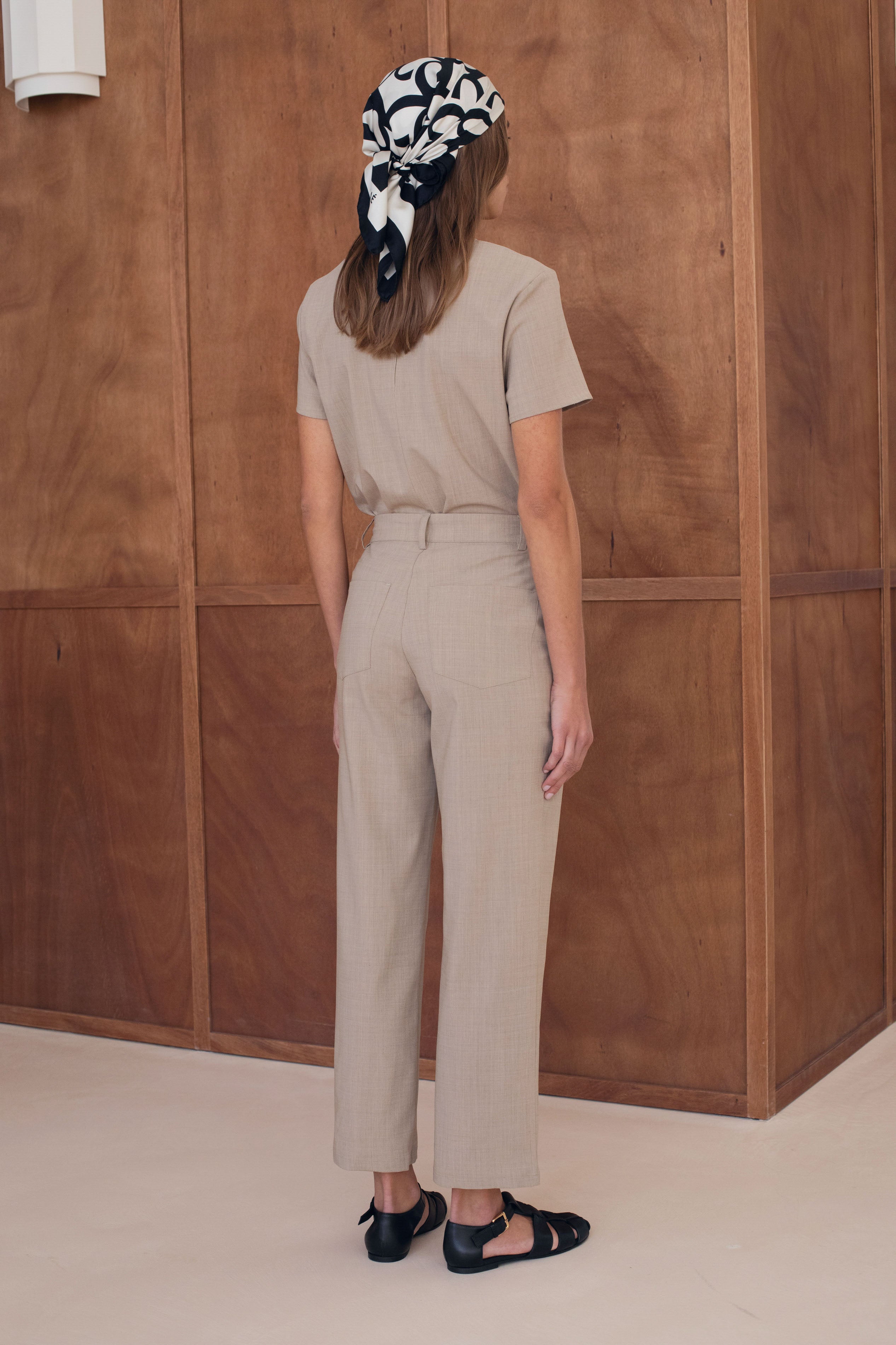 The fitted waist and slightly straight leg strike a delicate balance between comfort and sophistication. Every detail, from stitching to finishing, reflects careful craftsmanship and a couture spirit.