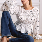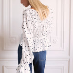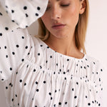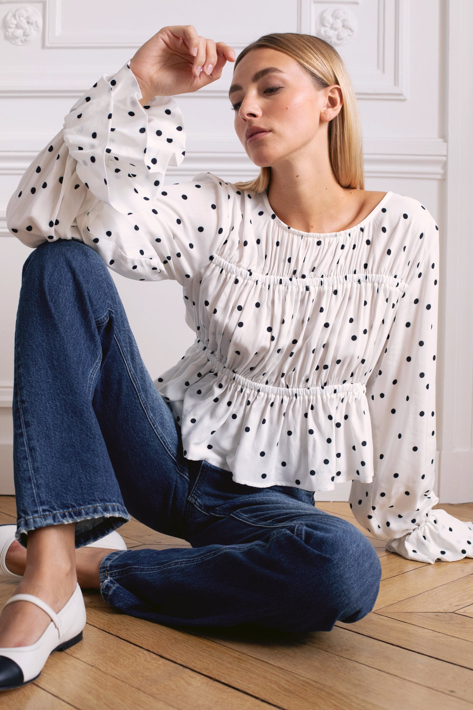 Our exclusive dots print is made espacially for us in France on EcoVero certified viscose. This version of the blouse was manufactured in Bulgaria.