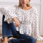 Perfect match between bohemian and romantic, Le Delaunay is a lovely smocked-inspired, long sleeves blouse. Made of aerial and flowy fabrics for a very pure feel and smocked on the body for a slightly retro touch, Le Delaunay is also impeccably finished with a tightened double-flywheel cuff that you'll love revealing under your favorite knits and blazers.