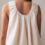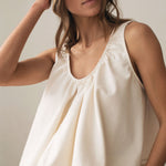 Shaped by a softly gathered round neckline that creates a natural movement through the bodice and wide shoulders that bring structure to the silhouette, Le Dory has a modern, almost sculptural presence.