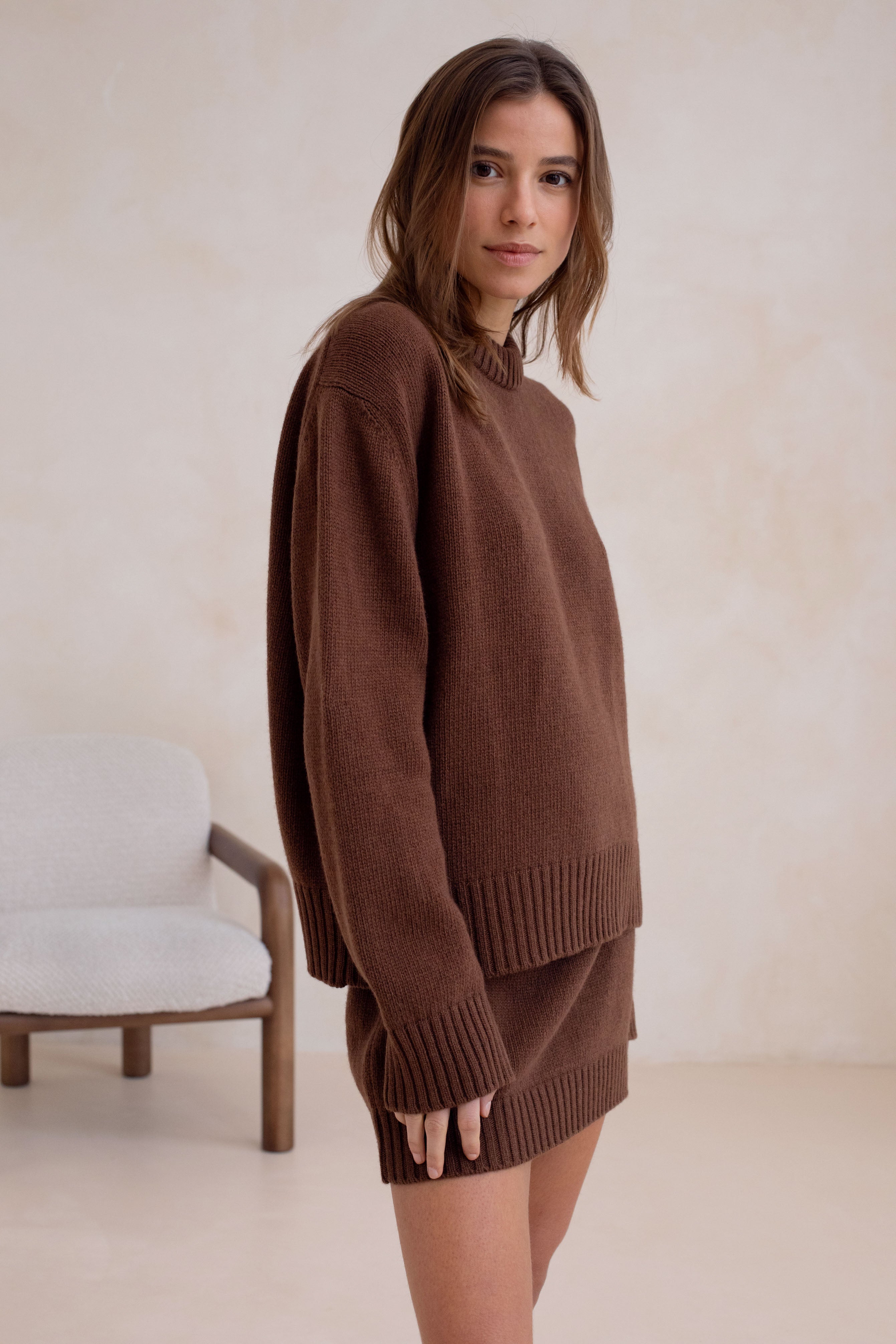 For the most comfy and gorgeous matching set, pair Le Feyder skirt with the matching Le Chopin knit, and our knee-high boots Les Fabien. But of course, you can wear it on its own, with your favorite knit, an oversized shirt underneath and sneakers for example.