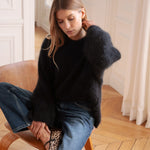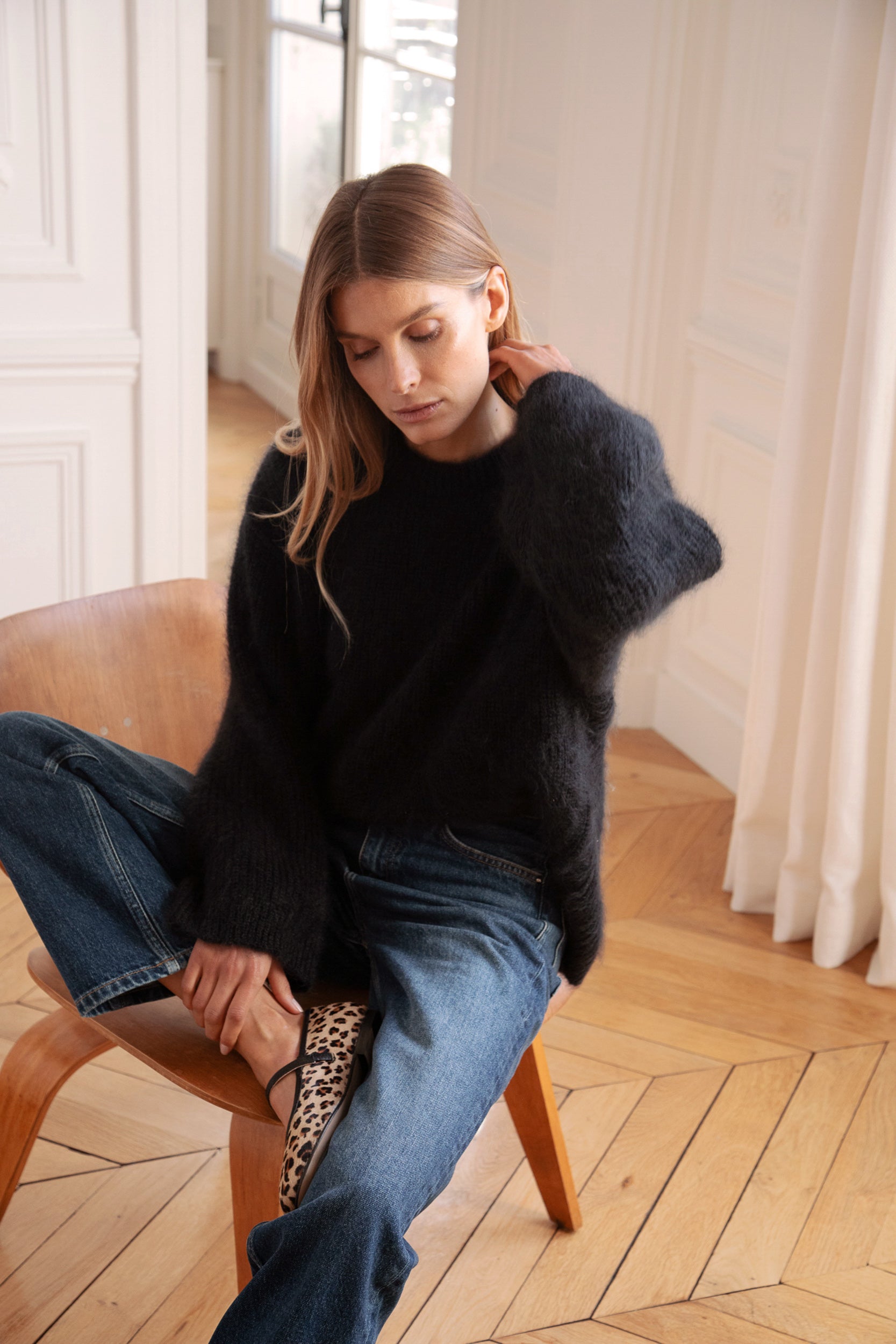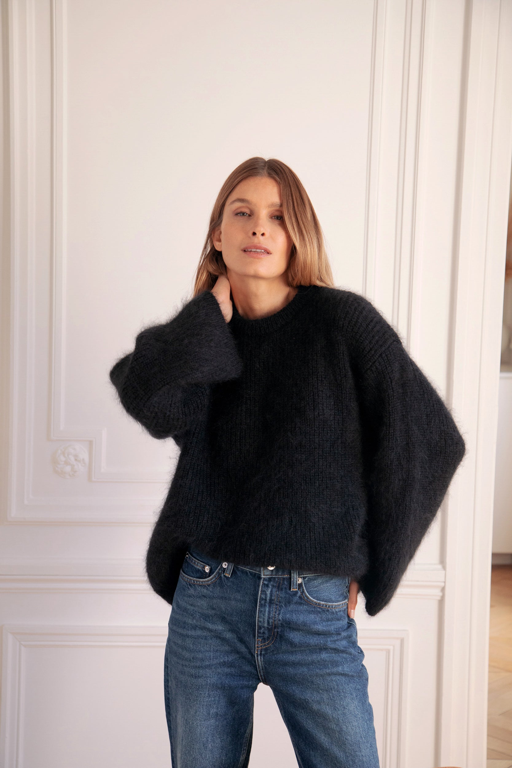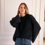 We like our knits designed to bypass trends so you'll return to them each season, and Le Nicolas is no exception. Knitted from our most deluxe signature light and hairy silk and mohair yarn, it is shaped to a wide, relaxed silhouette with dropped shoulders, extra-long sleeves and a straight hem. Fluffy, timeless, essential: Le Nicolas will sweep you off of your feet and become your go-to knit for all your outfits.