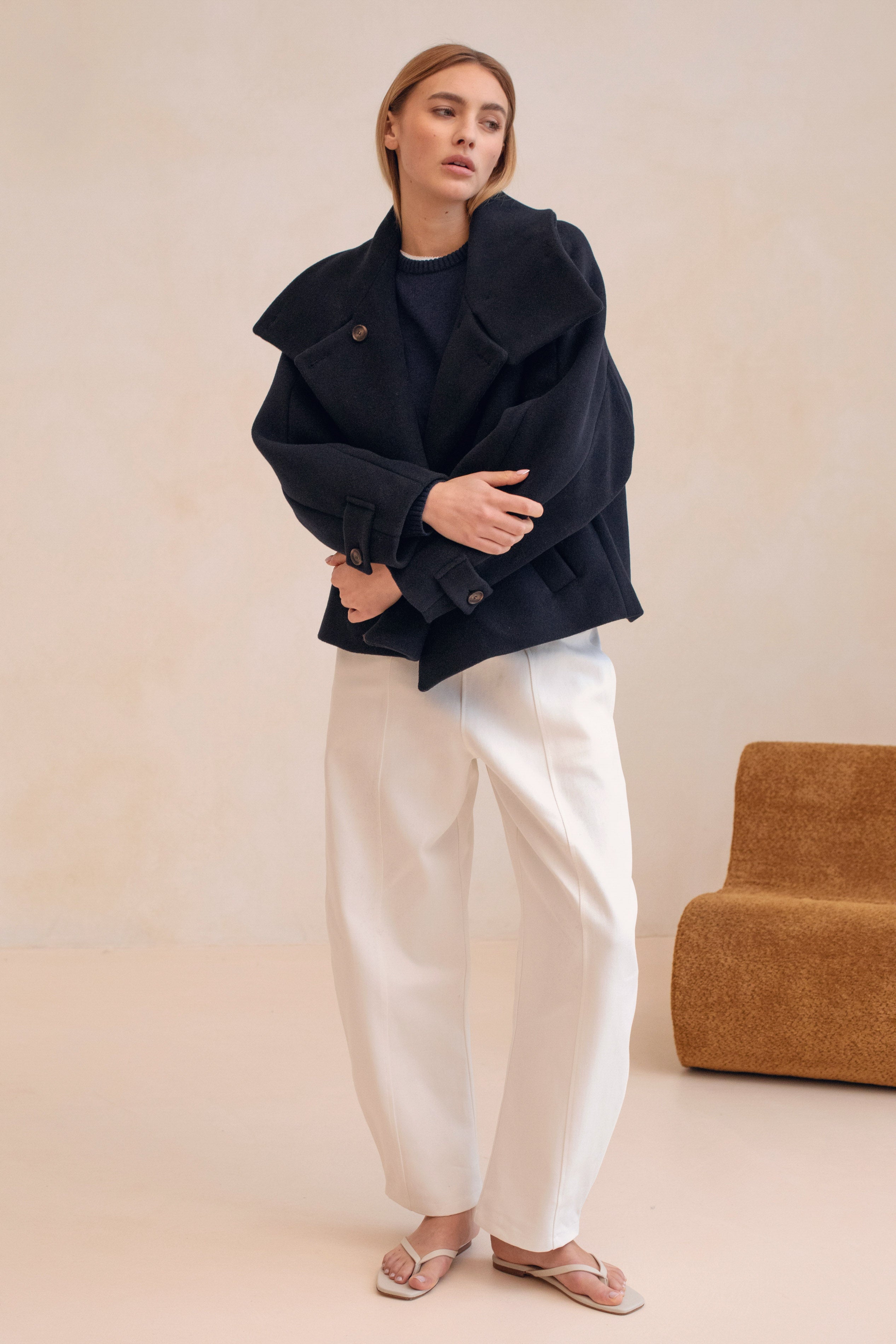 For the most timeless yet elevated look, pair Le Rimbaud with a white tee, jeans and flats. Finish the outfit with an oversized blazer.