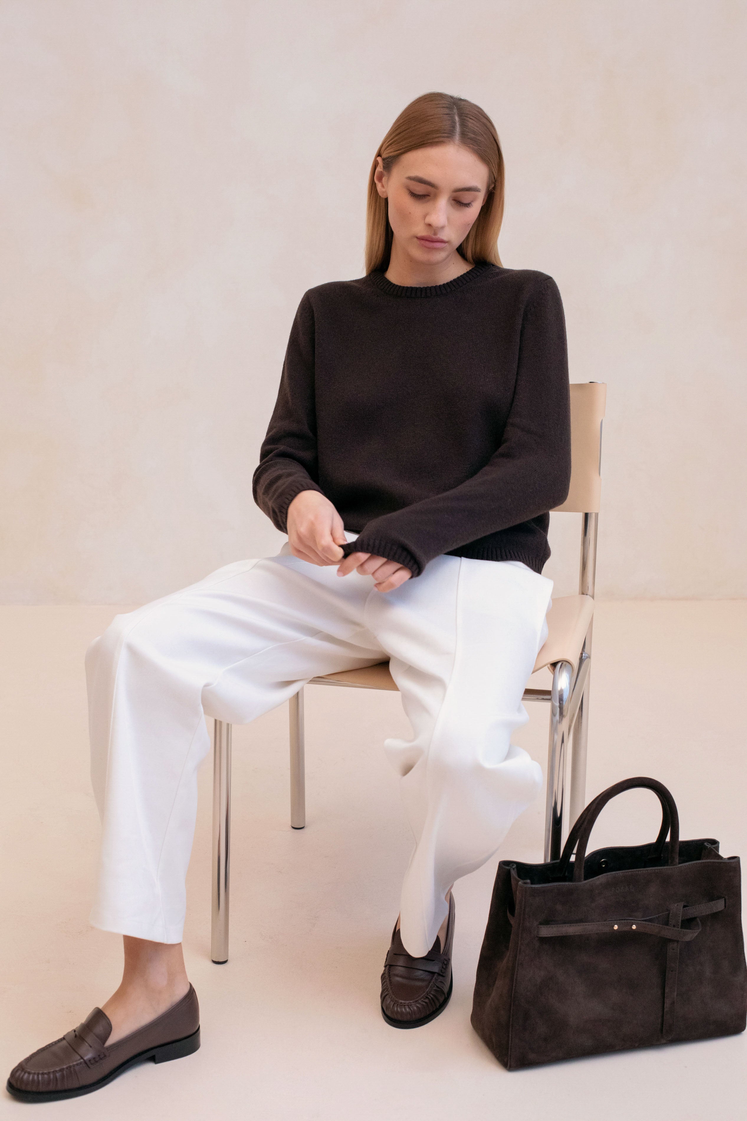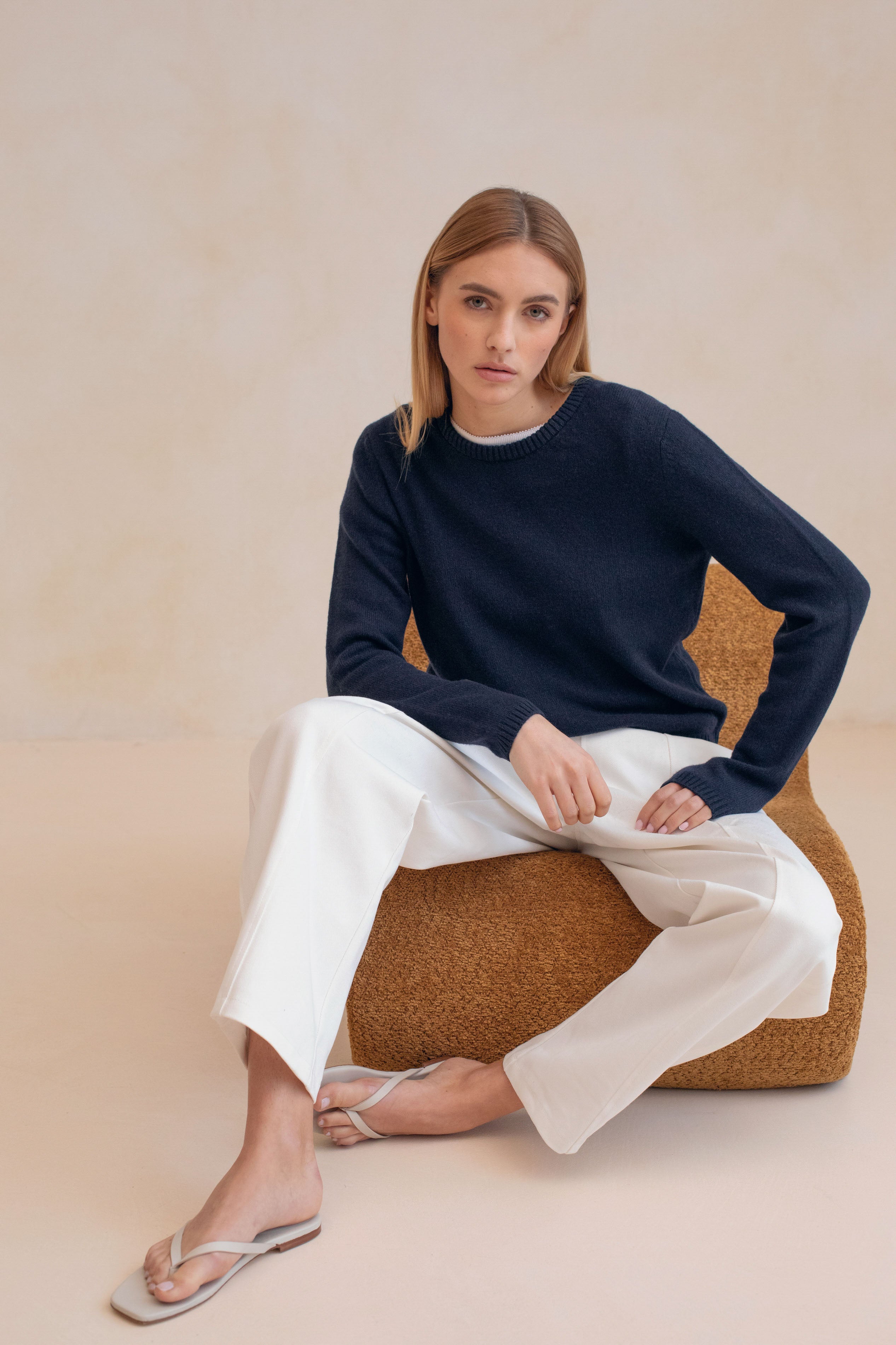 True wardrobe essential, the classic slightly fitted crewneck knit is one of the most timeless and versatile piece there is, one you can easily style whatever the occasion.