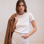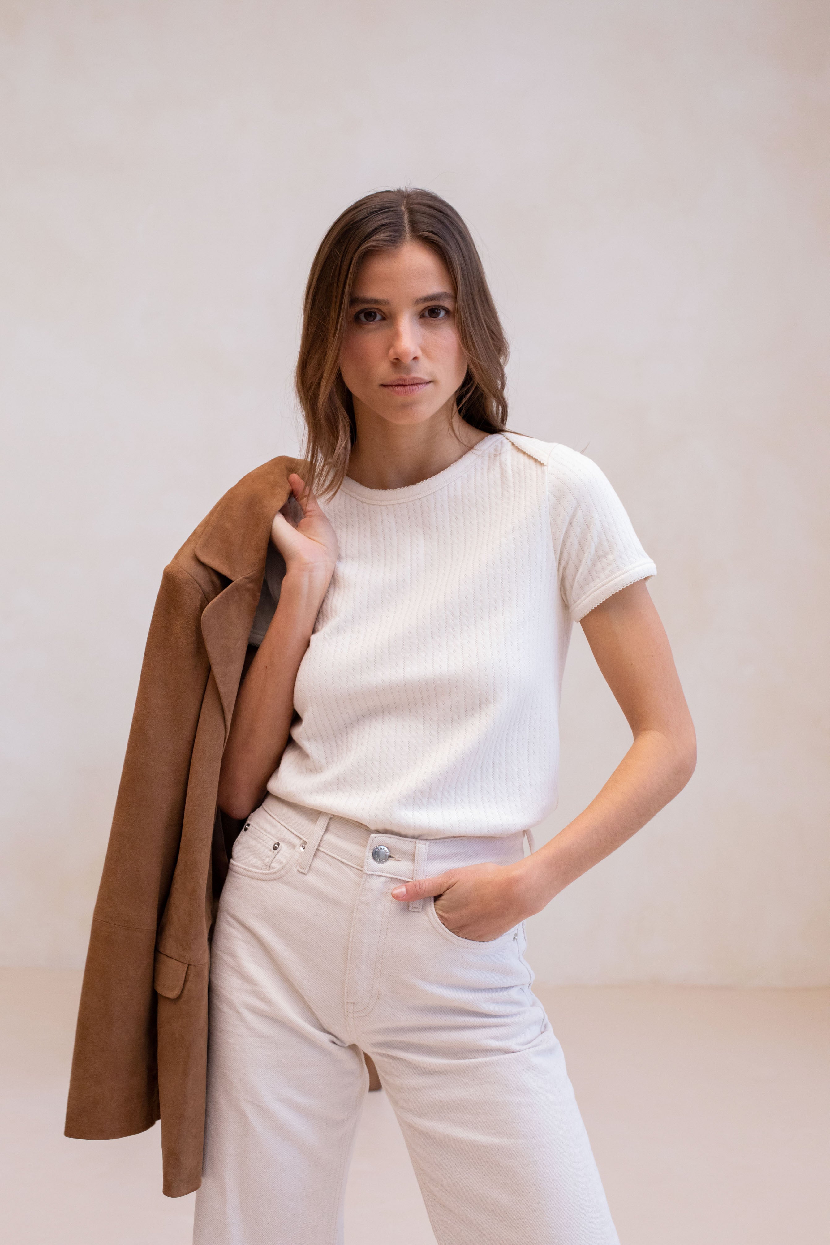 For a gorgeous outfit, just pair Le Thibaud suede jacket with a white tee and white jeans.