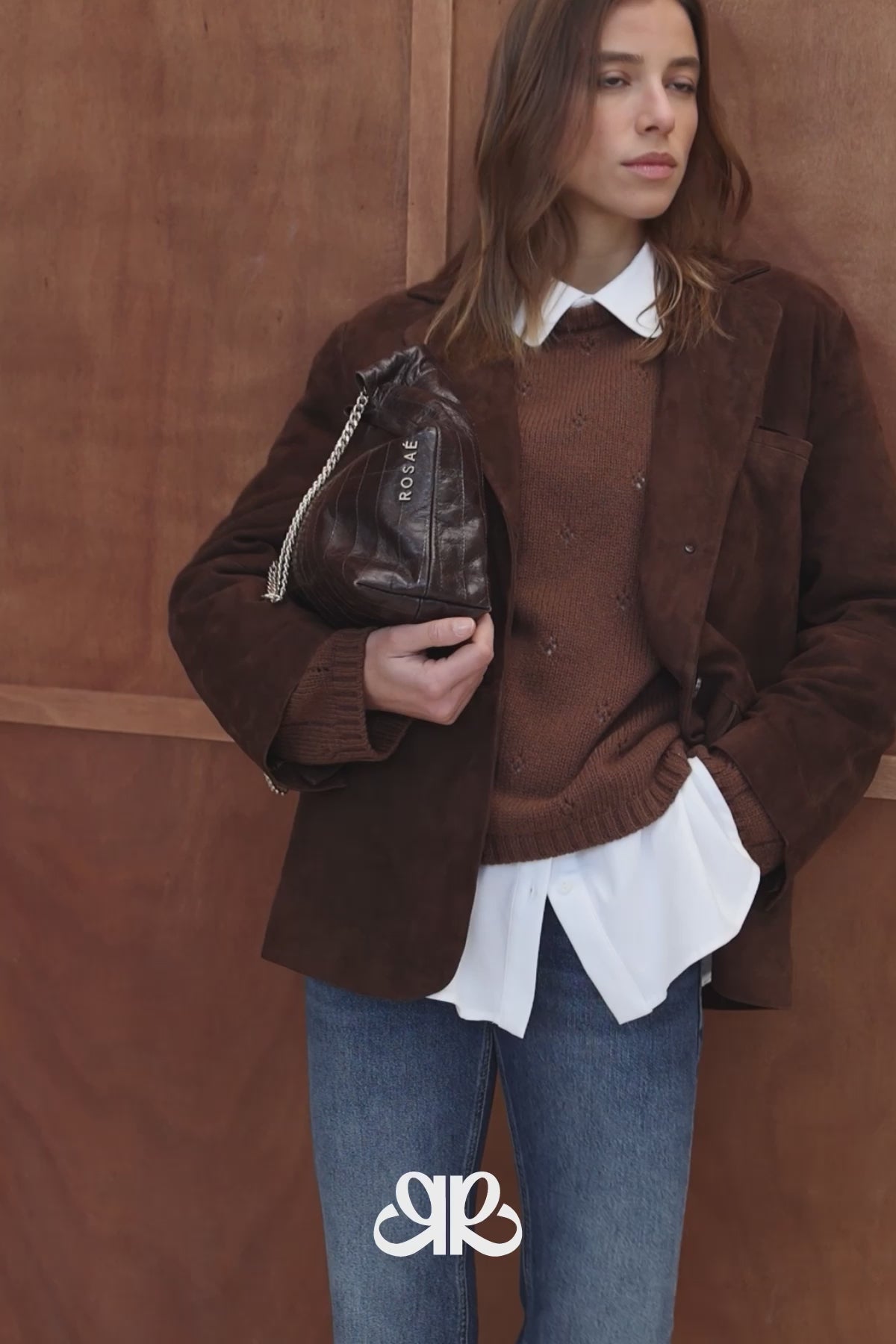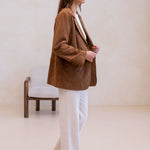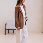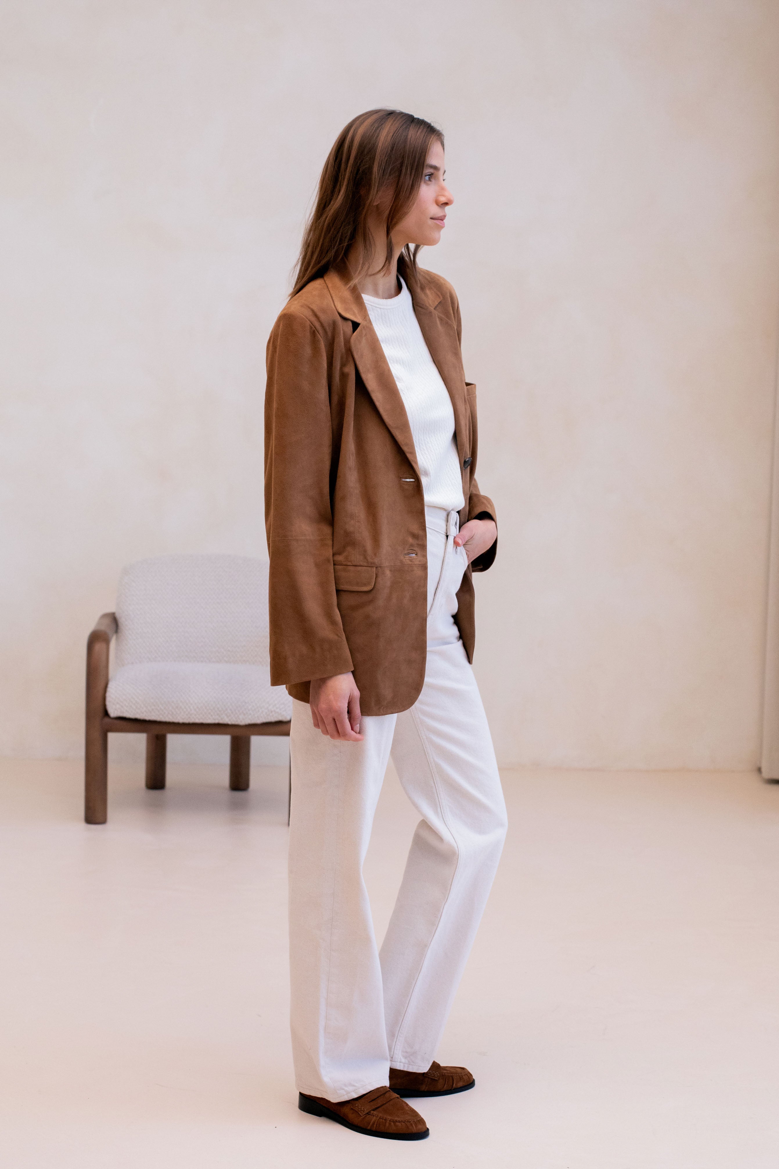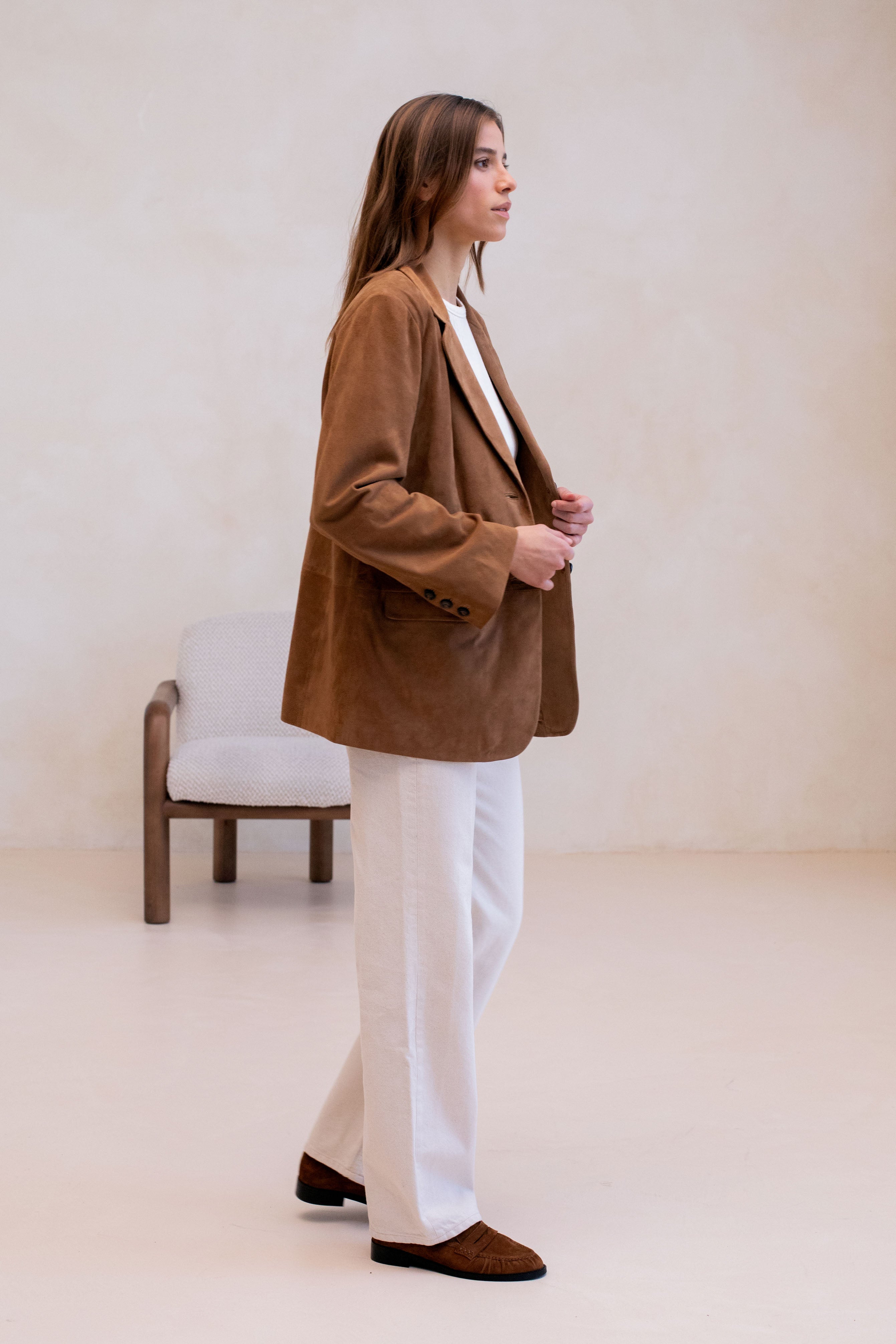 Exceptional piece infused with a 70's vibe, Le Thibaud Suede jacket will certainly catch your eye. As desirable as it gets, Le Thibaud takes up all the codes of the impeccably cut blazer: the slightly oversized boyfriend silhouette, minimalist lines, a beautiful button - no need for more, the luxurious feel of its fabric makes all the difference. Definitively a statement piece that will take your outfit to the next level.