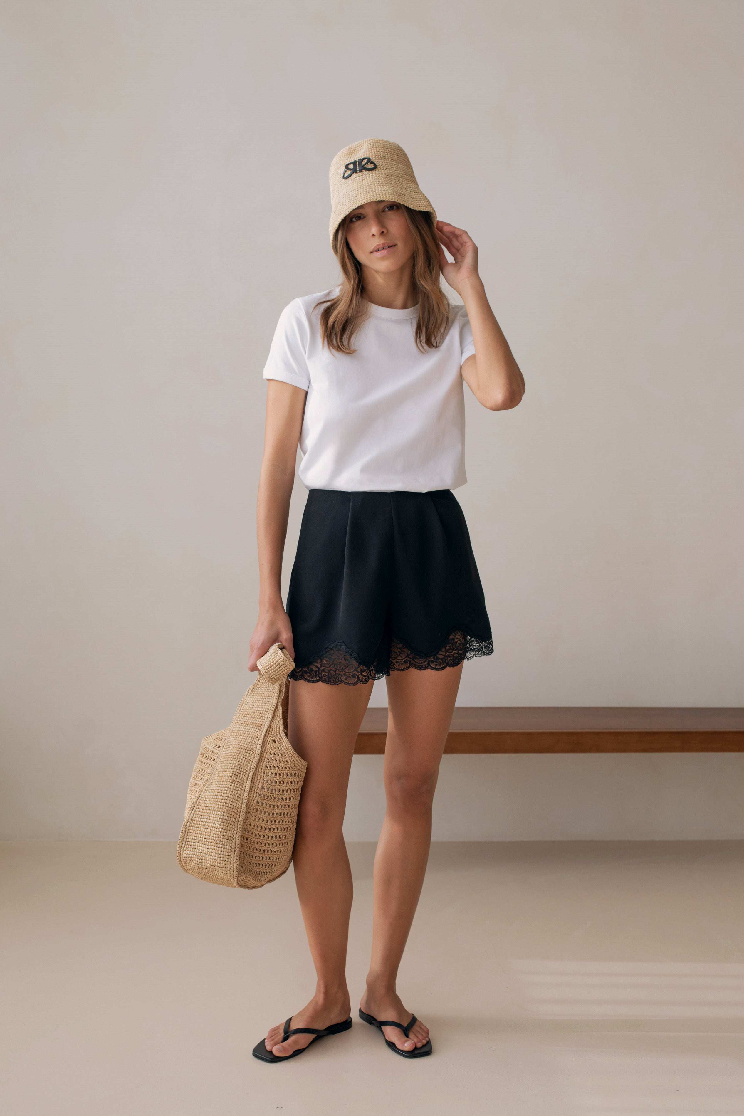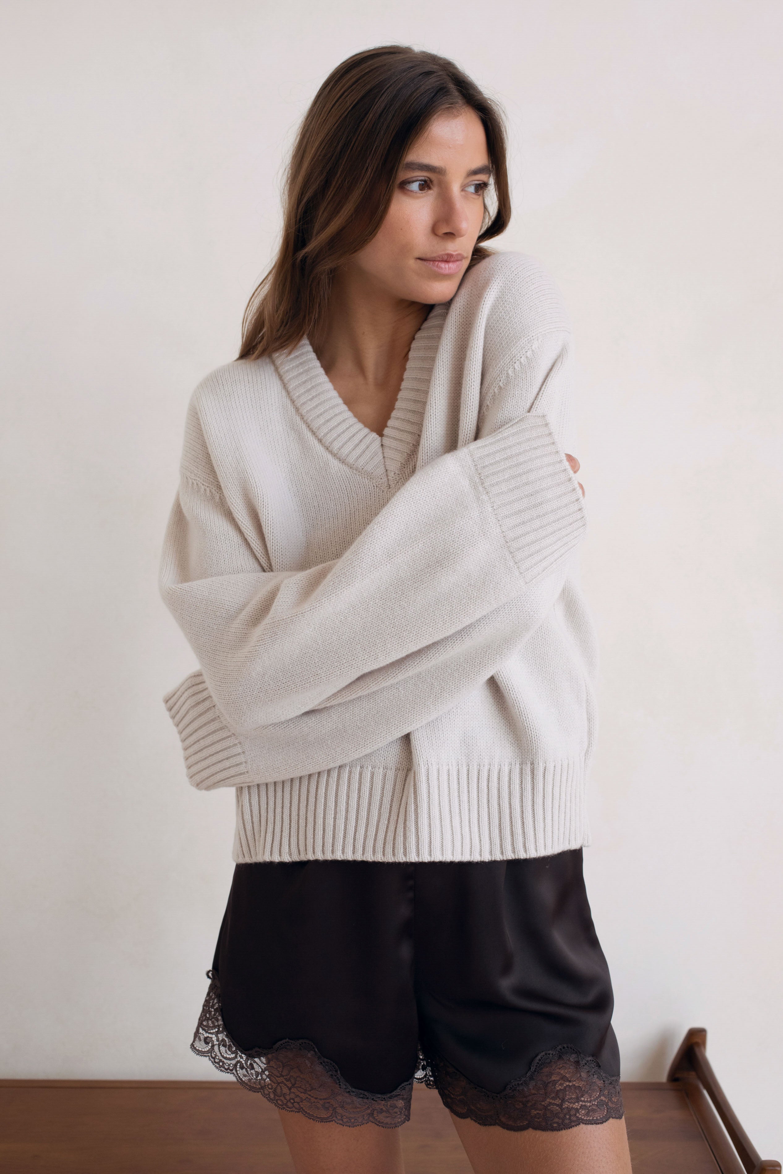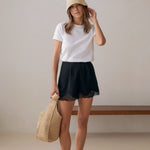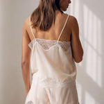 Crafted from fluid satin with a luminous finish, Le Vigny shorts softly follow the silhouette. Its minimalist cut is enhanced by delicate lace inserts along the hem, subtly revealing the skin.