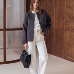 The main tags and size tags are made with recycled polyester or cotton, the composition tag is printed on recycled polyester or cotton and the hang tag is made of recycled paper. All these tags are produced in small series, to avoid wastage.