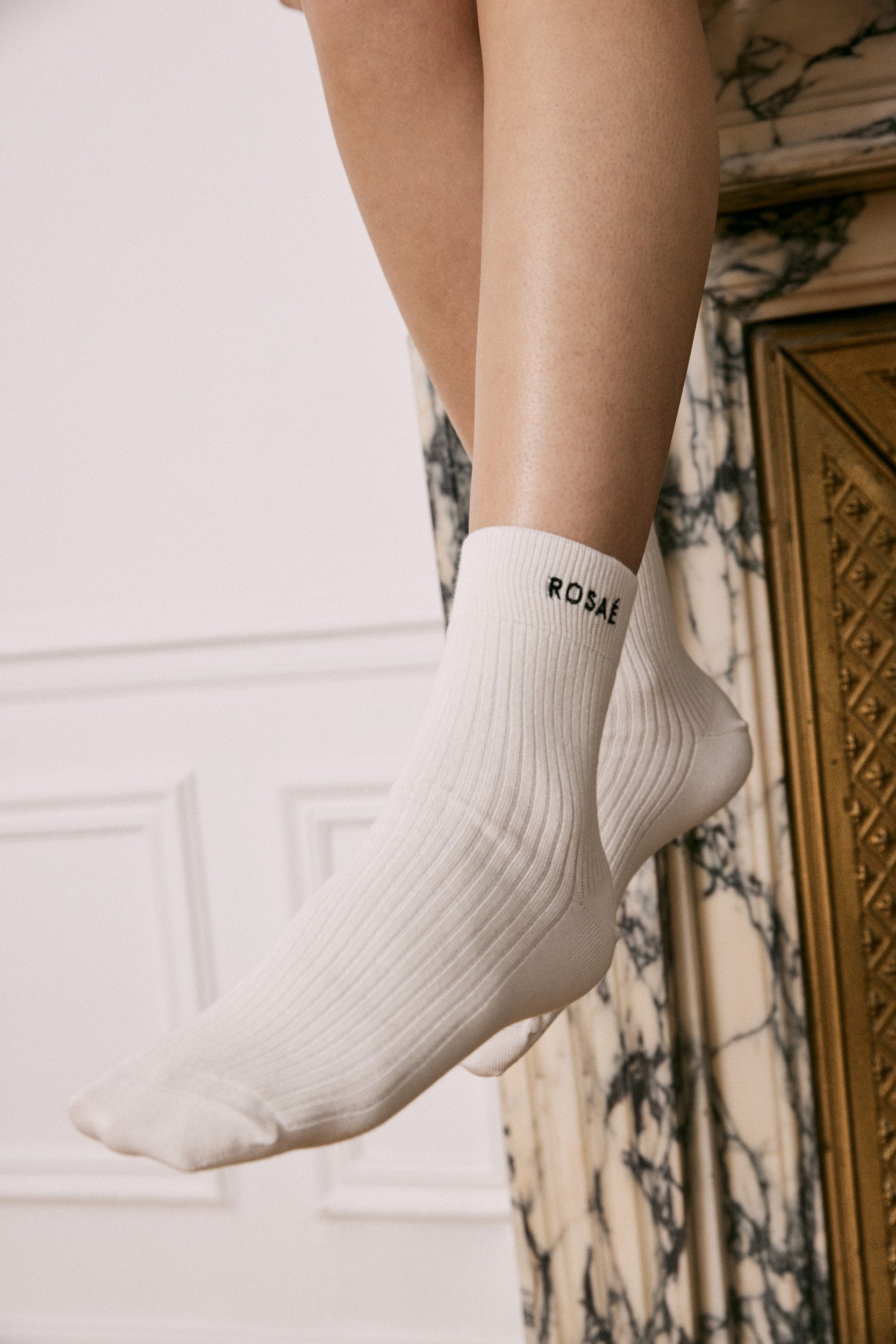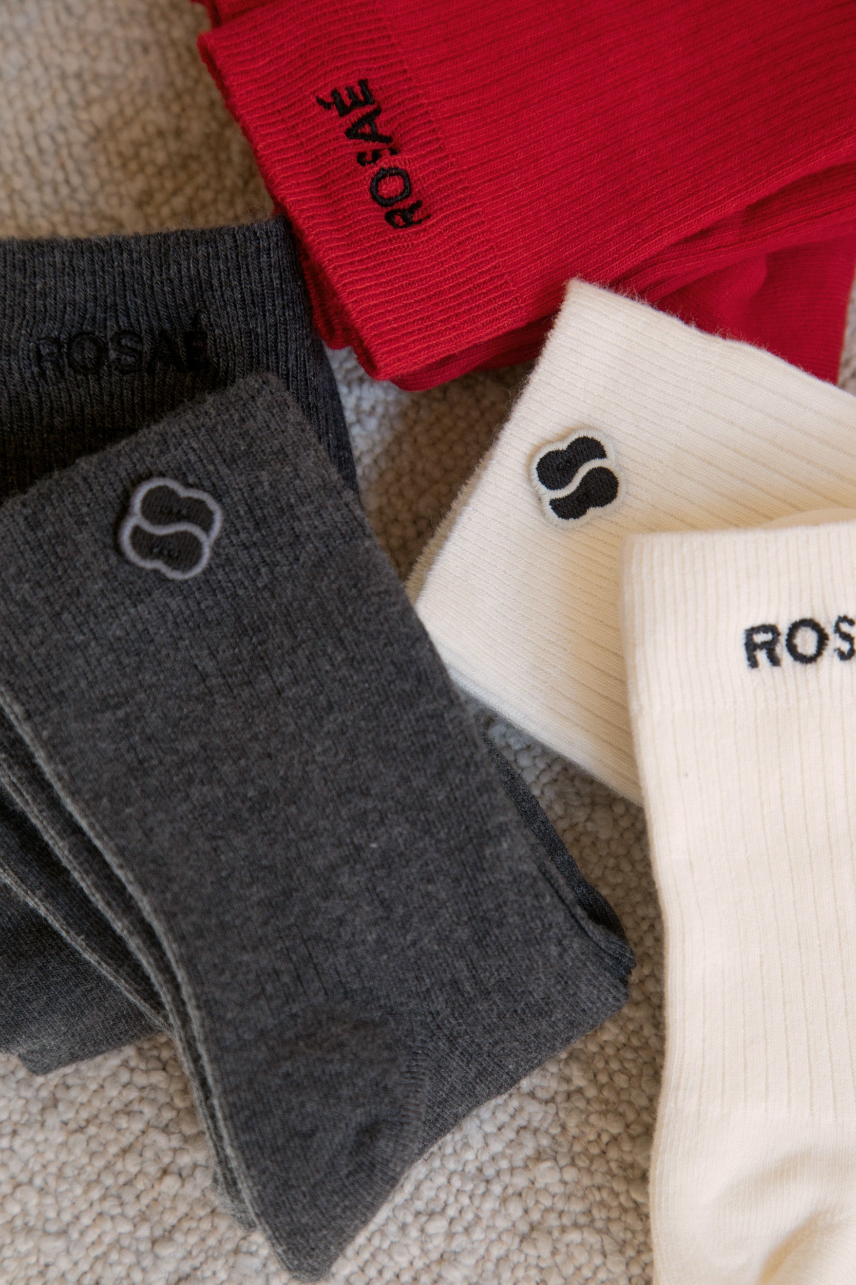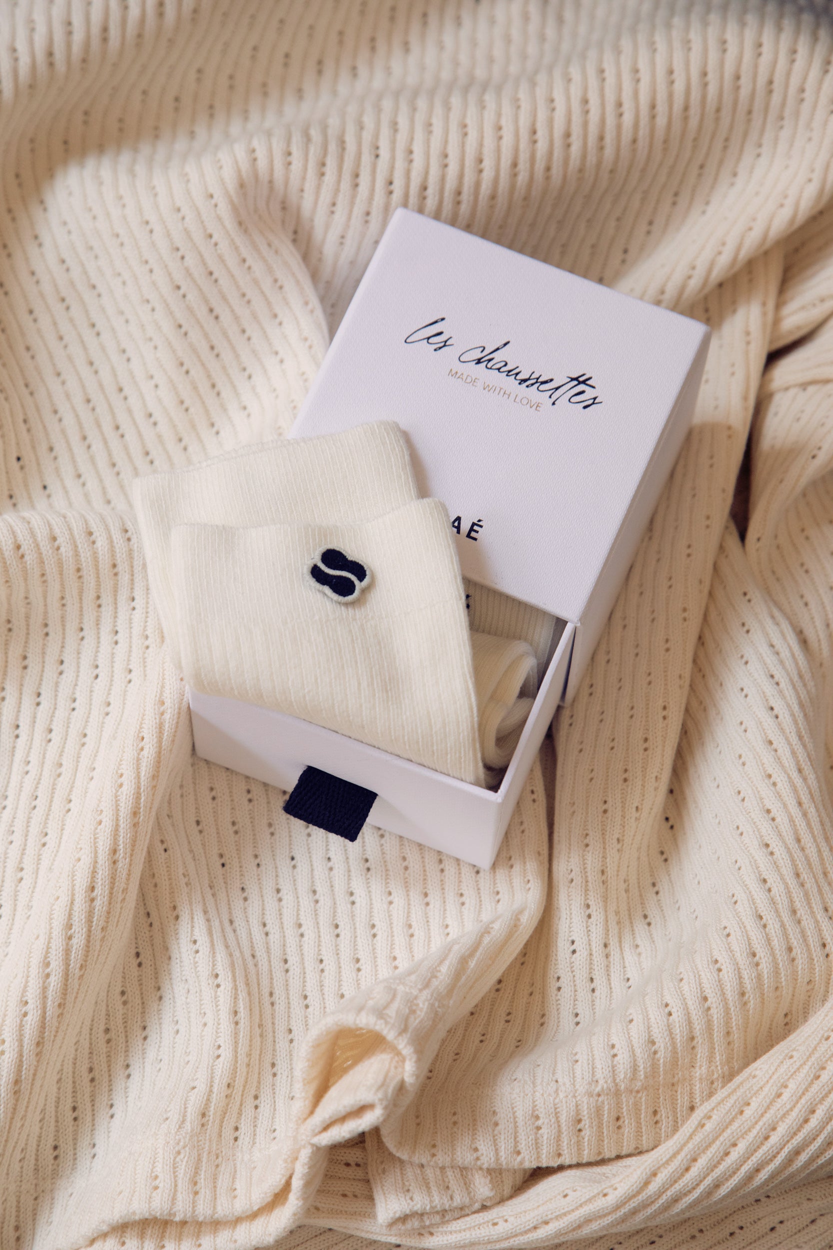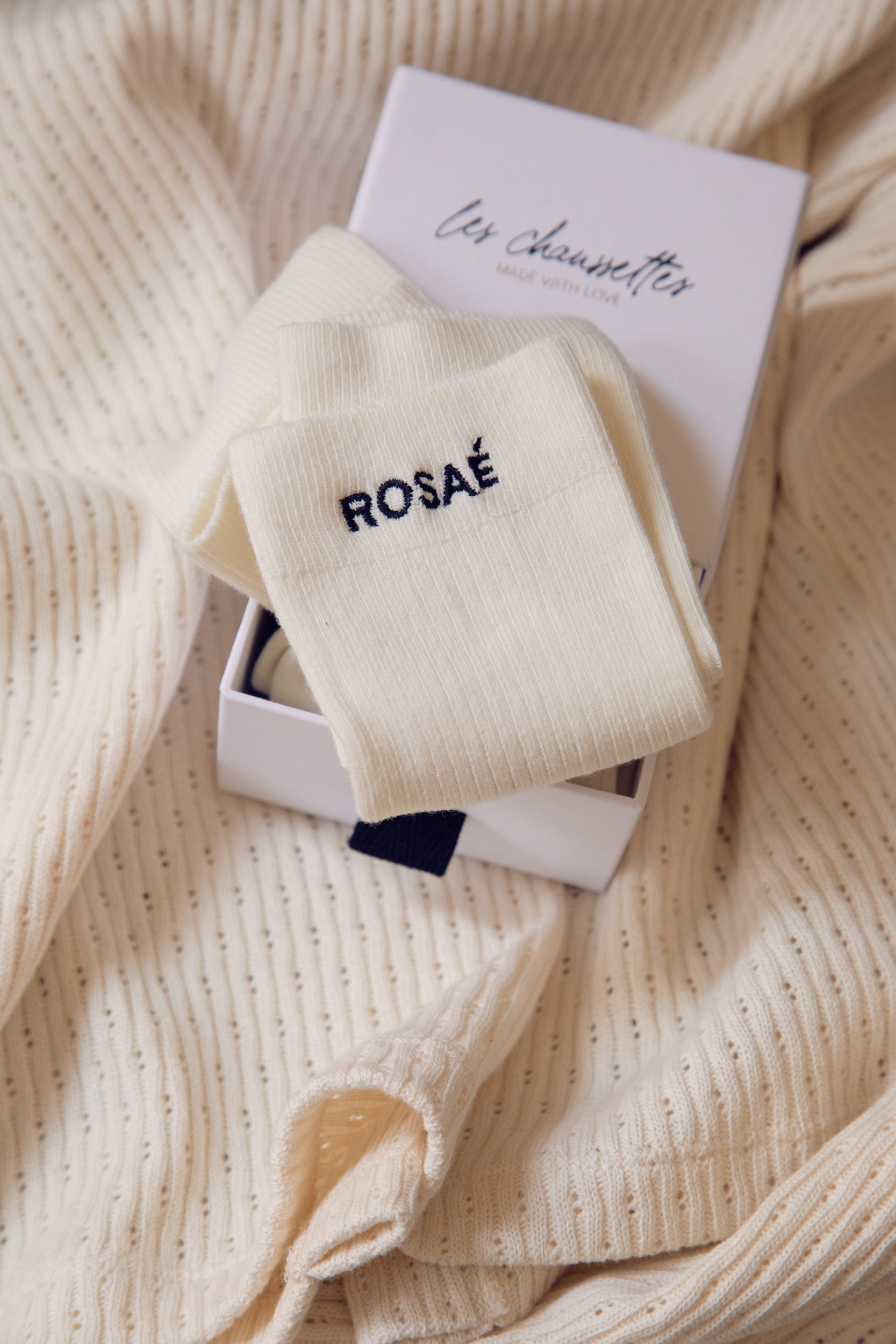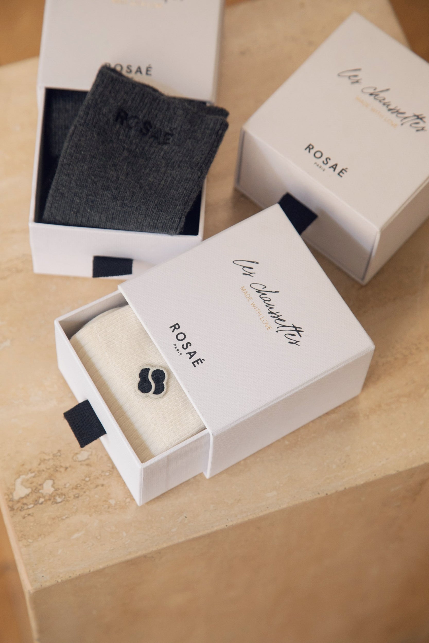 Box of 2 pairs of socks: one pair with the Rosaé logo, the other one with our monogram patch.