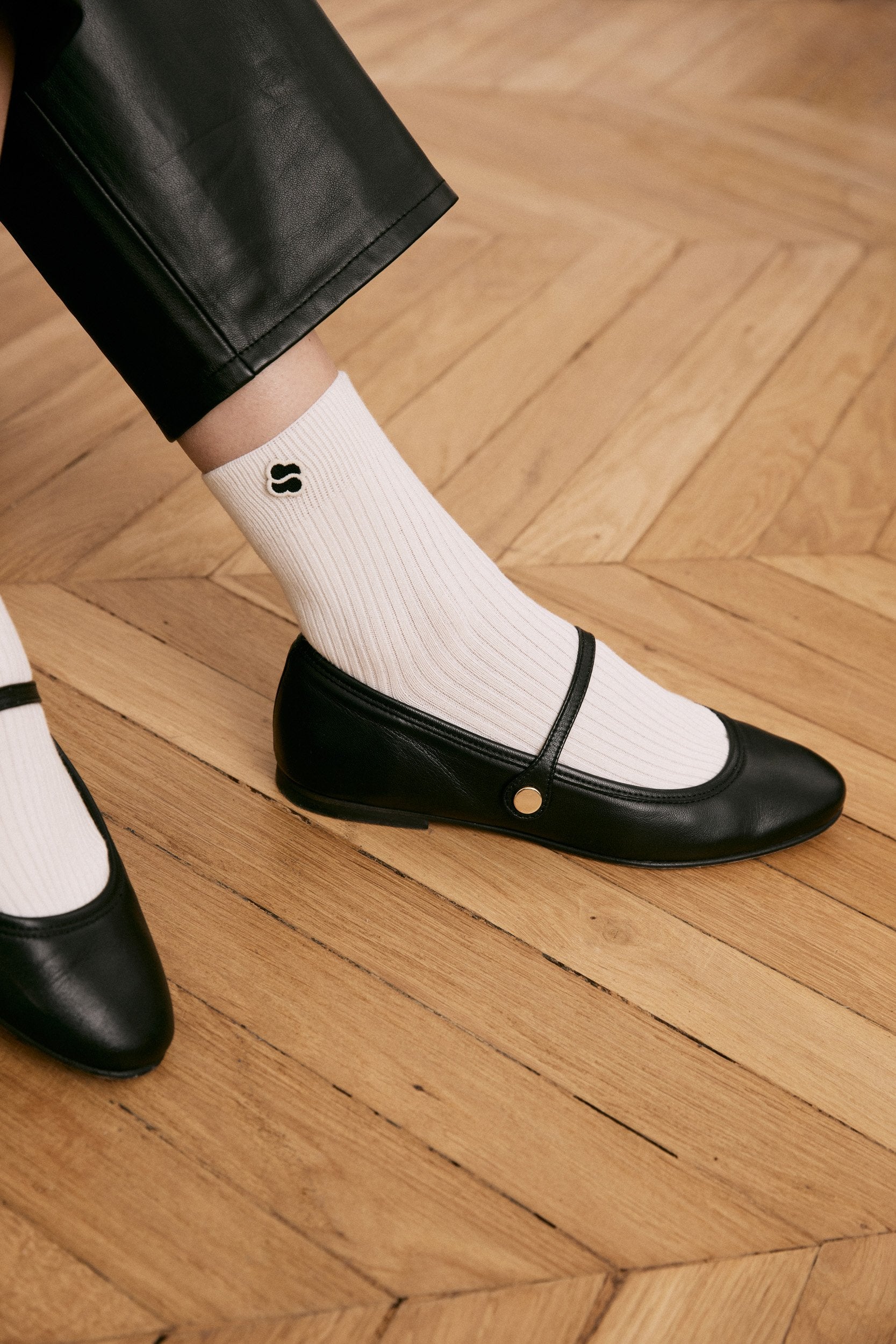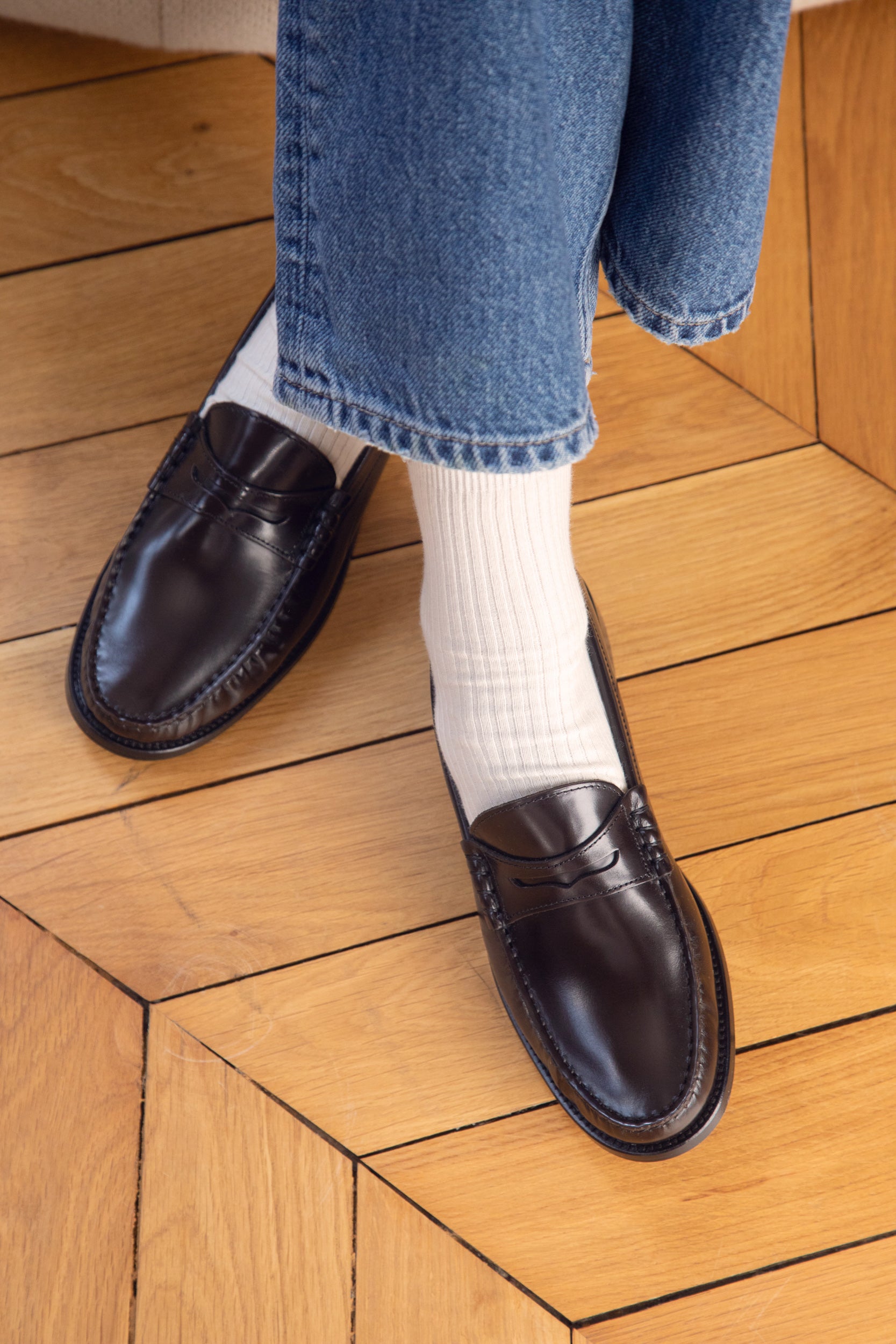 For the perfect preppy outfit, wear Les Joaquim socks with loafers. Add leather pants, a skirt or shorts, and chunky knit and your favorite blazer, and you get to cutest outfit.