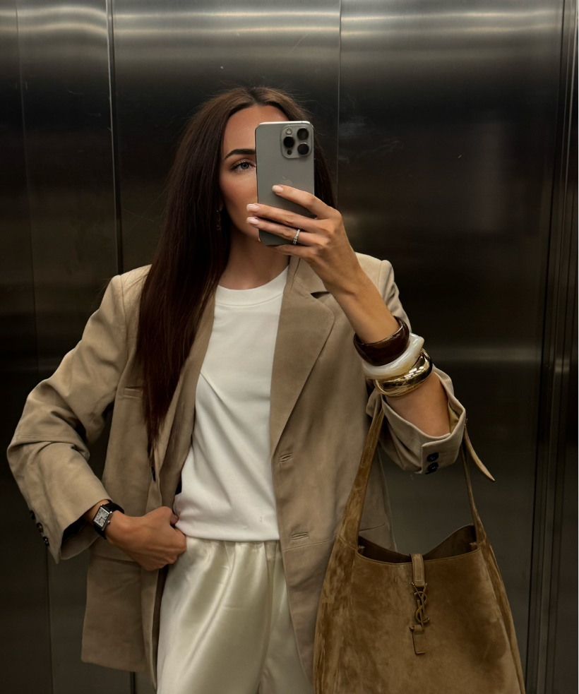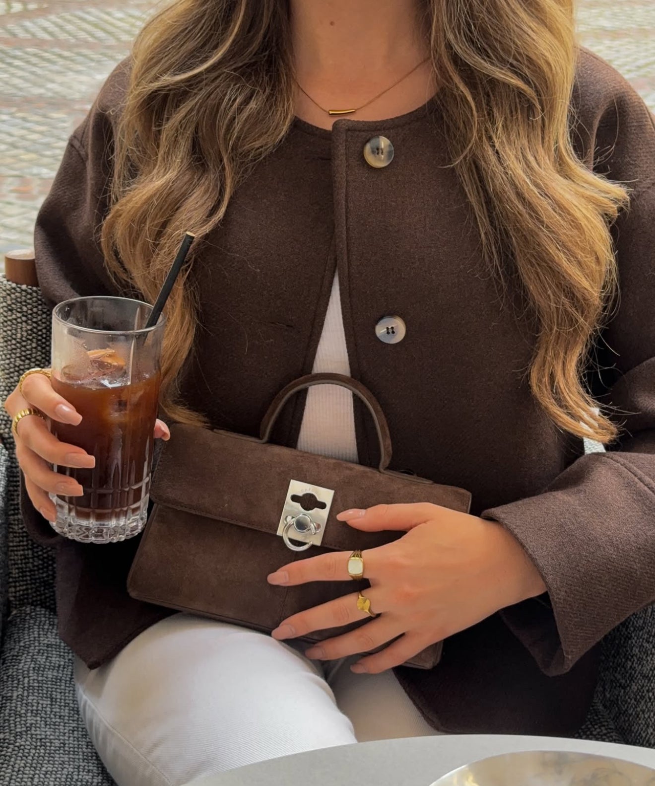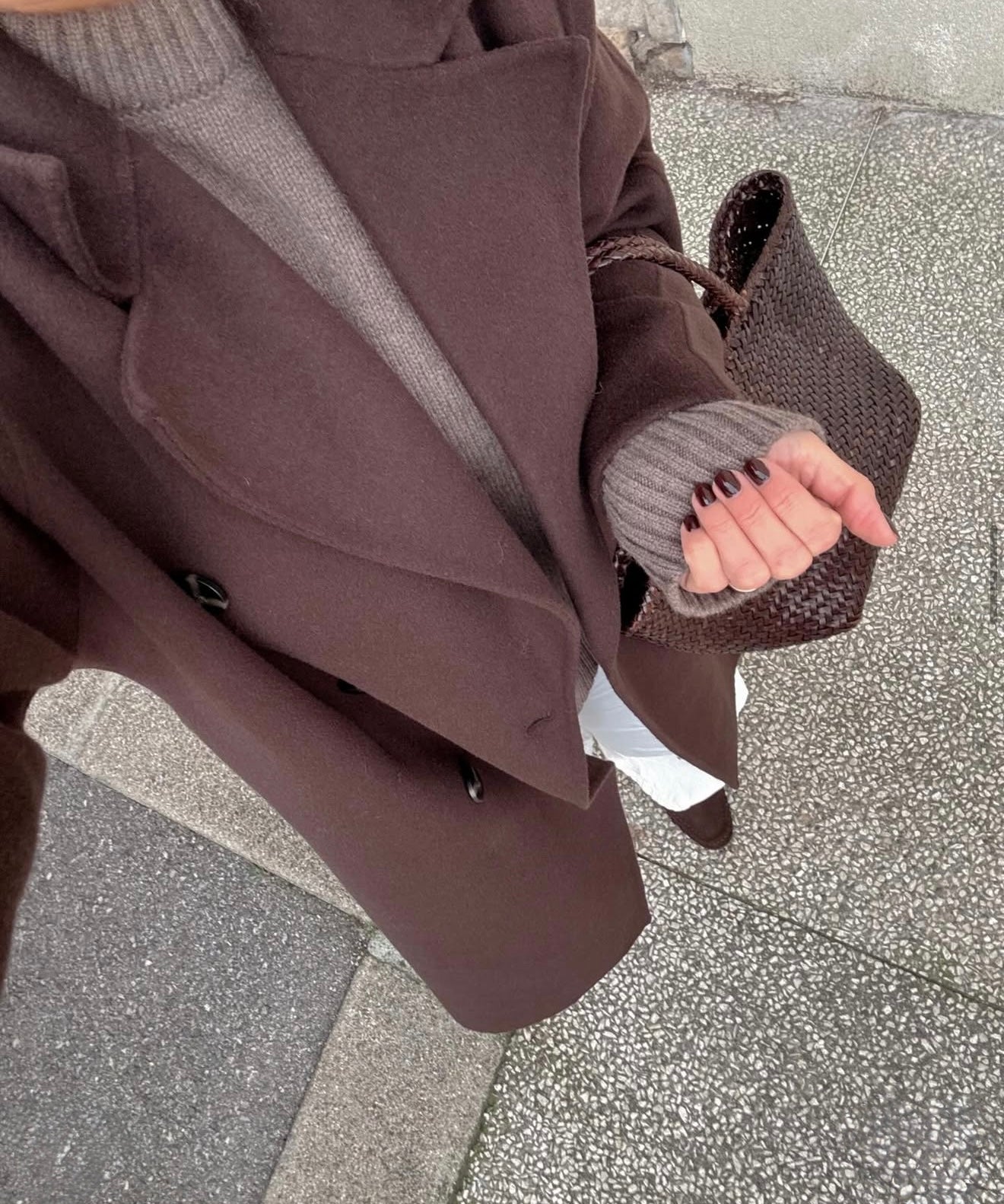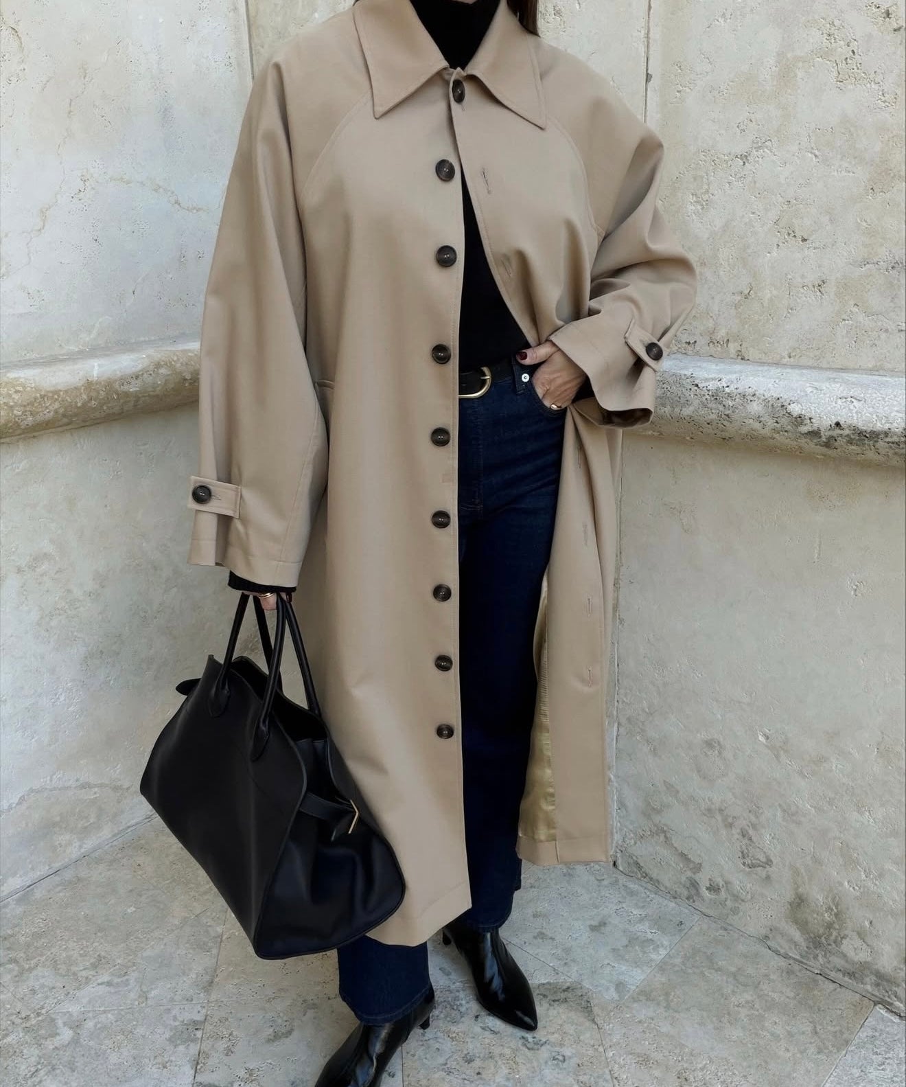 Charlène porte le trench-coat Le Joyce en Daim Chocolat