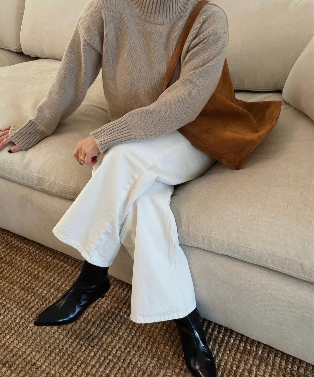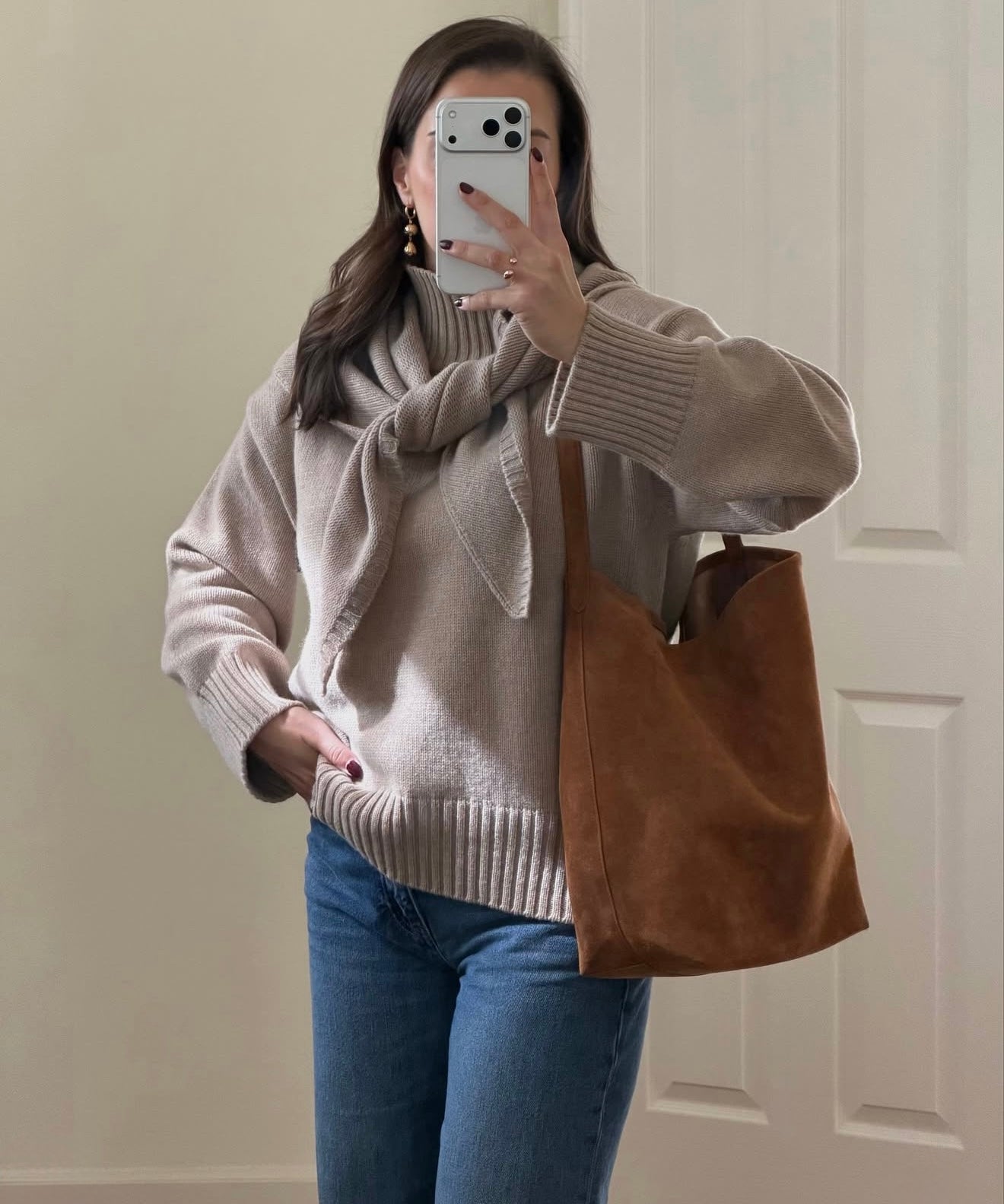 Jenna porte la maille Le Ernaux & l'écharpe Le Socrate en Sésame