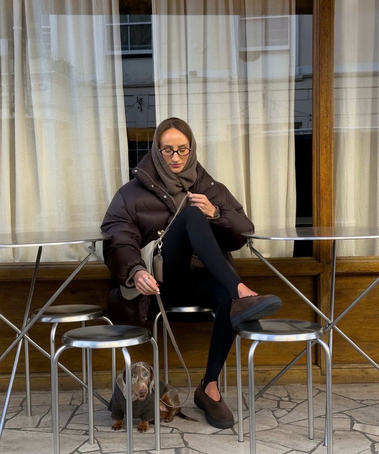 Elise porte la doudoune Le Schumann Réglisse & les moufles Les Sartre Sésame