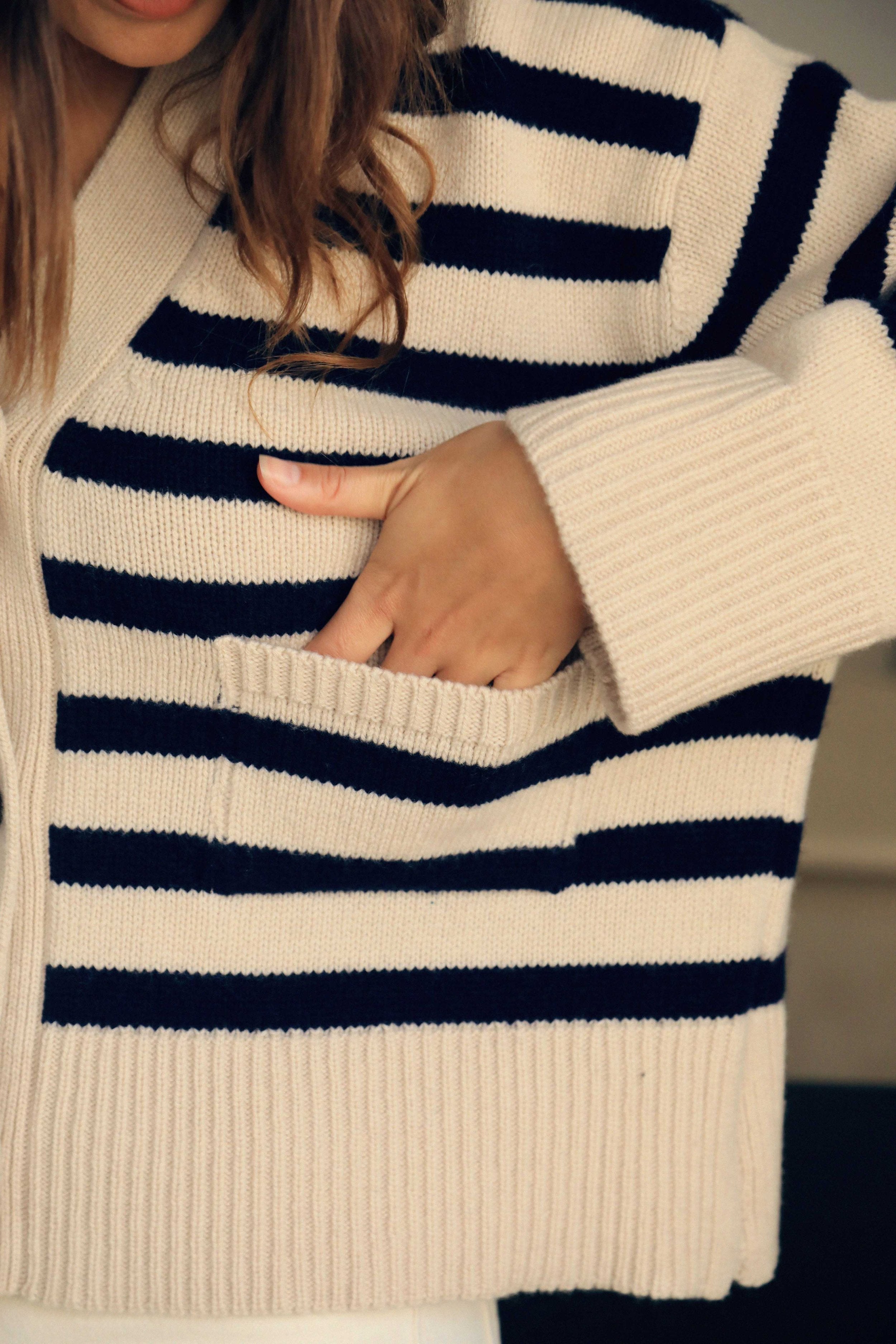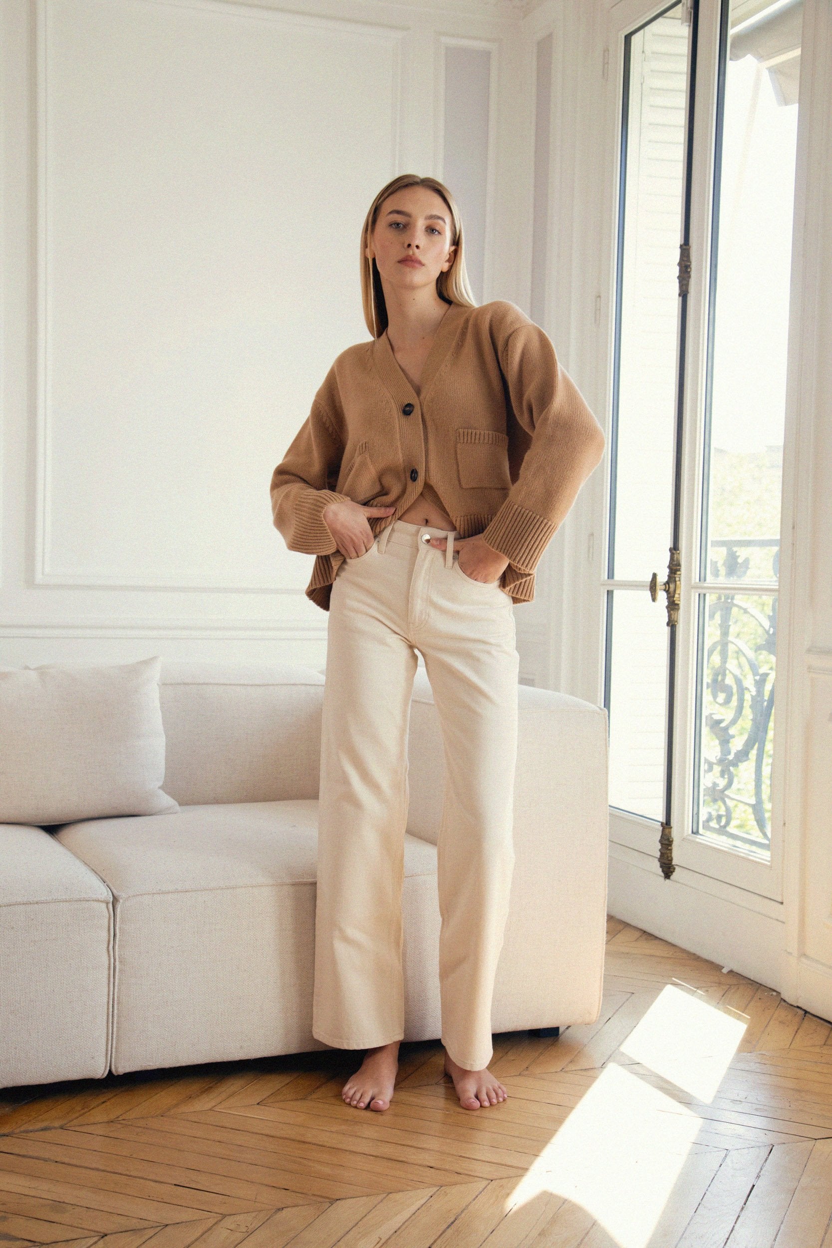 Pour un look minimaliste iconique, portez le cardigan Le Niklaus avec un tee-shirt blanc, un pantalon palazzo et des baskets. Ajoutez un trench et des bijoux dorés: vous serez tout simplement sublime.