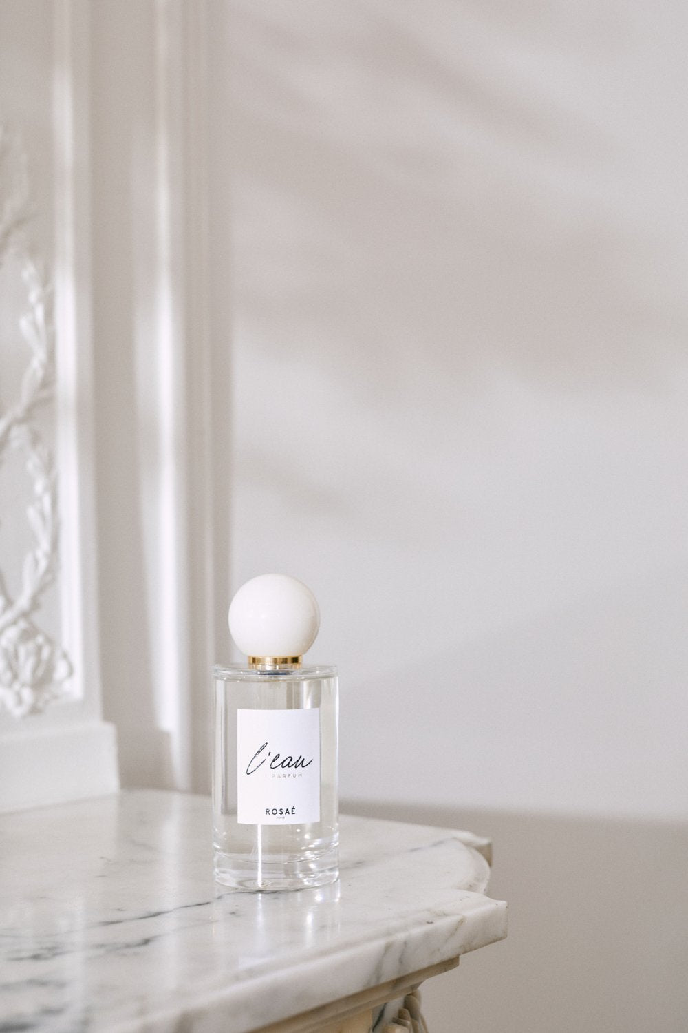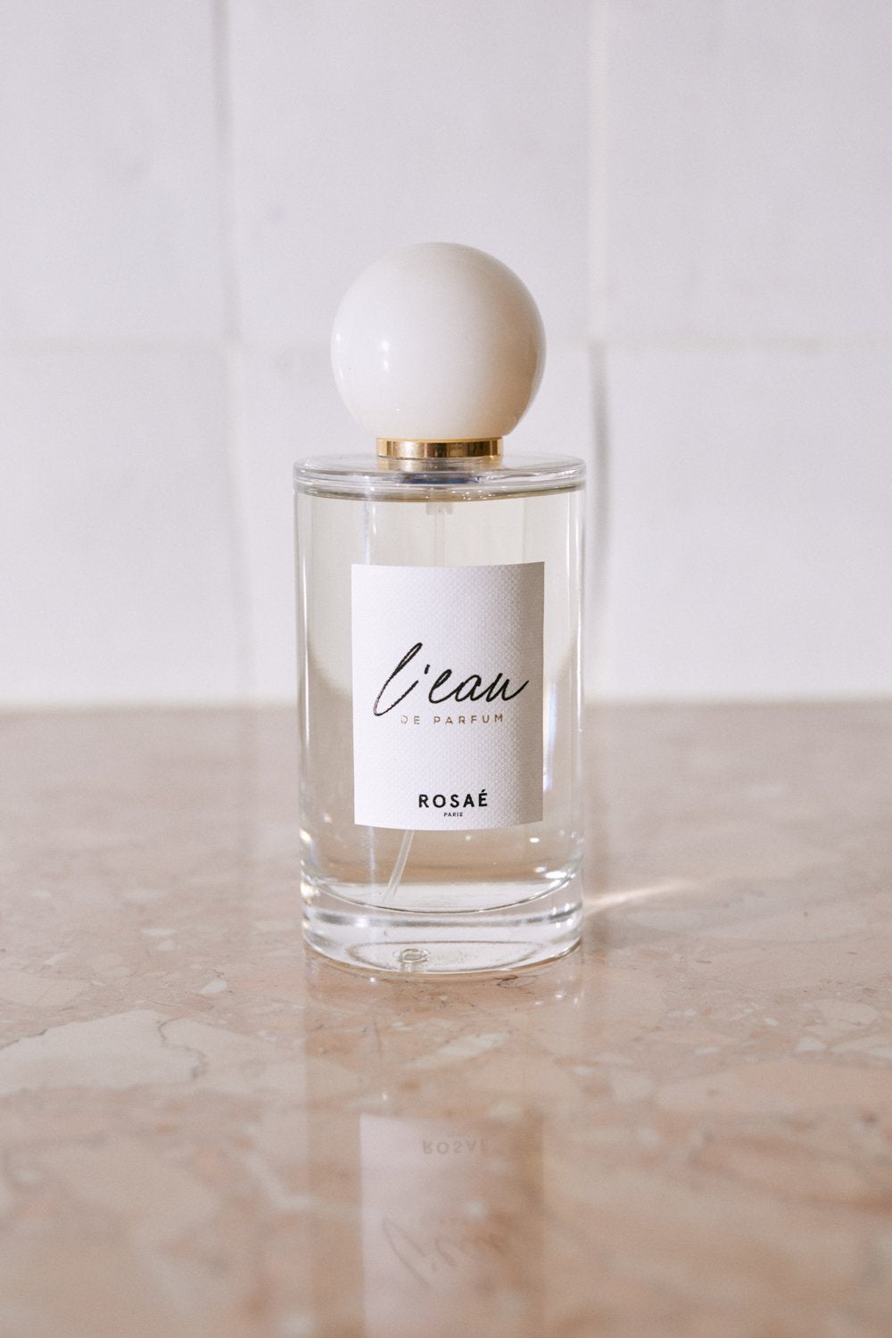 L'Eau est le premier parfum signature de Rosaé Paris, niché dans un écrin aux formes arrondies. Solaire et gourmande tout en restant fraîche, L’Eau offre un sillage aussi délicieux qu’irrésistible, rappelant le souvenir d’un matin en Algarve.
