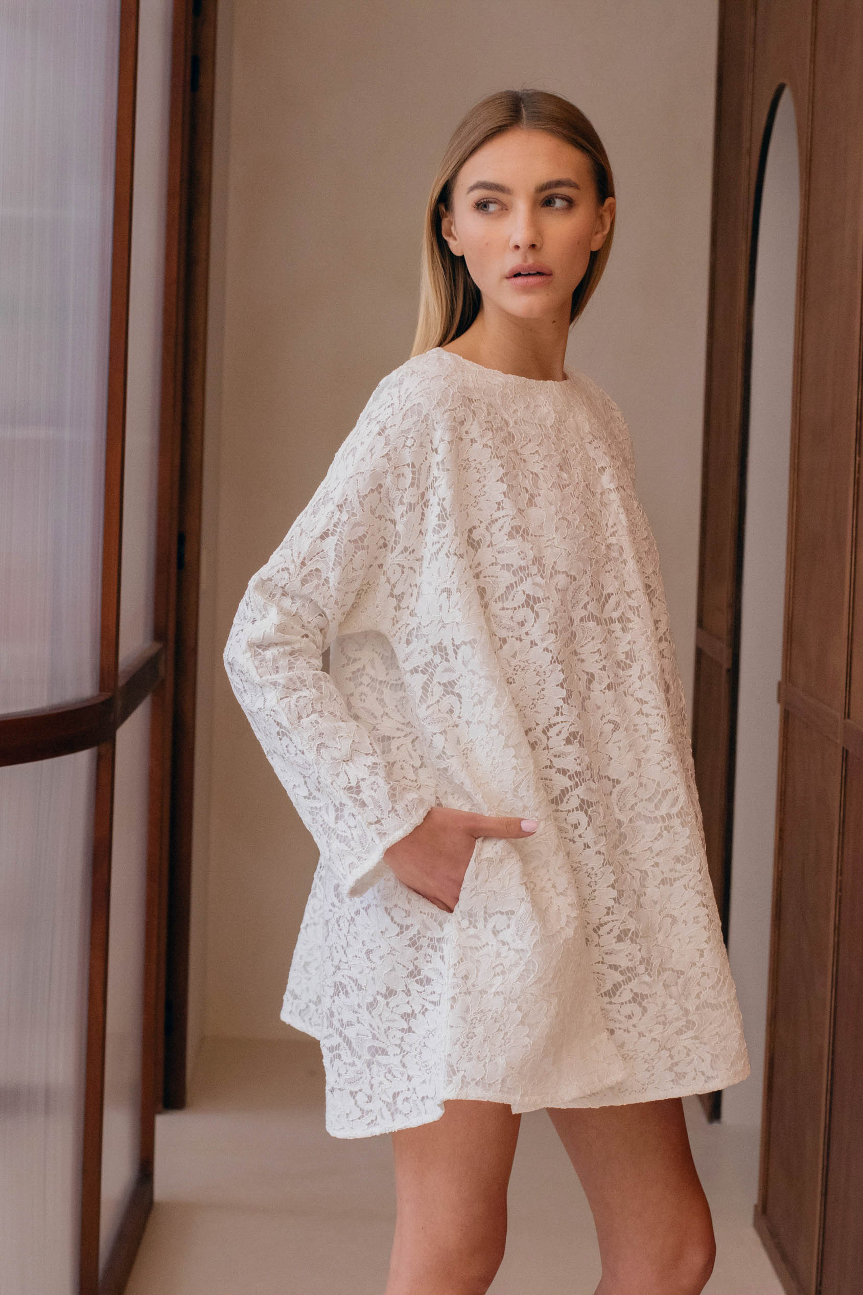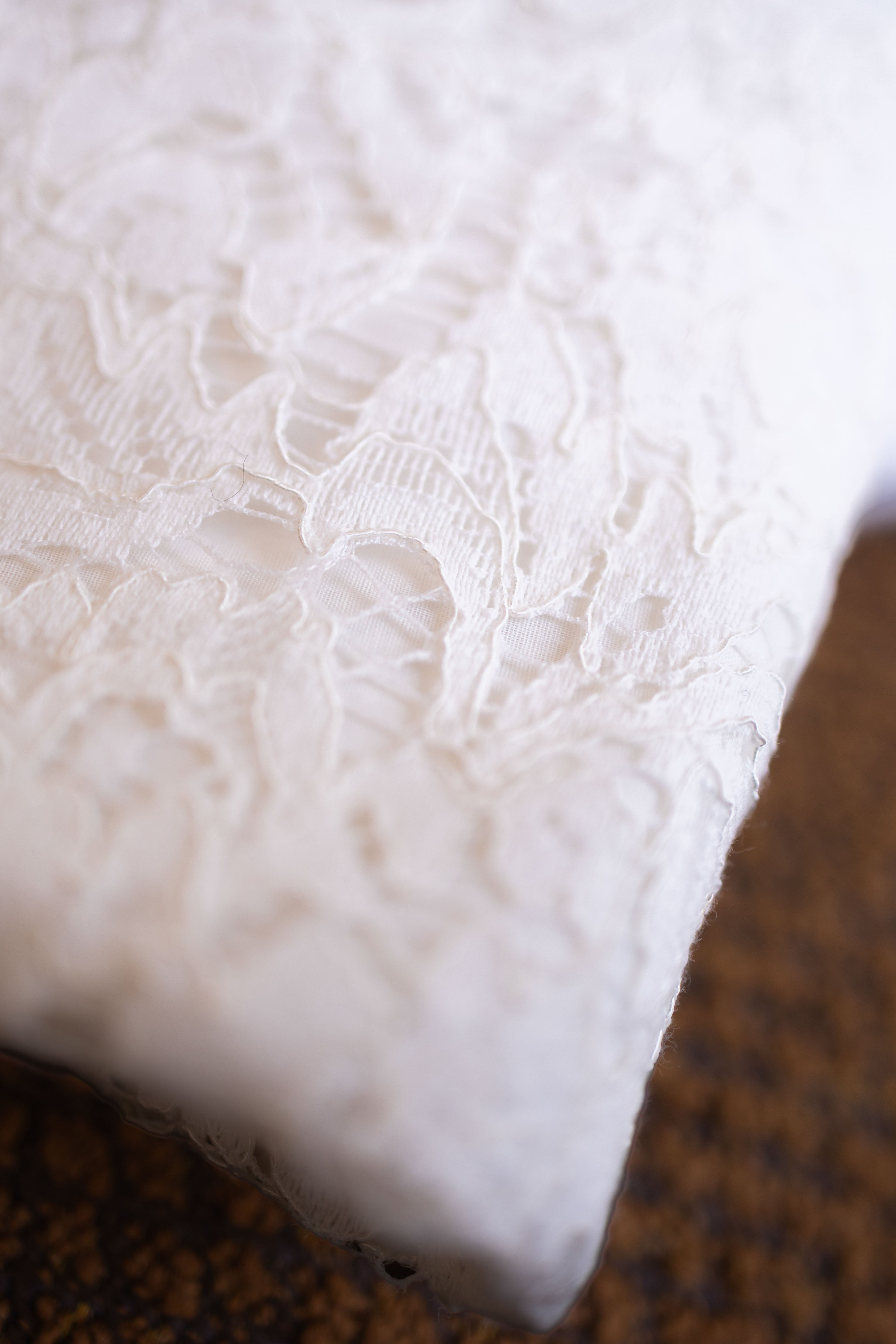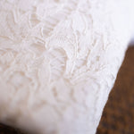 Notre dentelle blanche est upcyclée et provient des stocks dormants d'une grande Maison de Luxe Italienne. Notre tissu noir provient de Turquie.
