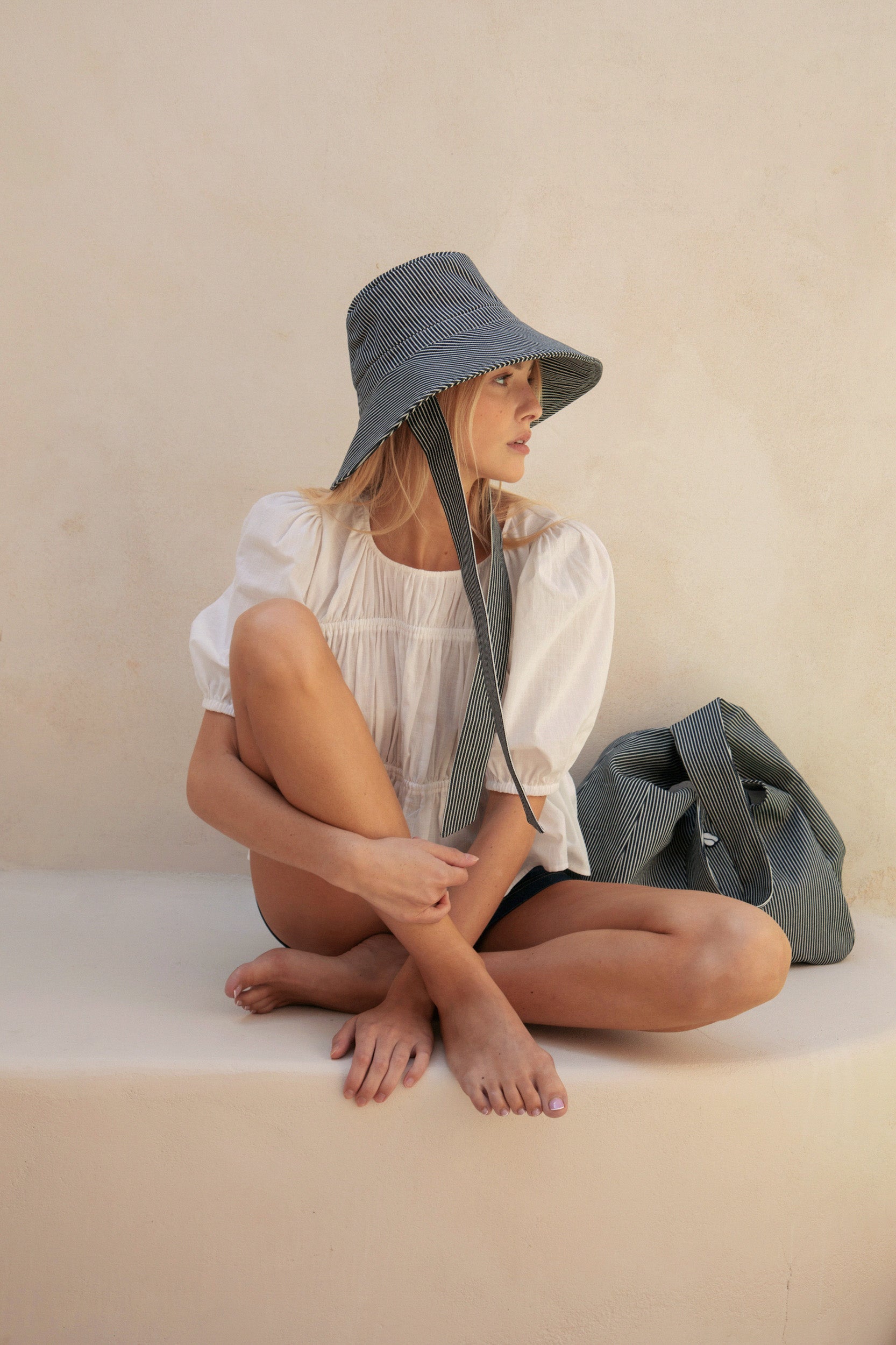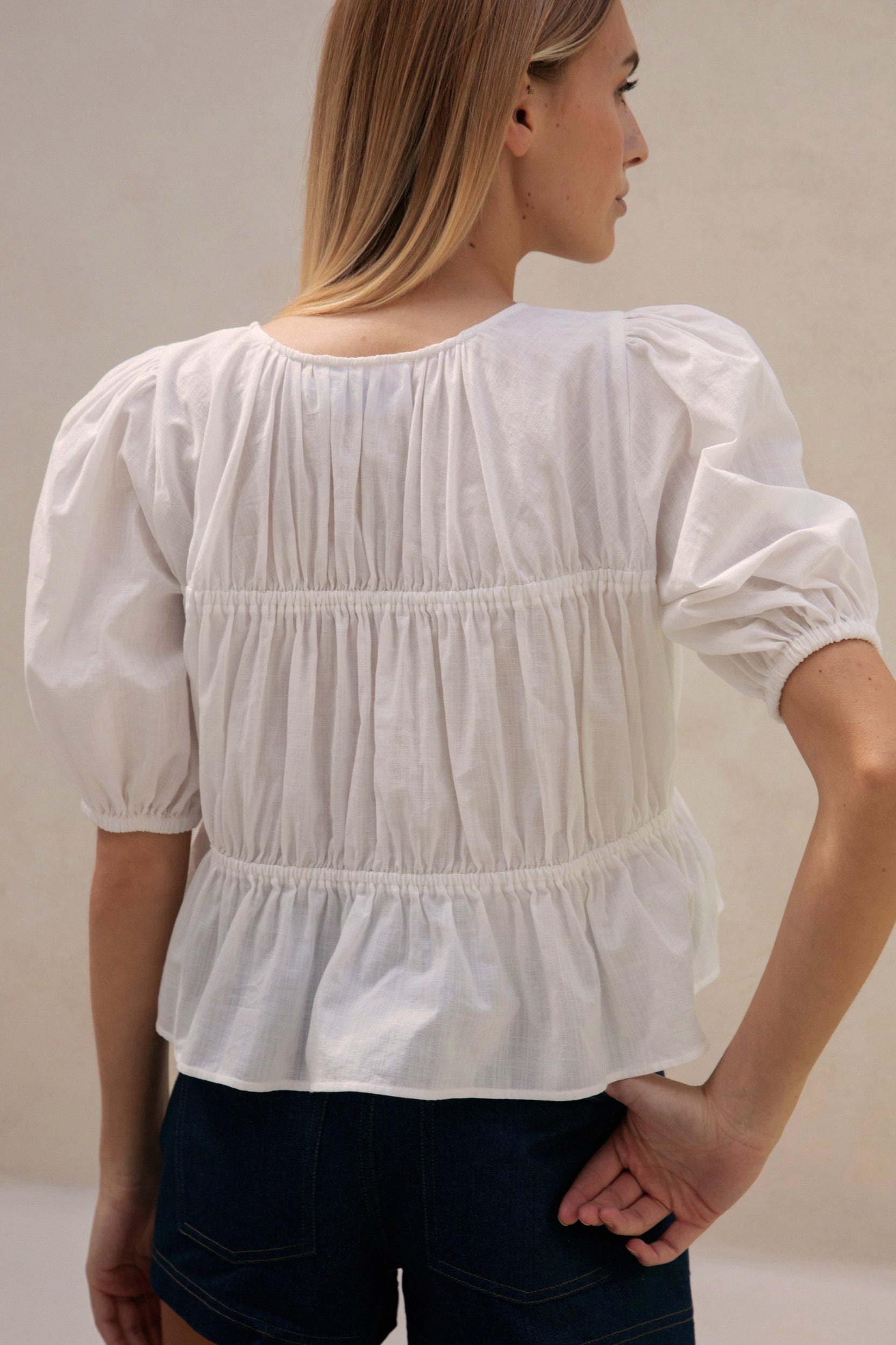 Notre coton crinckle écru a été confectionné spécialement pour nous en Inde, où cette version du Briac a également été produite.