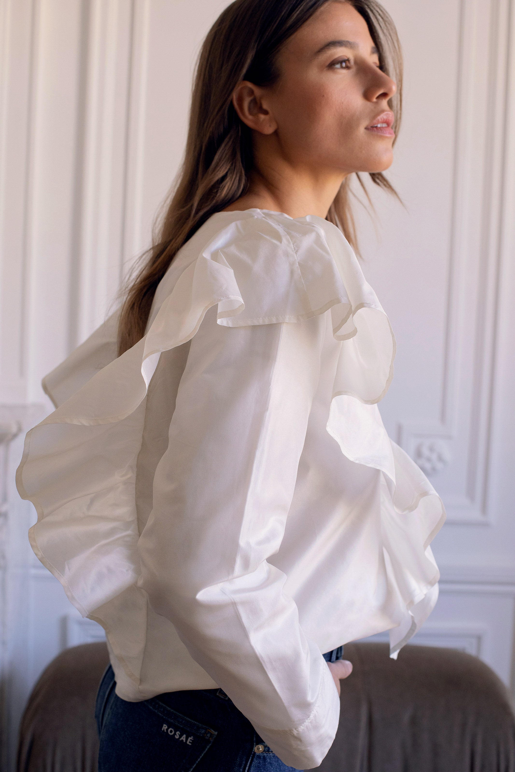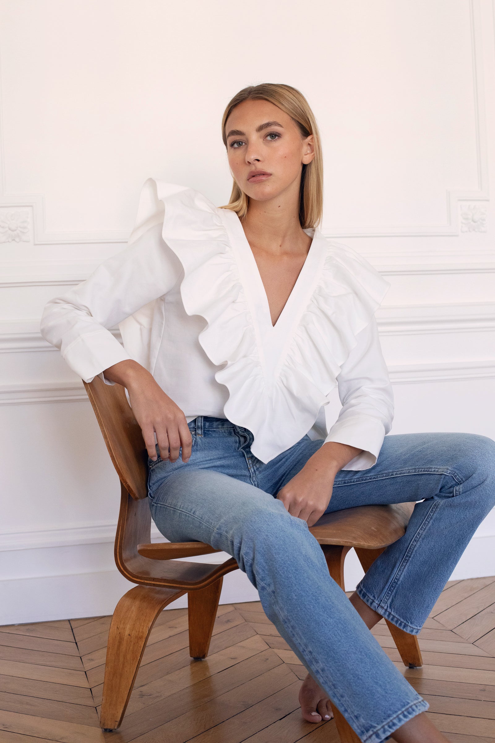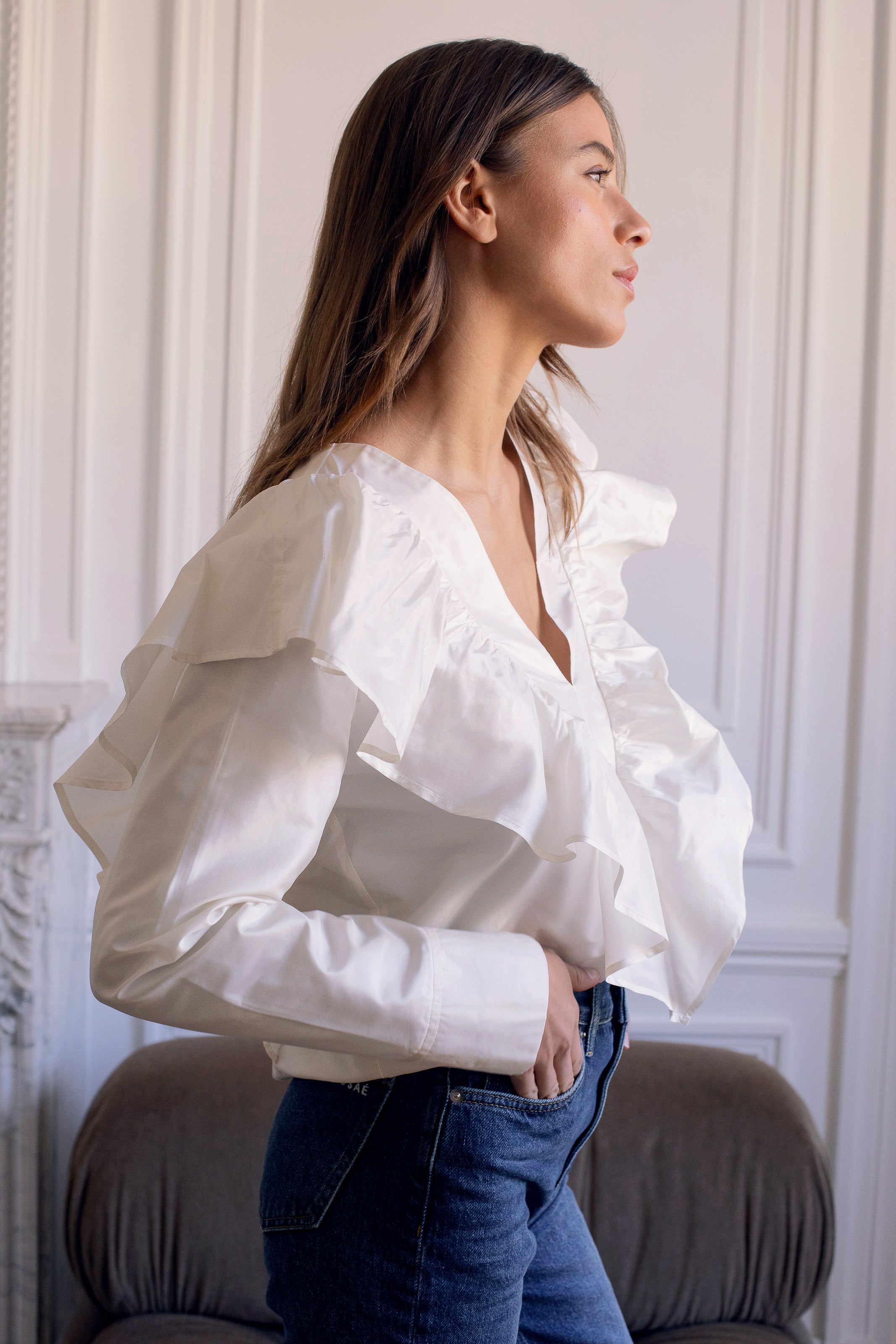 Au royaume des pièces wahou et très couture, Le Césaire est l'une des plus incroyables que vous ayez jamais vues. Confectionné dans les matières les plus luxueuses pour obtenir le volume idéal, Le Césaire sublimera votre décolleté grâce à son profond col V orné de volants, tandis que ses manches épurées et sa coupe boxy lui donnent ce côté très moderne et terriblement chic. Le Césaire, c'est définitivement le top wahou qui fera chavirer votre coeur.