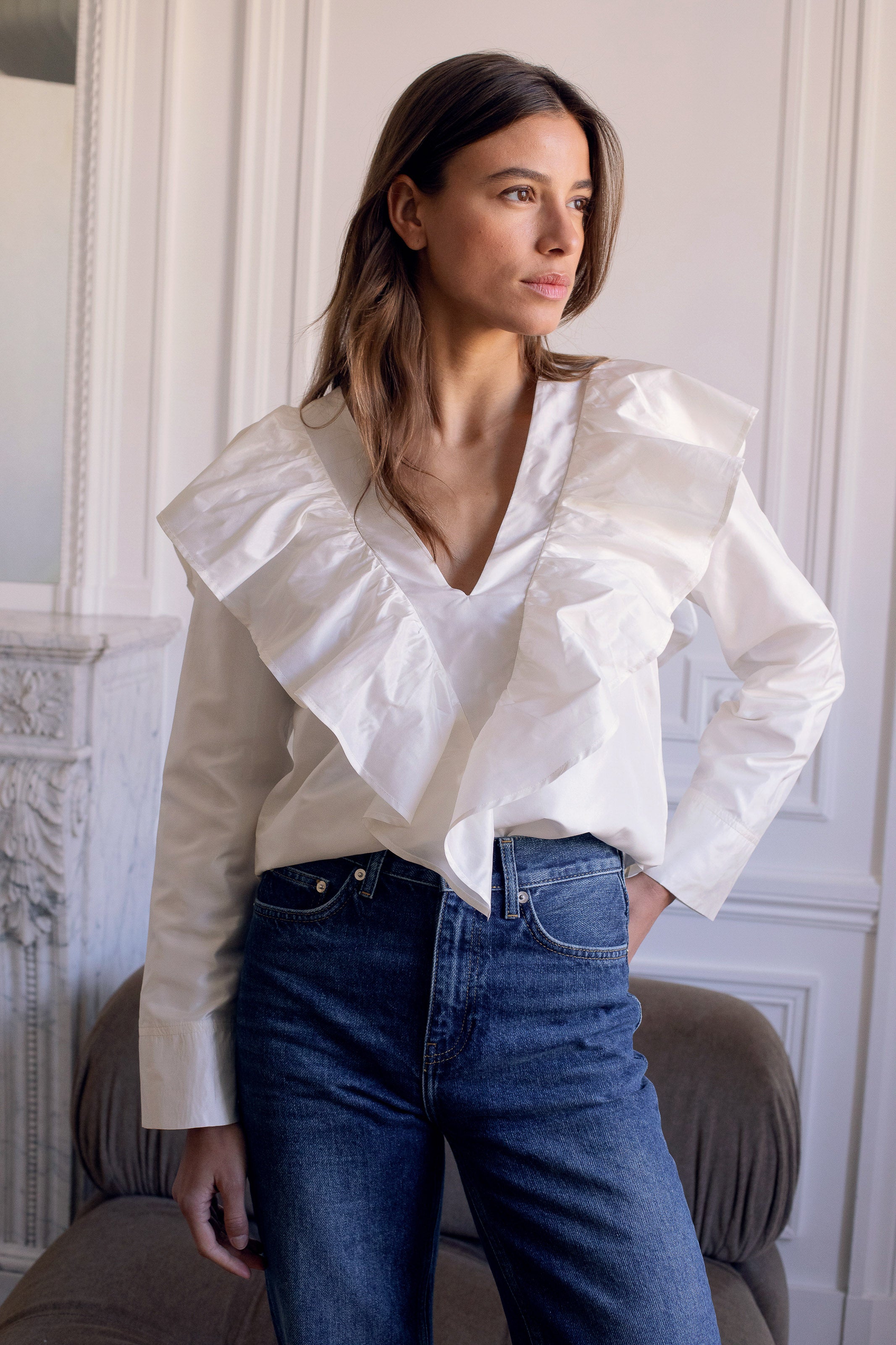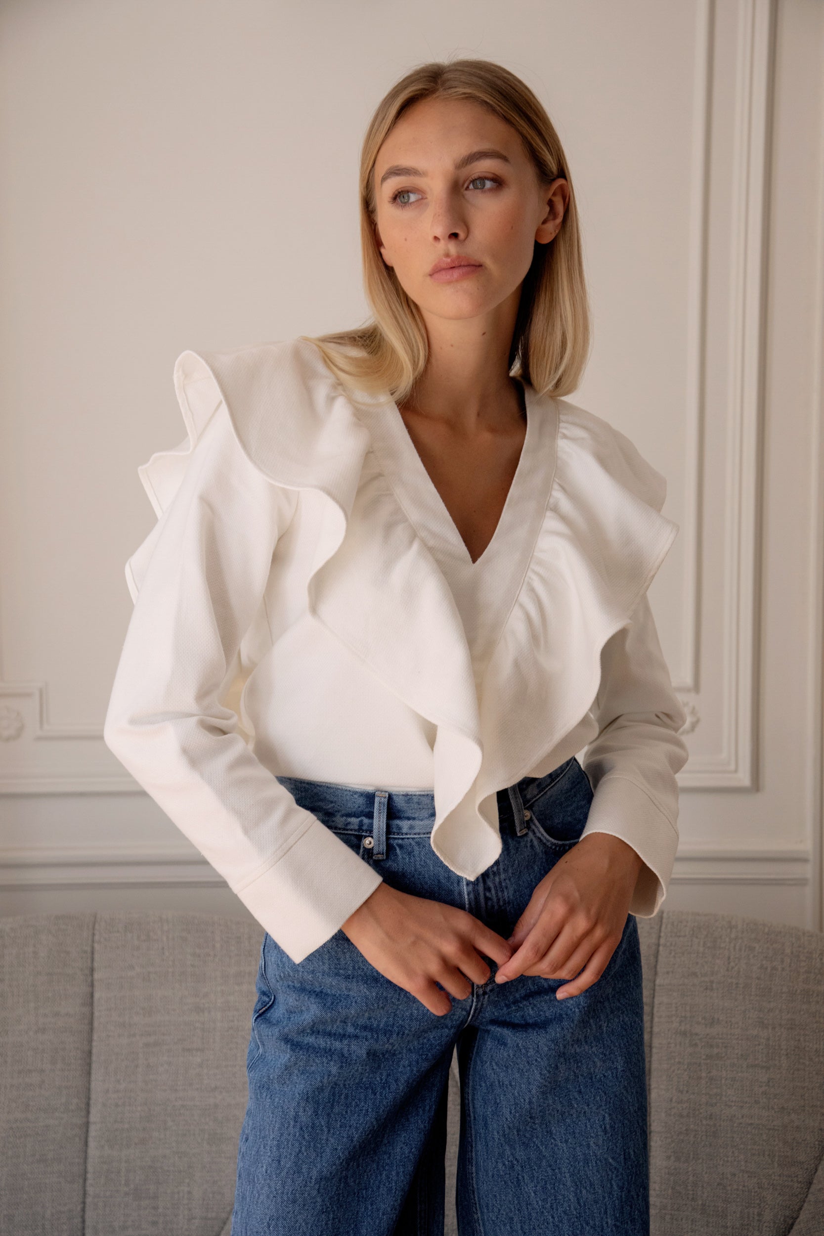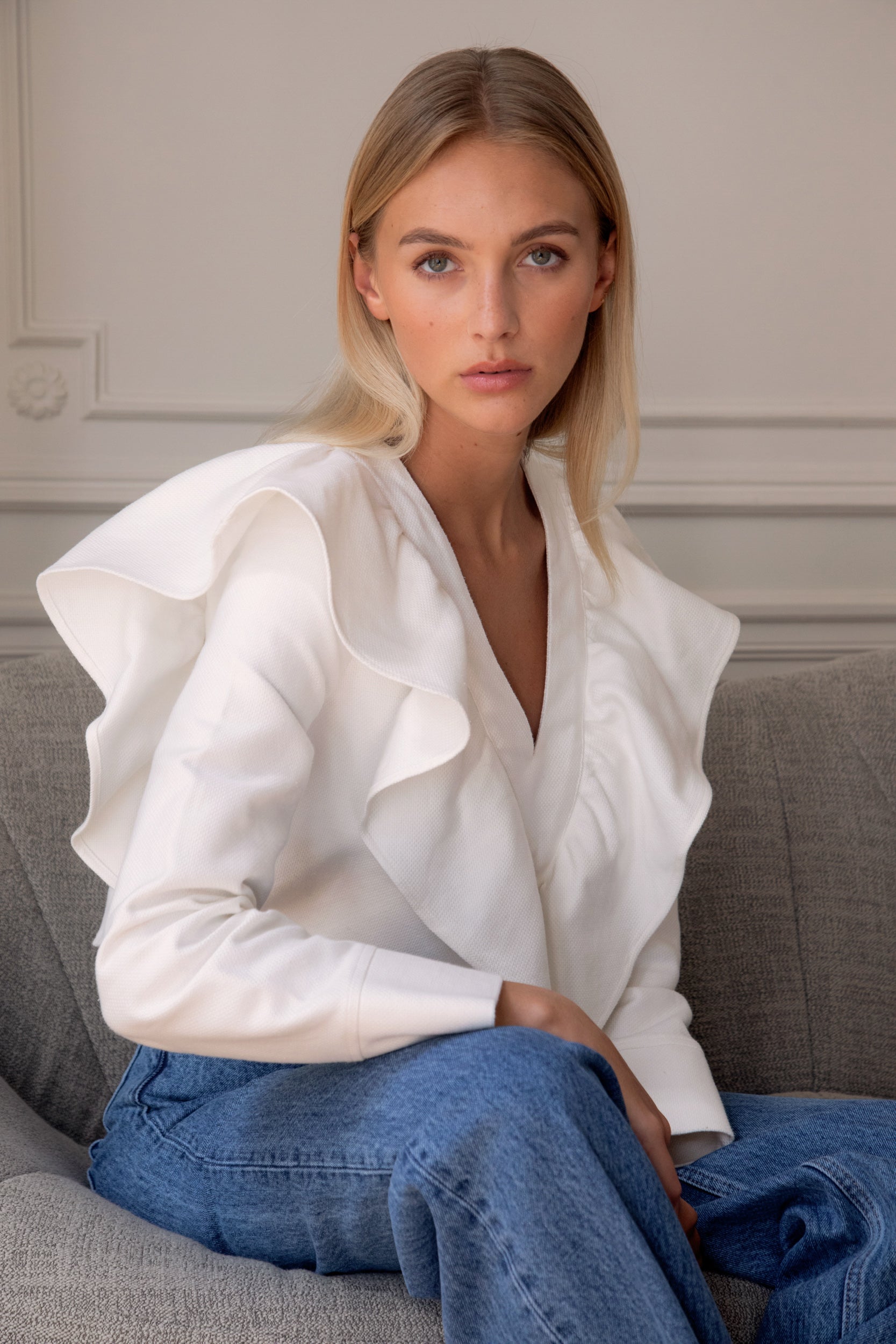 Au royaume des pièces wahou et très couture, Le Césaire est l'une des plus incroyables que vous ayez jamais vues. Confectionné dans les matières les plus luxueuses pour obtenir le volume idéal, Le Césaire sublimera votre décolleté grâce à son profond col V orné de volants, tandis que ses manches épurées et sa coupe boxy lui donnent ce côté très moderne et terriblement chic. Le Césaire, c'est définitivement le top wahou qui fera chavirer votre coeur.
