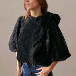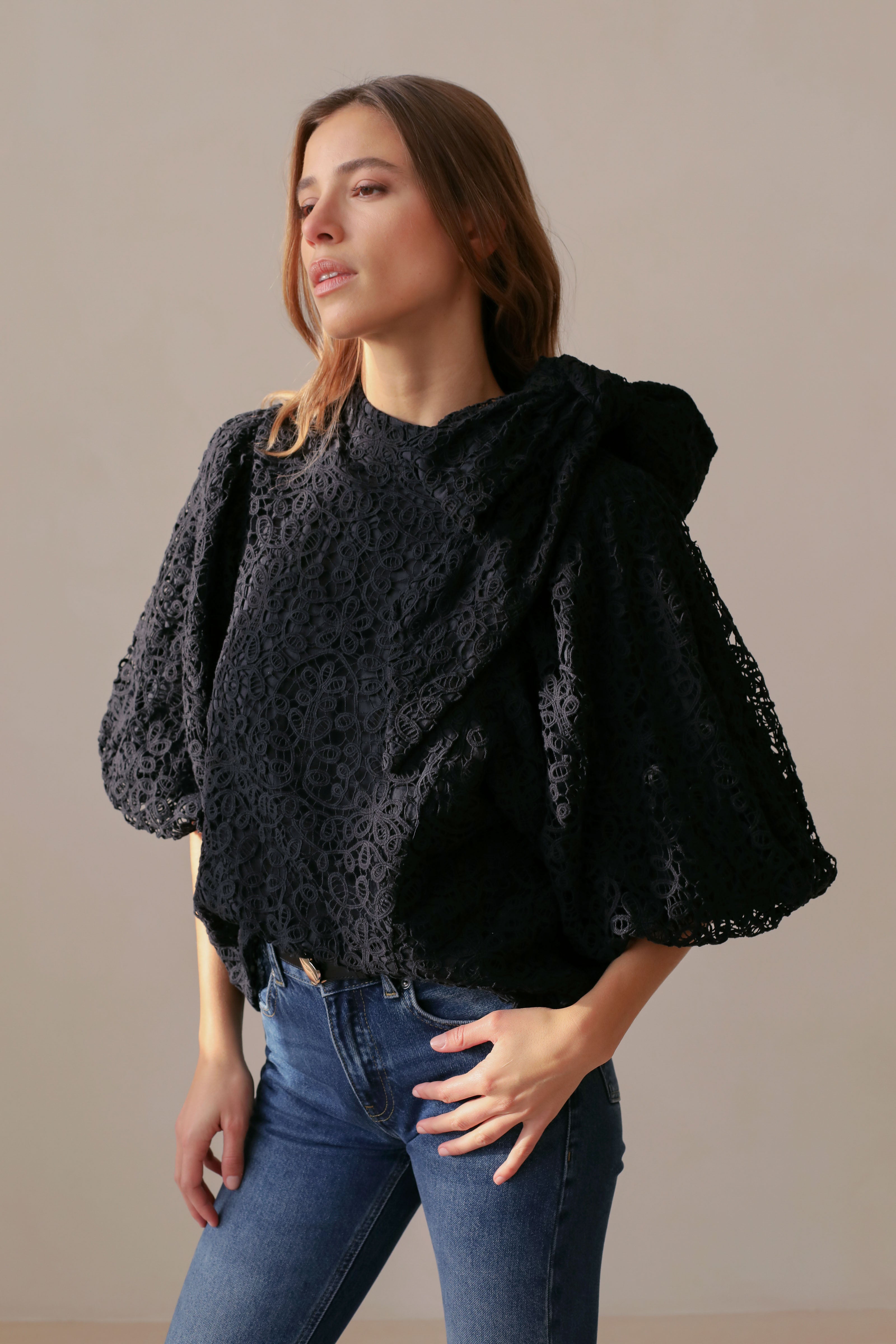 Notre guipure provient d'Inde. C'est également là que cette version de la blouse Le Claude a été confectionnée.