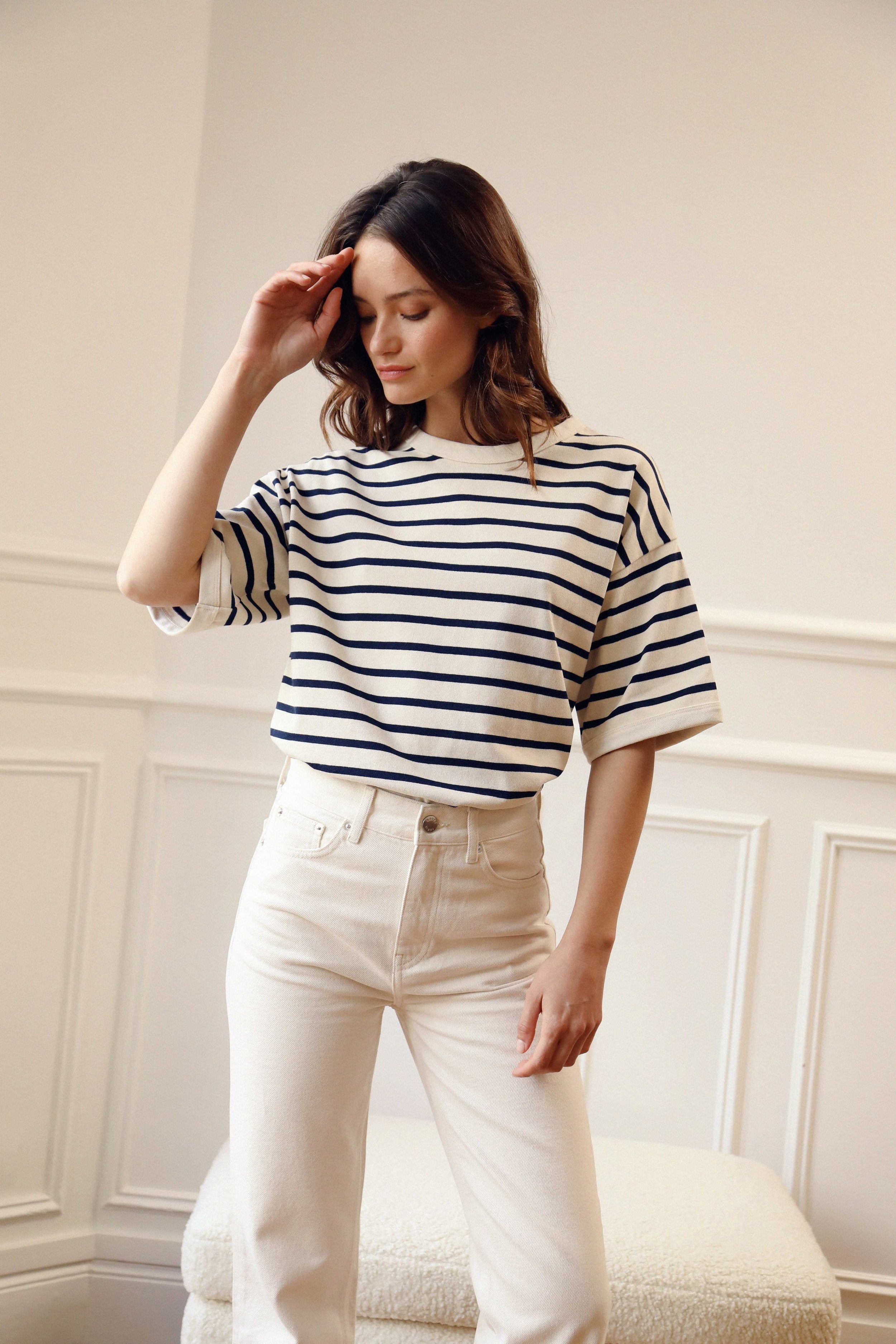 Pour un look preppy, associez-le à une marinière, un beau blazer marine et nos adorables babies Les Georges.