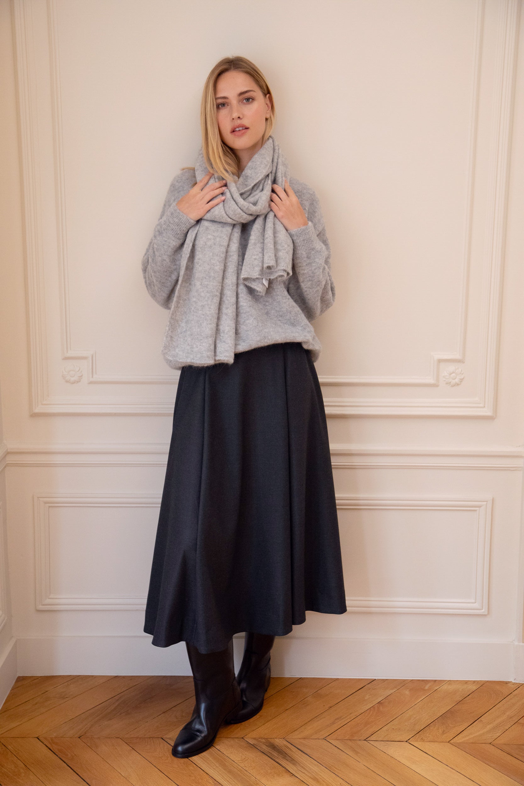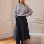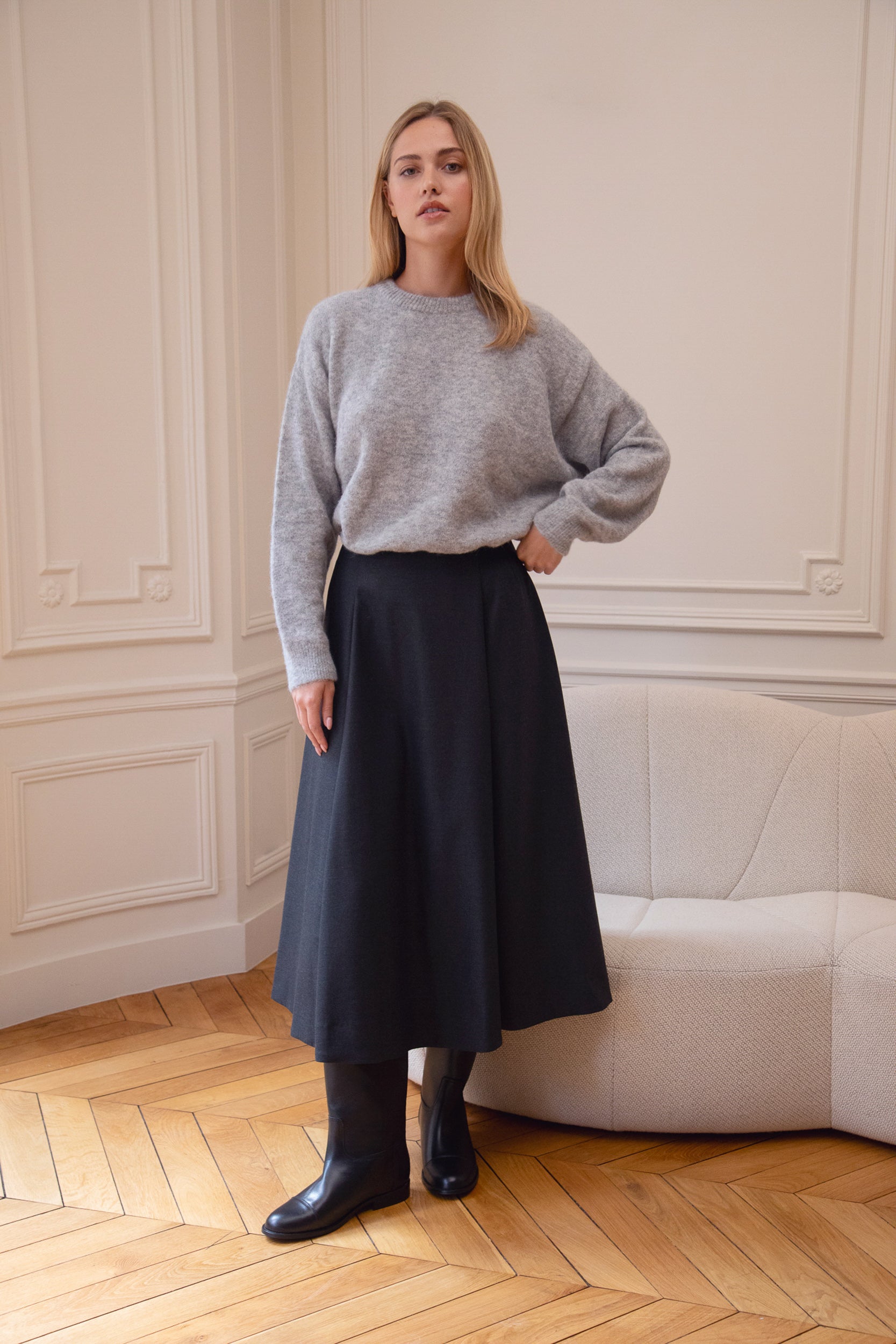 Pour une silhouette impeccable, associez la jupe Le Duras à une belle maille et des bottes cavalières. Ajoutez un trench: look iconique assuré.