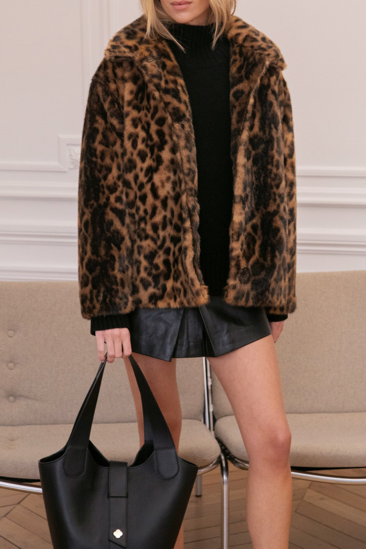 Le manteau Le Flaubert Léopard a été confectionné en Inde.
