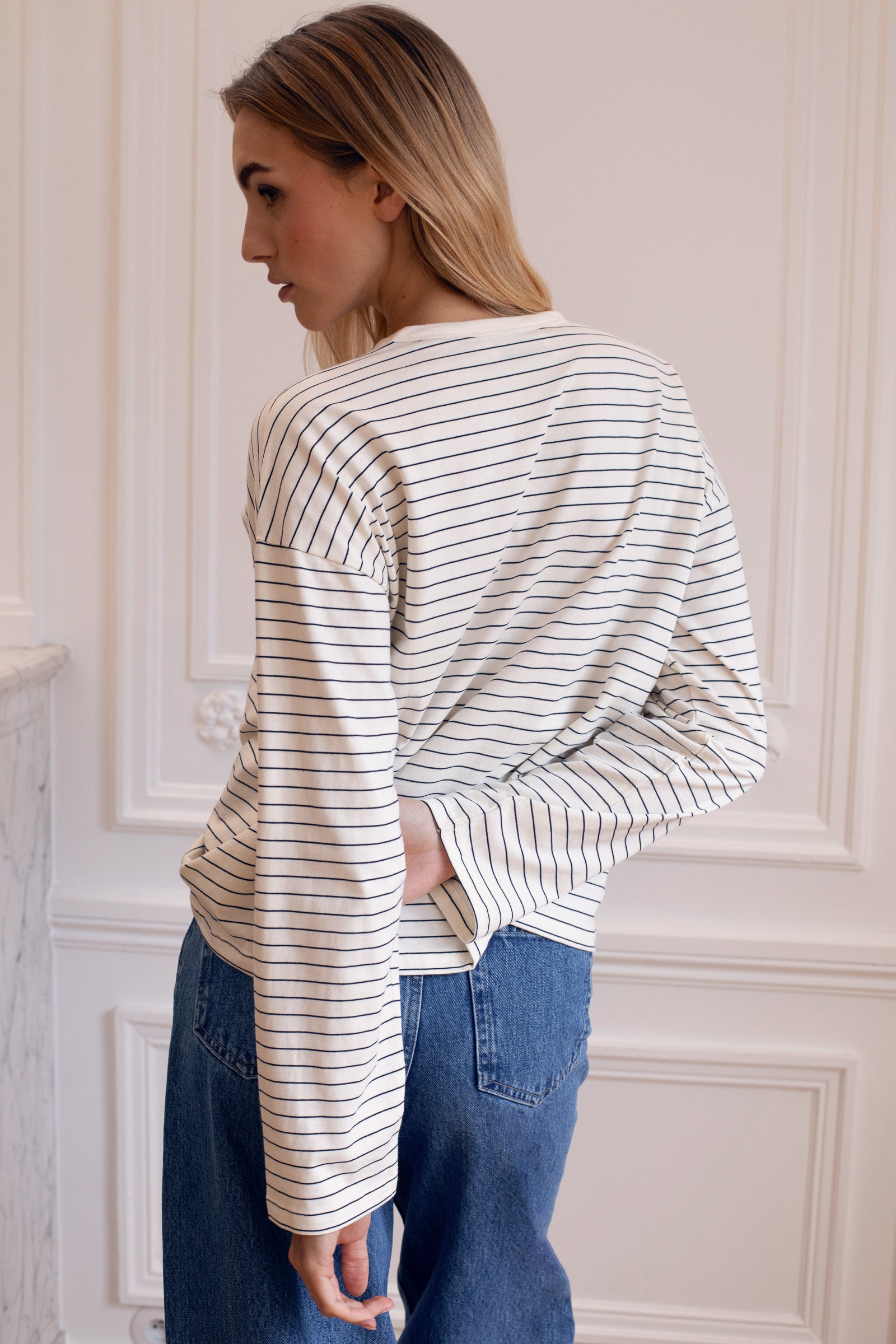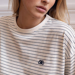 Icône incontestée de l'été, la marinière est l'intemporel ultime. Confectionné dans notre tissu marinière en coton bio signature, Le Lavigne fait partie de ces pièces dont vous ne vous lasserez jamais et qui saura vous séduire avec son allure impeccable et légèrement boxy. Cerise sur le gâteau? Notre monogramme brodé sur le coeur, pour une touche résolument couture.