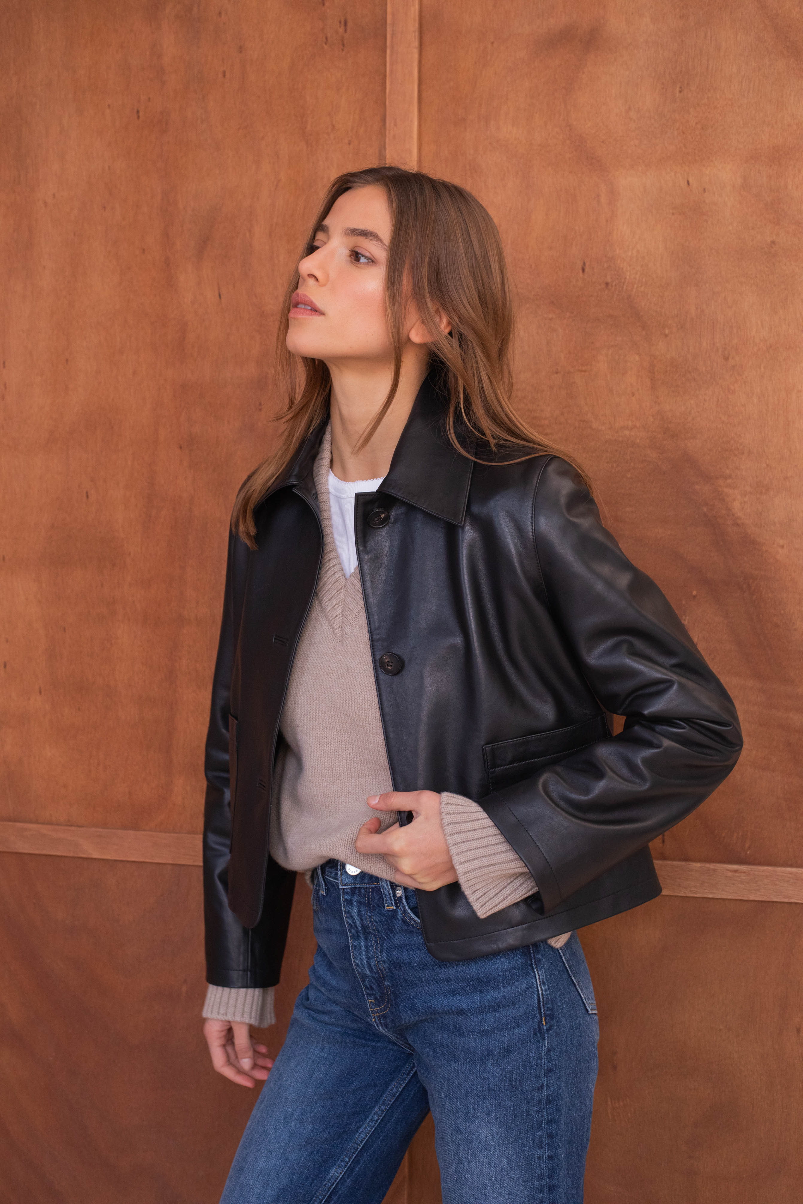 Avec sa silhouette légèrement boxy et son superbe cuir suédé au toucher luxueux, la veste Le Martin deviendra vite votre nouvelle préférée, d'autant plus que ses détails coup de coeur comme ses boutons contrastants et sa longueur légèrement cropped lui donnent cette allure épurée qu'on adore.
