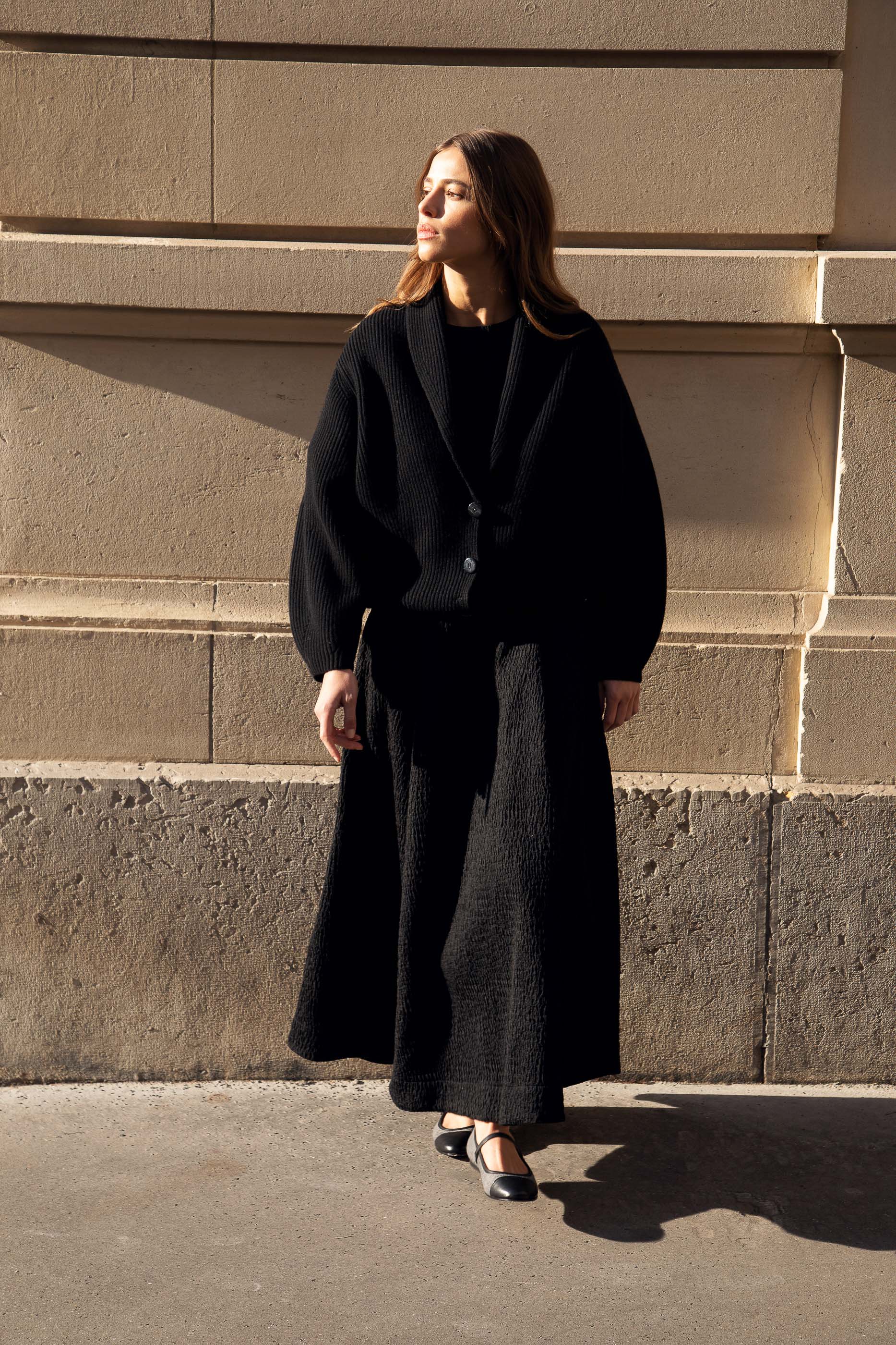 Suffisamment chaud pour être porté comme une veste, enfilez Le Maupassant par dessus tous vos looks pour une allure hyper sculpturale. Associez-y un pantalon en cuir et des bottines pointues pour un outfit impeccable.
