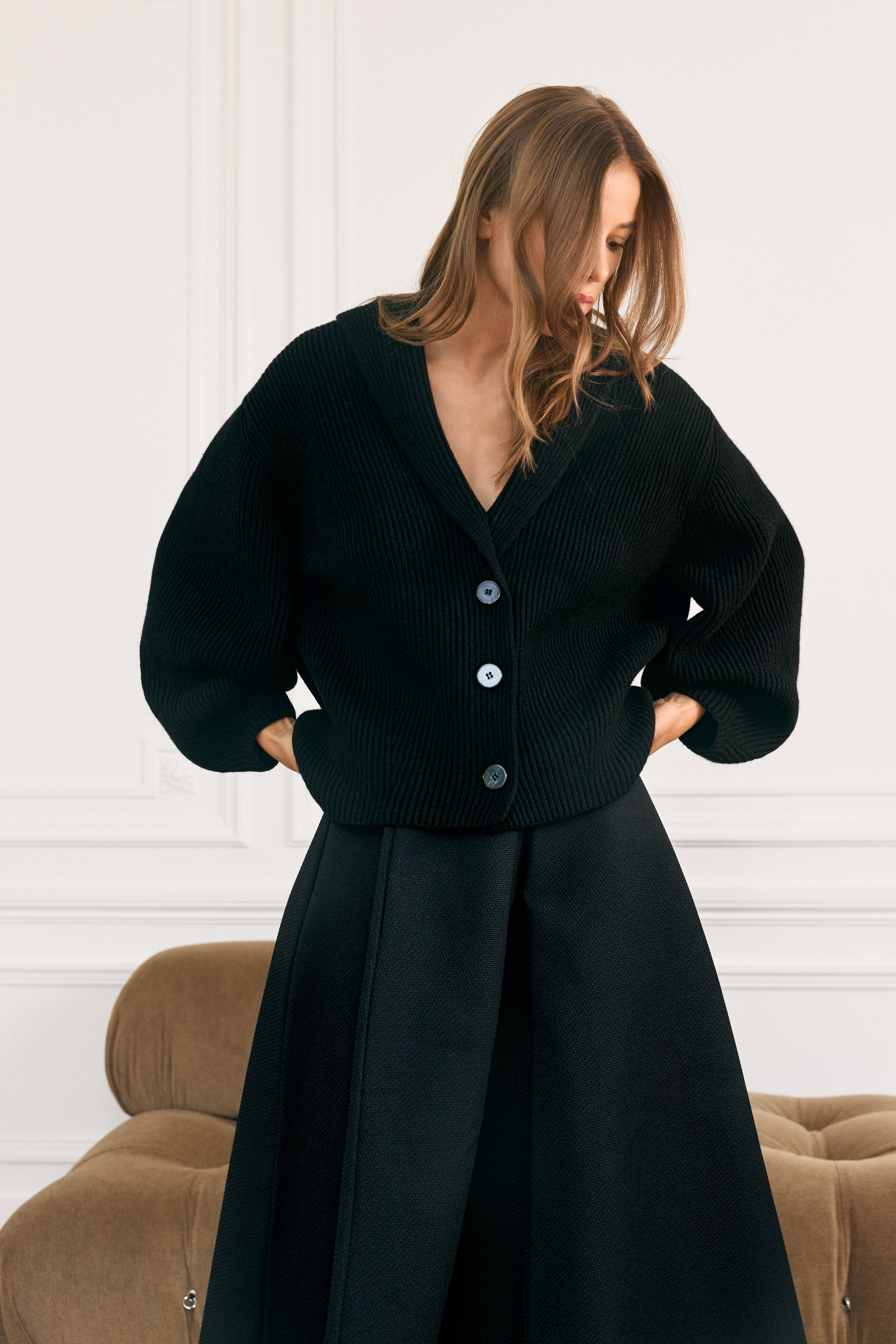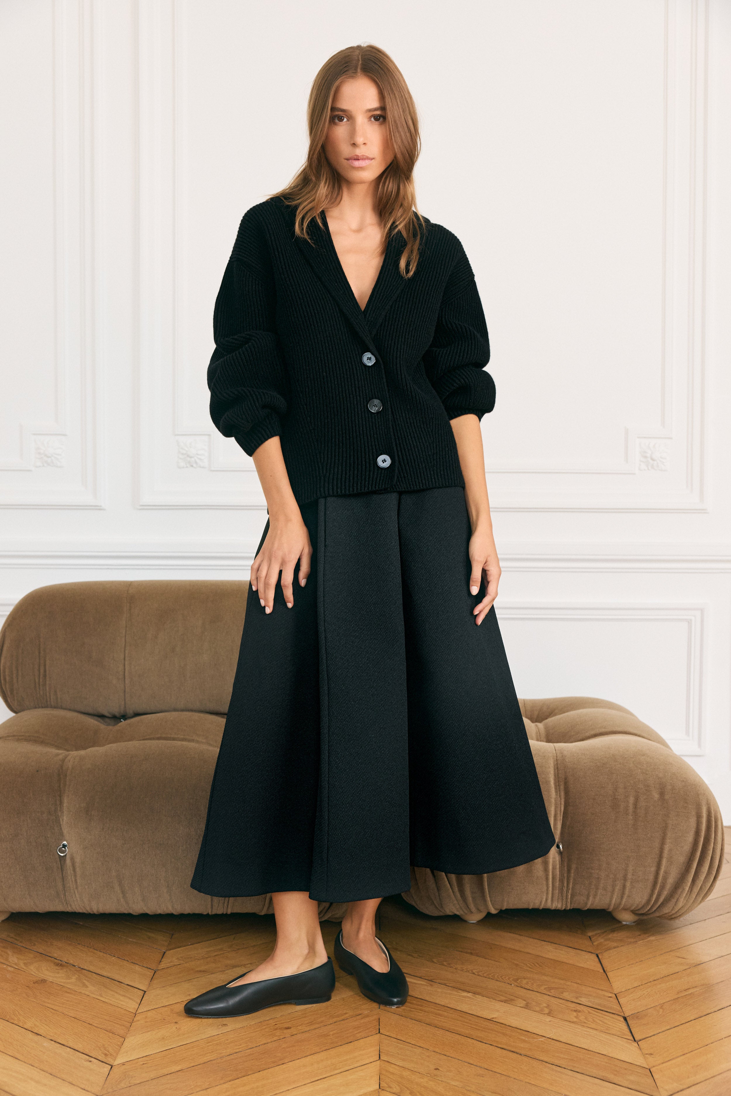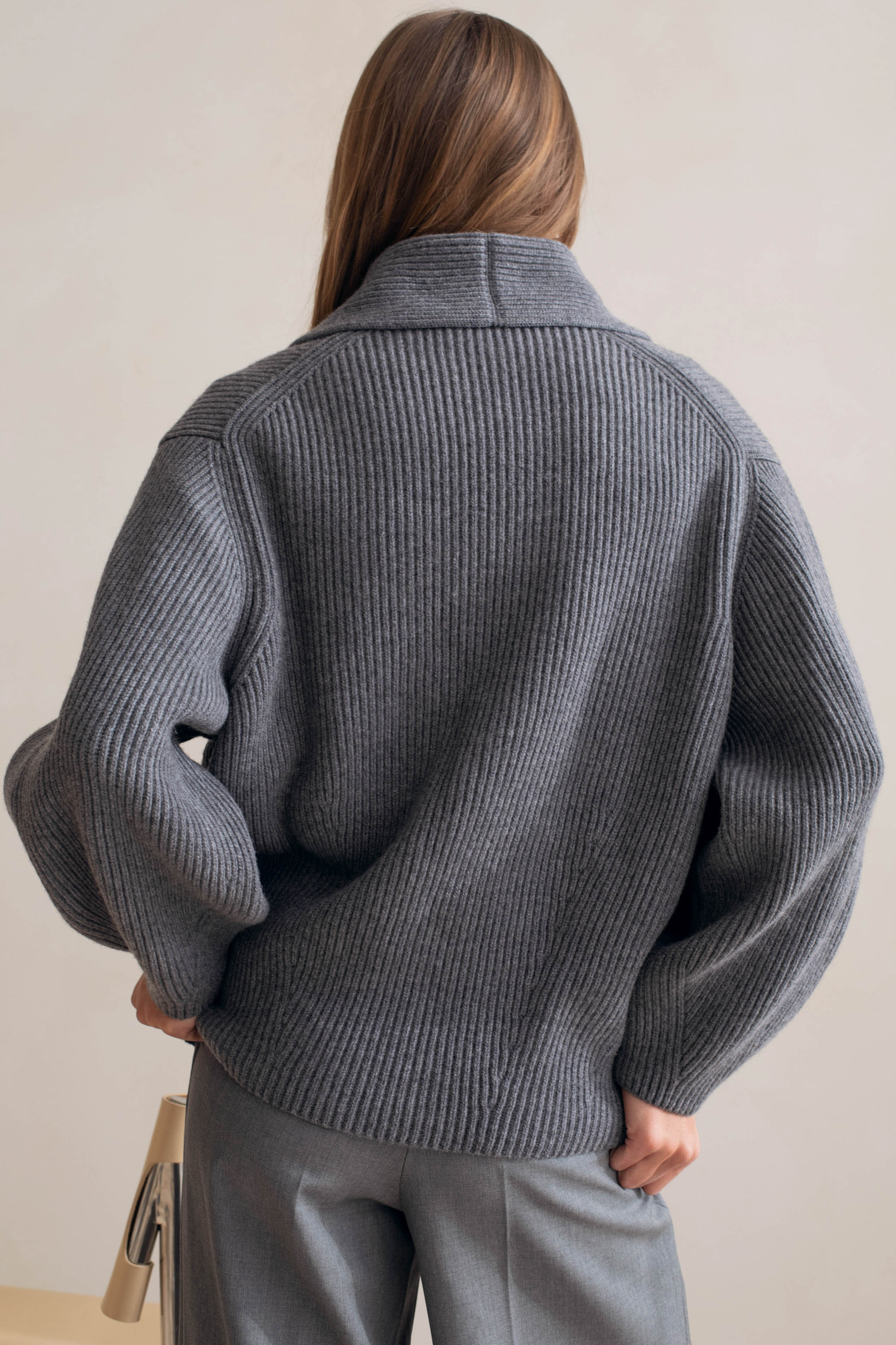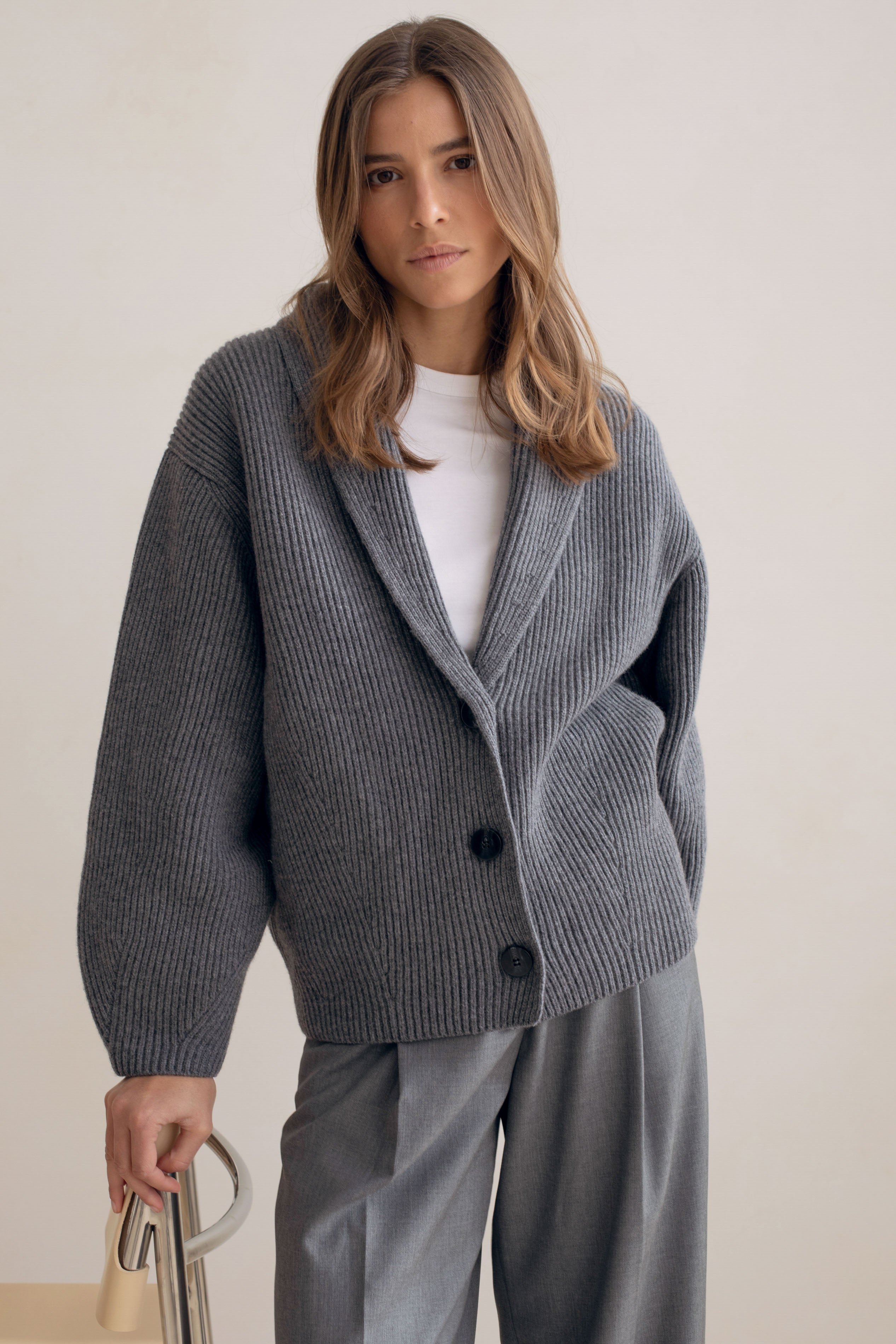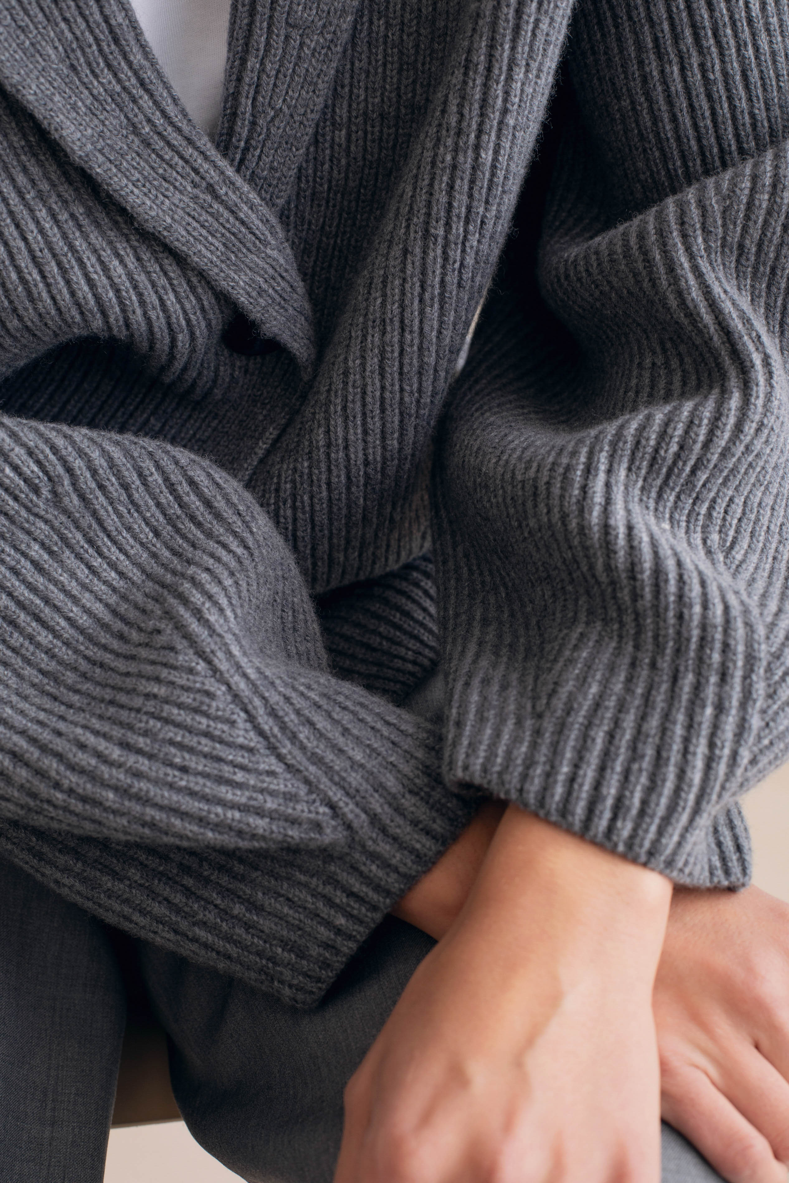 Le Sculptural Cardigan Côtelé à Col Châle en Cachemire & Laine Mérinos