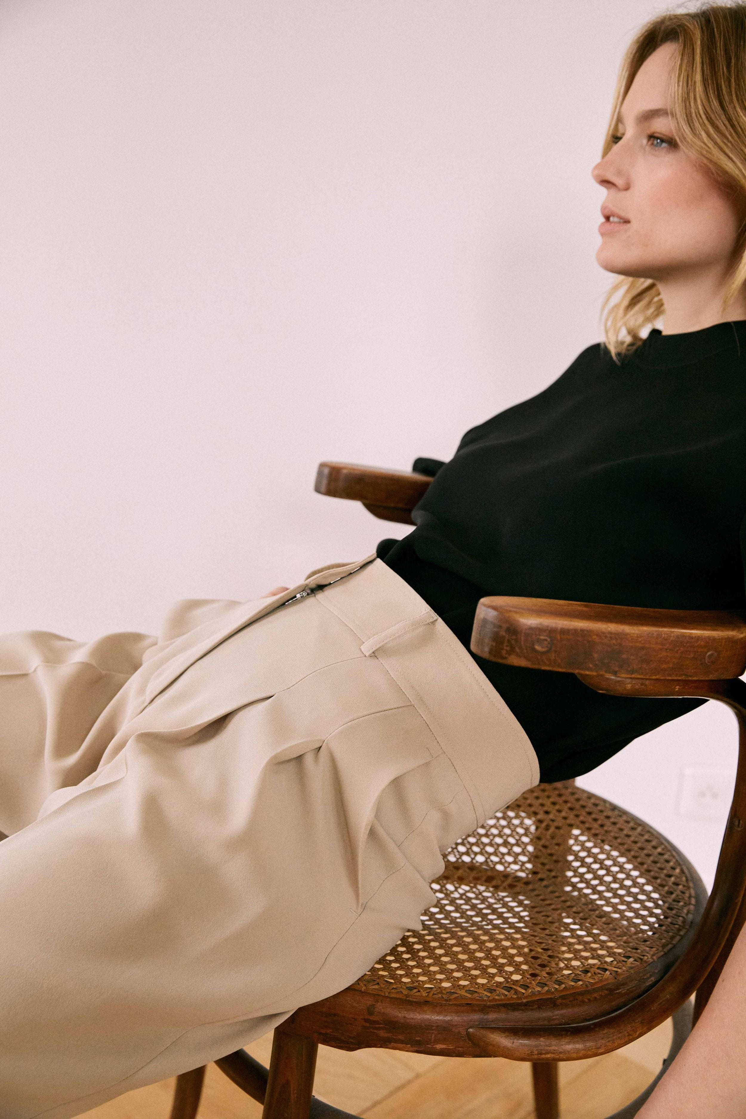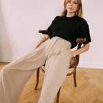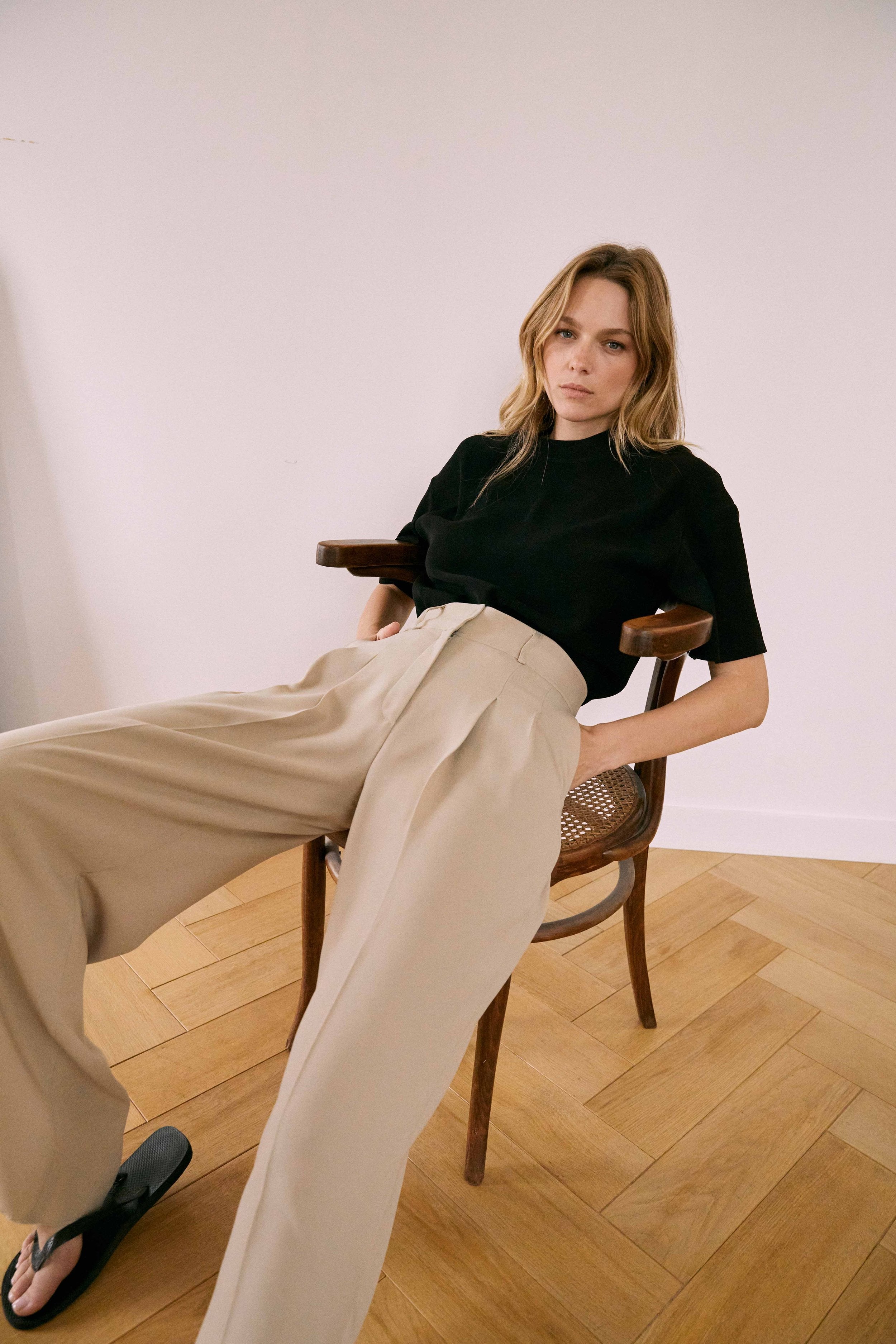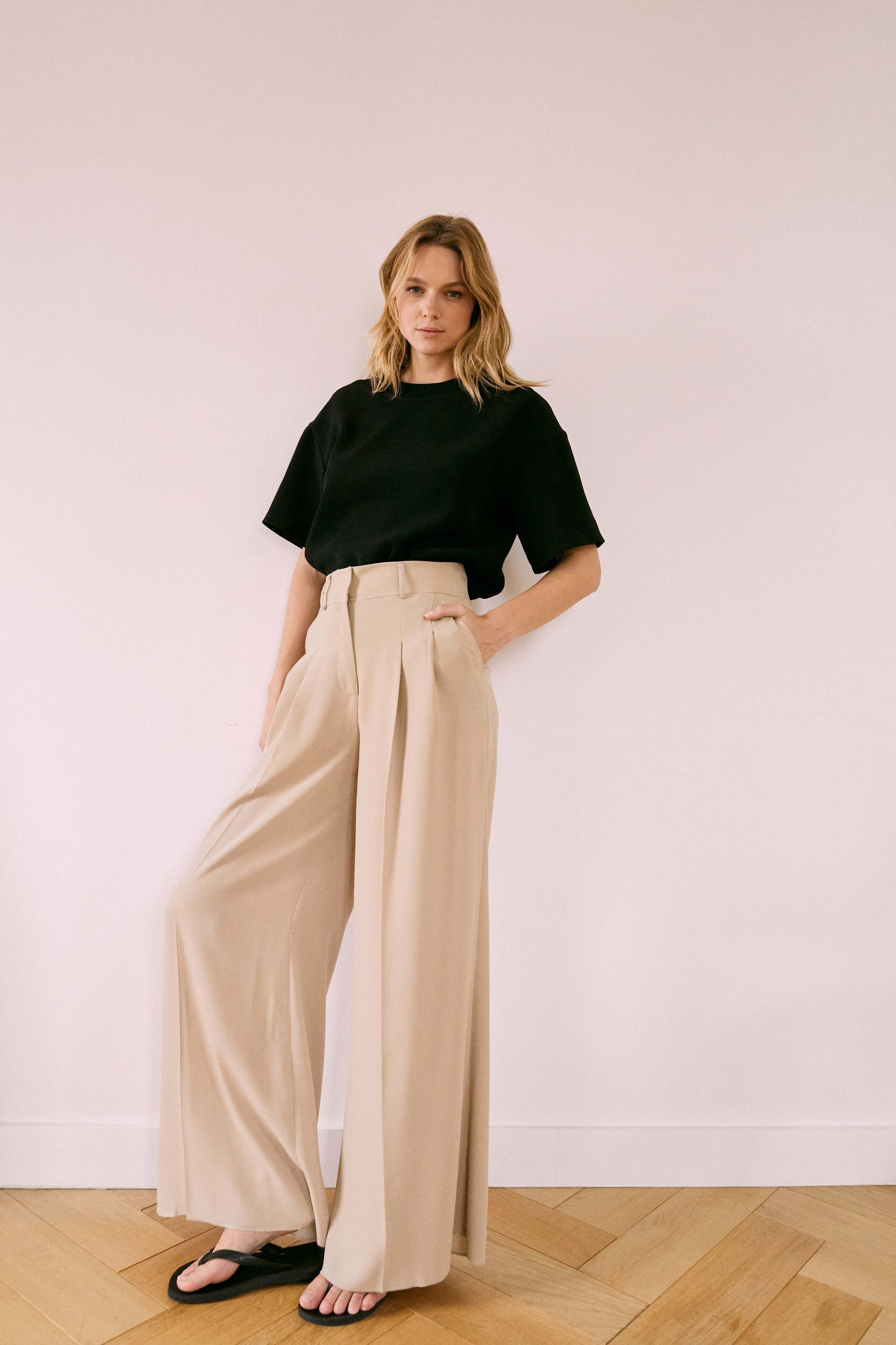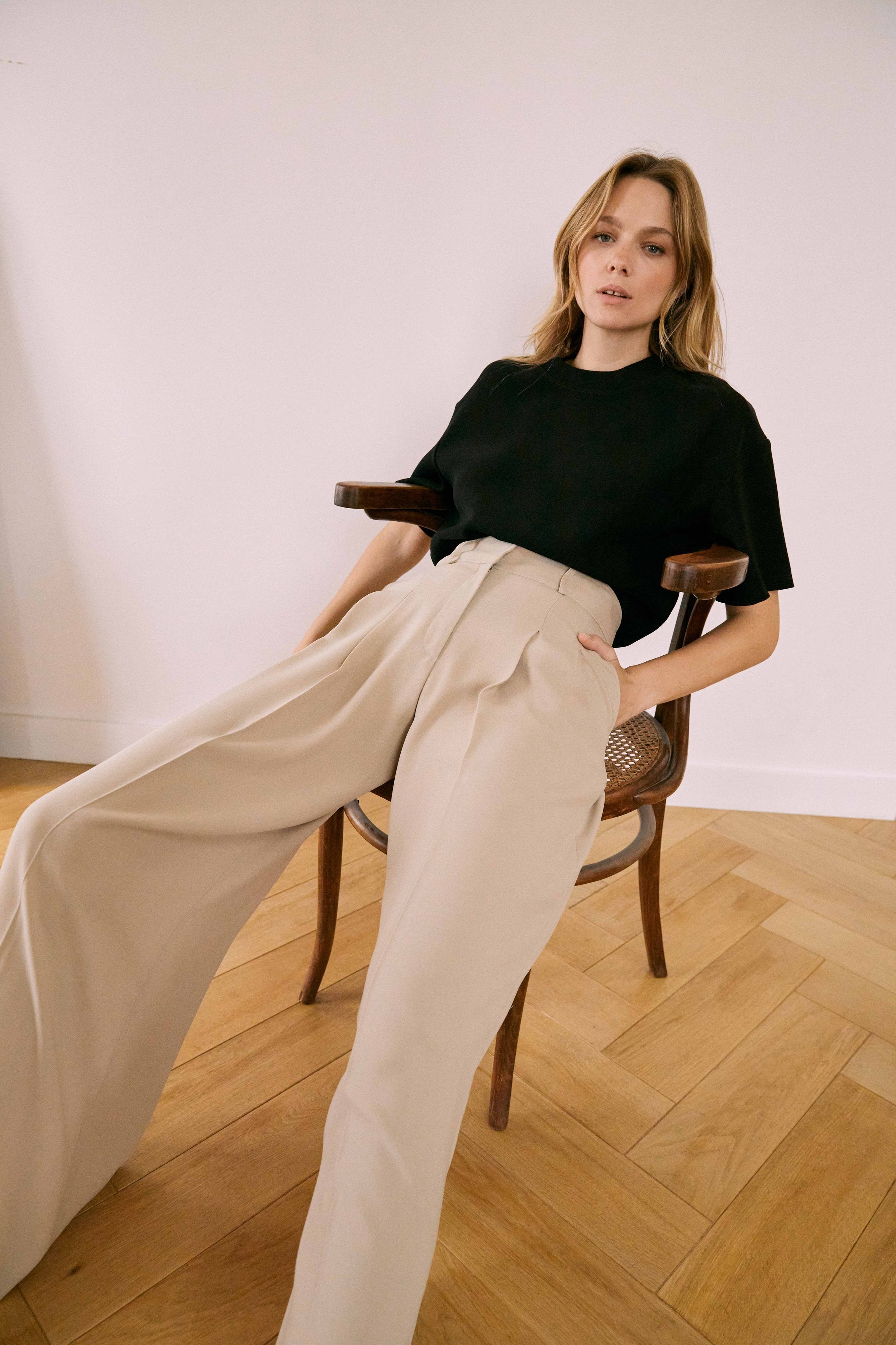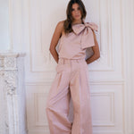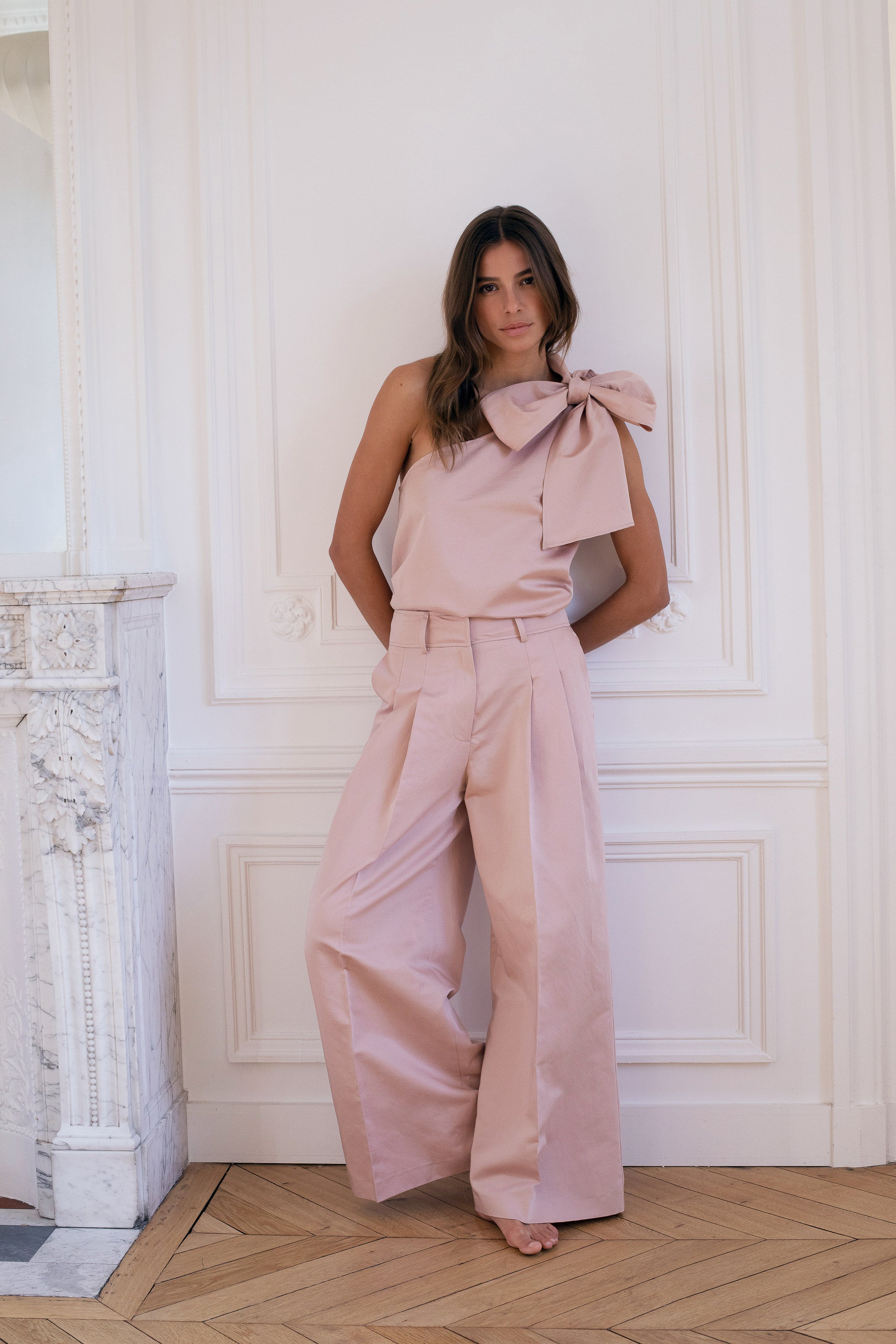 Le Montaigne est le pantalon palazzo ultime, réhaussé de notre touche Rosaé: son tombé fluide, son ampleur parfaite et son plissé couture en feront la pièce maîtresse de votre dressing, qui sublimera tous vos looks et soulignera votre silhouette.