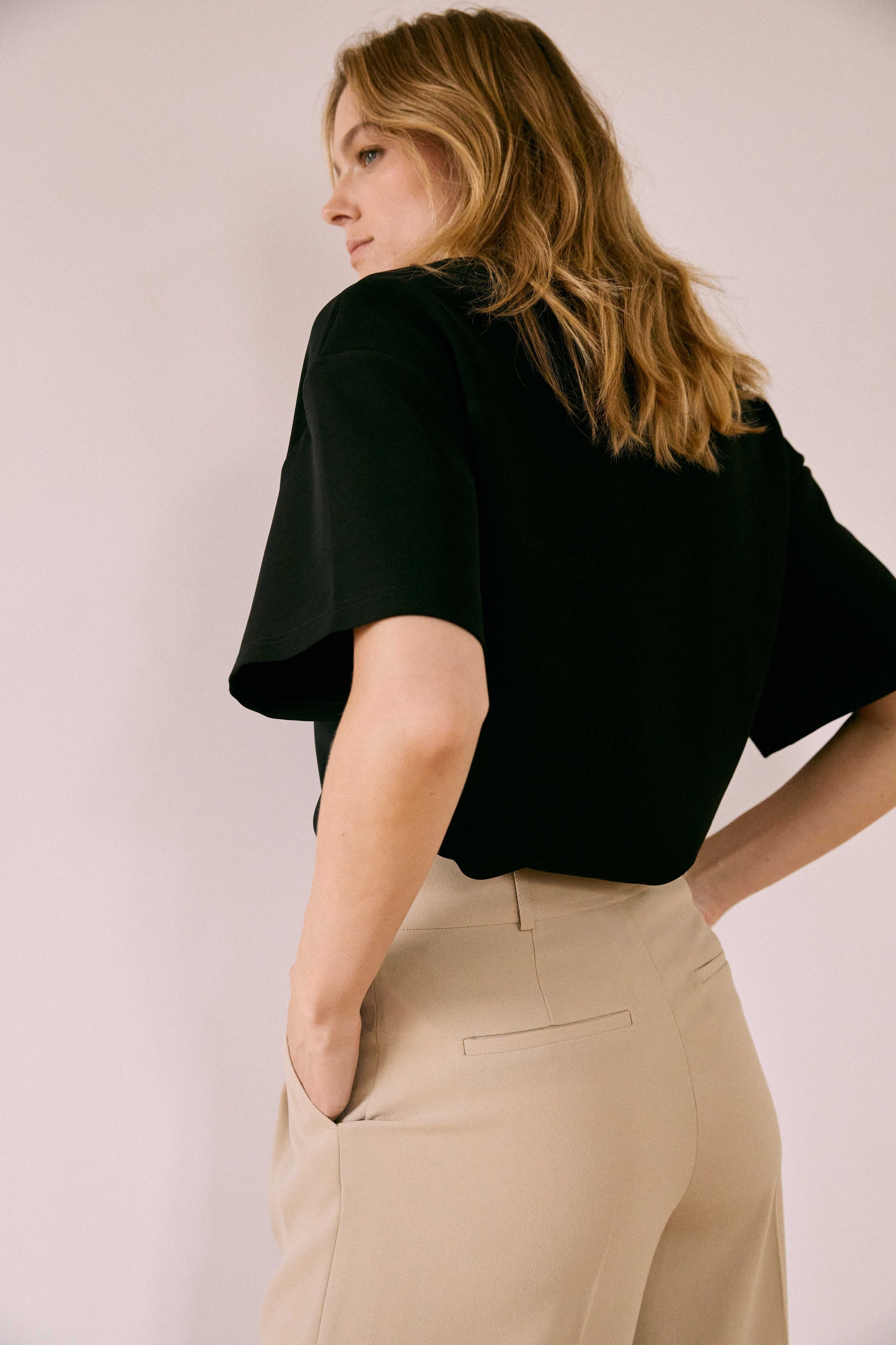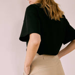 Cette pièce a été confectionnée en Serbie, à l'exception de la version en crêpe noir épais, qui a été confectionnée en Roumanie, où nous collaborons avec un merveilleux atelier de haut niveau, membre de la communauté AMFORI BSCI, qui garantit un niveau élevé de responsabilité économique et sociale.