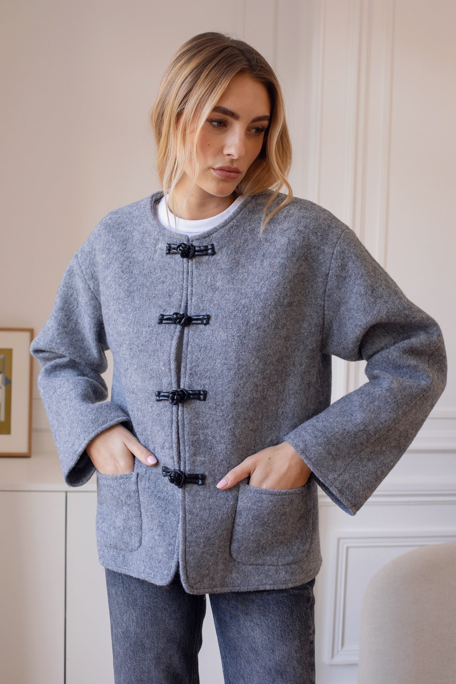 NB: Merci de noter que les brandebourgs sont en similicuir sur les deux couleurs, contrairement aux photos.
