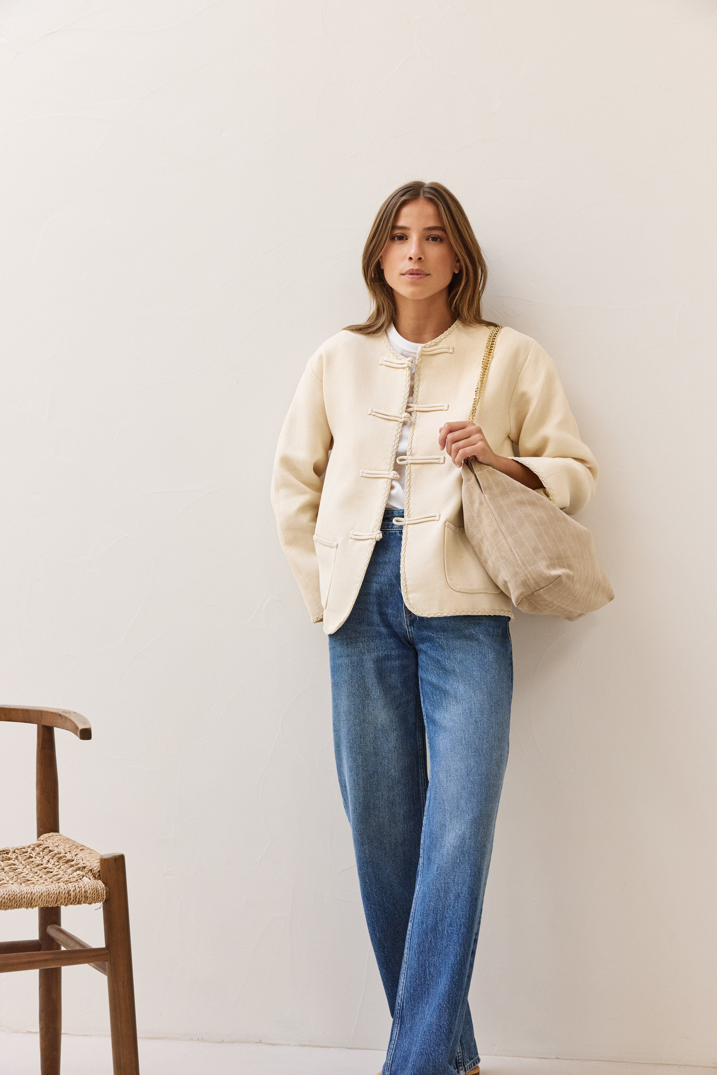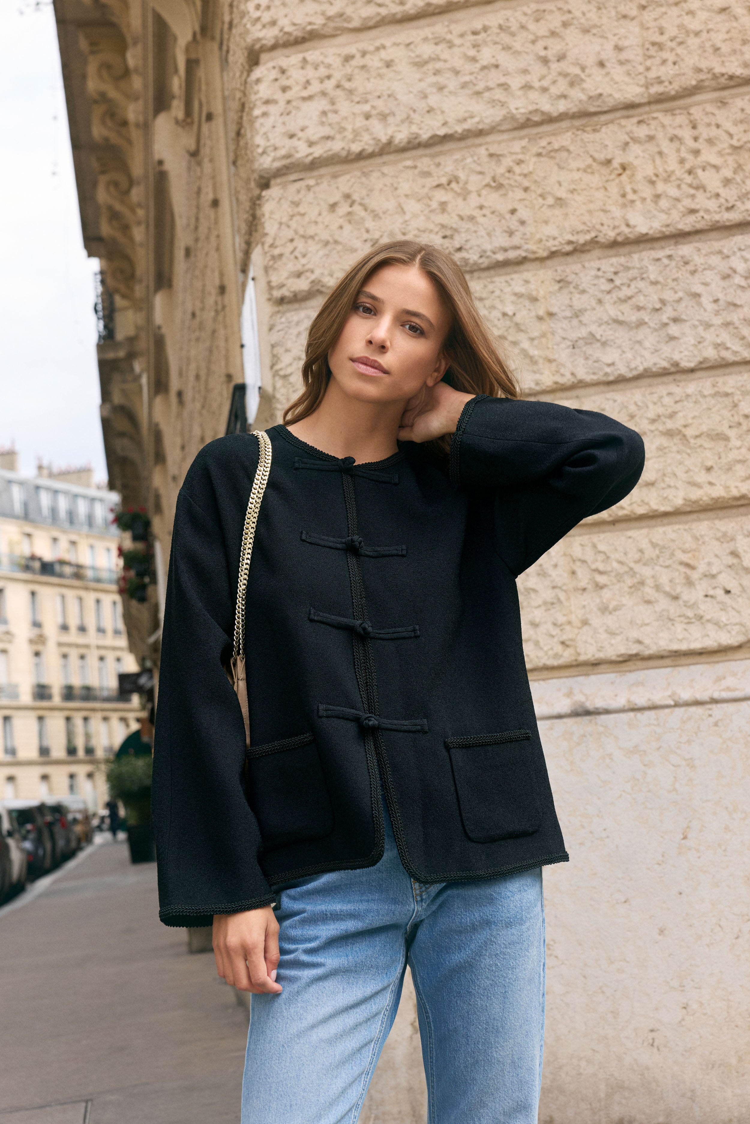 Inspiré du minimalisme scandinave, et rehaussé d'une touche de fancy, Le Newton revisite la veste à brandebourgs. Confectionnée à partir de tissus upcyclés de luxe, la veste Le Newton élèvera instantanément votre look. Ses magnifiques brandebourgs, détail rare et luxueux, en soulignent le volume idéal, et lui donnent cet esprit très couture. Le Newton a décidément ce petit truc en plus, qui donne à votre look un certain flair, saupoudré d'une touche de wahou.