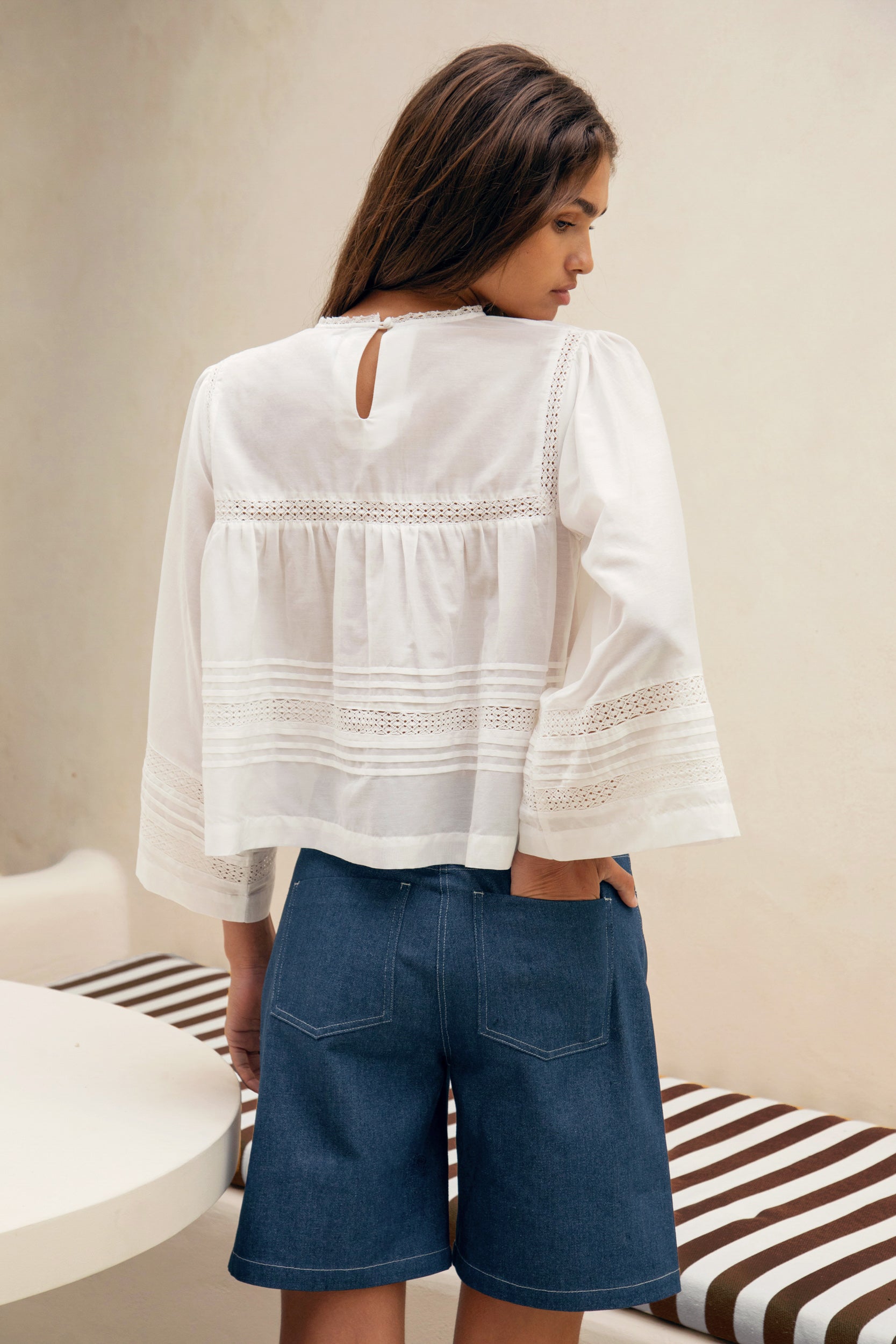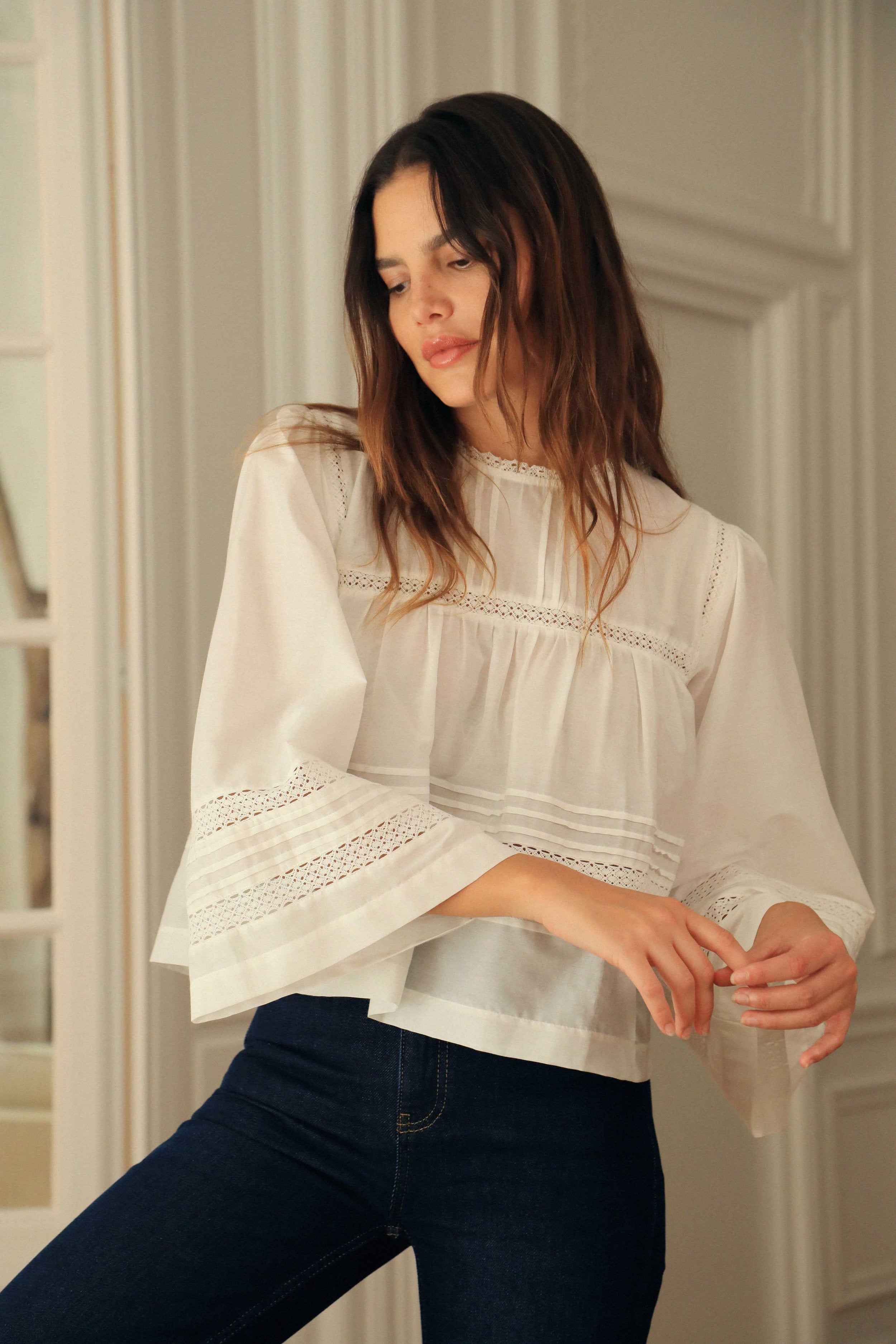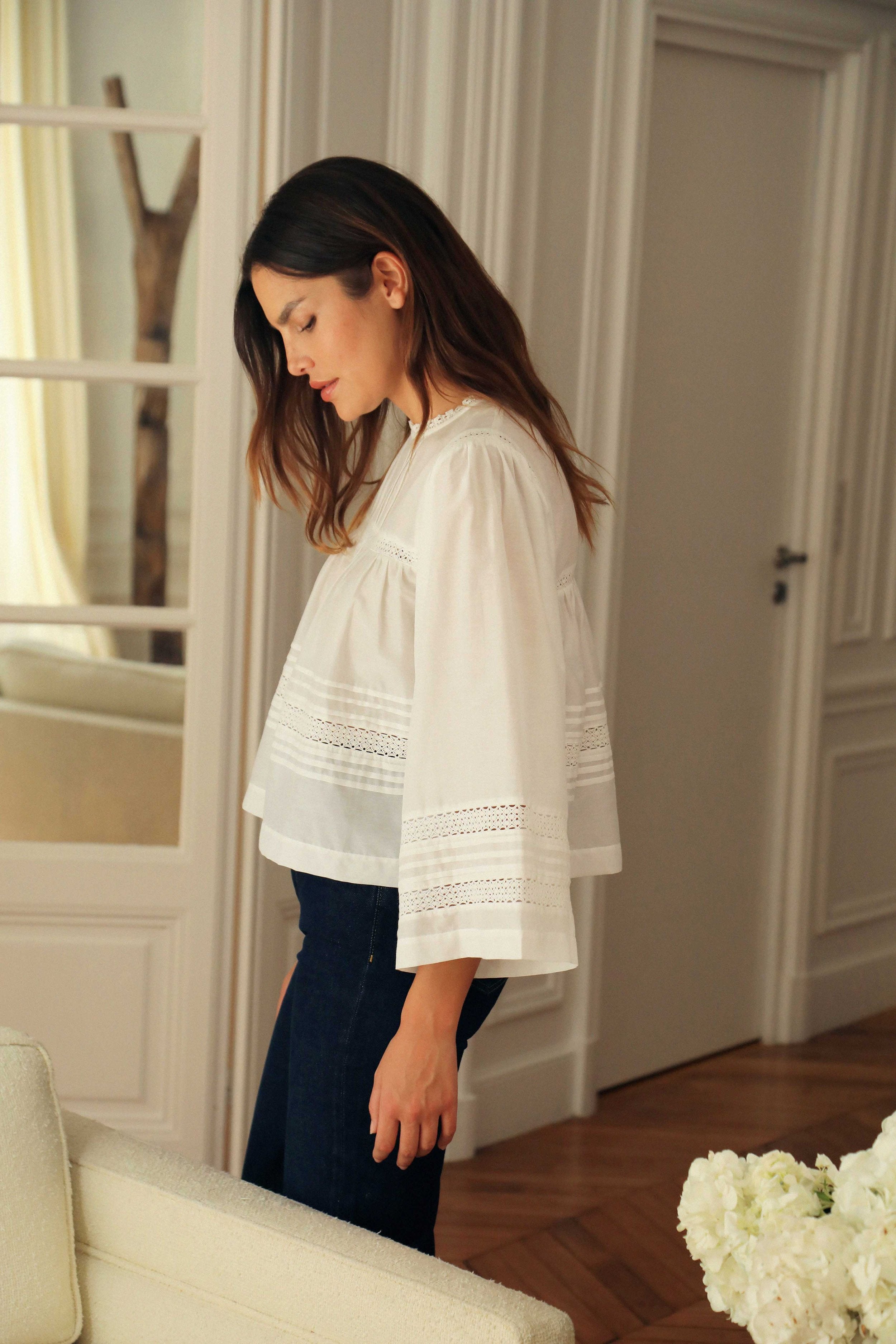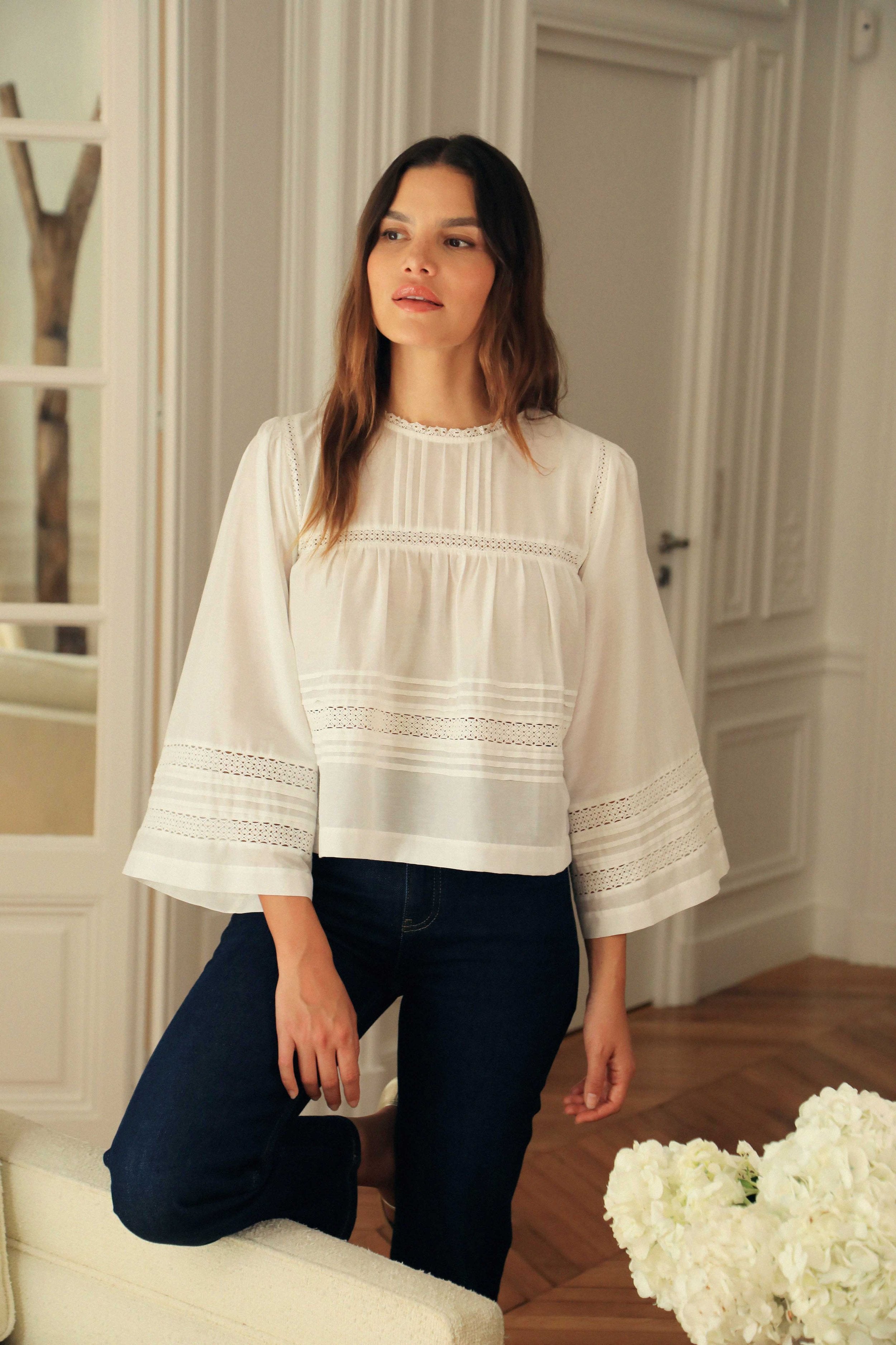 Les blouses brodées esprit bohème sont de ces pièces qui traversent les modes et les saisons avec grâce, en restant toujours intemporelles. Le Pascal, c'est notre interprétation de l'iconique blouse brodée, inspirée du minimalisme scandinave et modernisée avec ses belles manches généreuses au design architectural qui la rendent tellement désirable. Confectionnée en coton et soie pour plus de sophistication et de douceur, nous sommes allées chercher le savoir-faire d'exception reconnu de l'Inde auprès d'un atelier travaillant pour les Maisons les plus pretigieuses pour vous offrir ce petit bijoux de blouse.