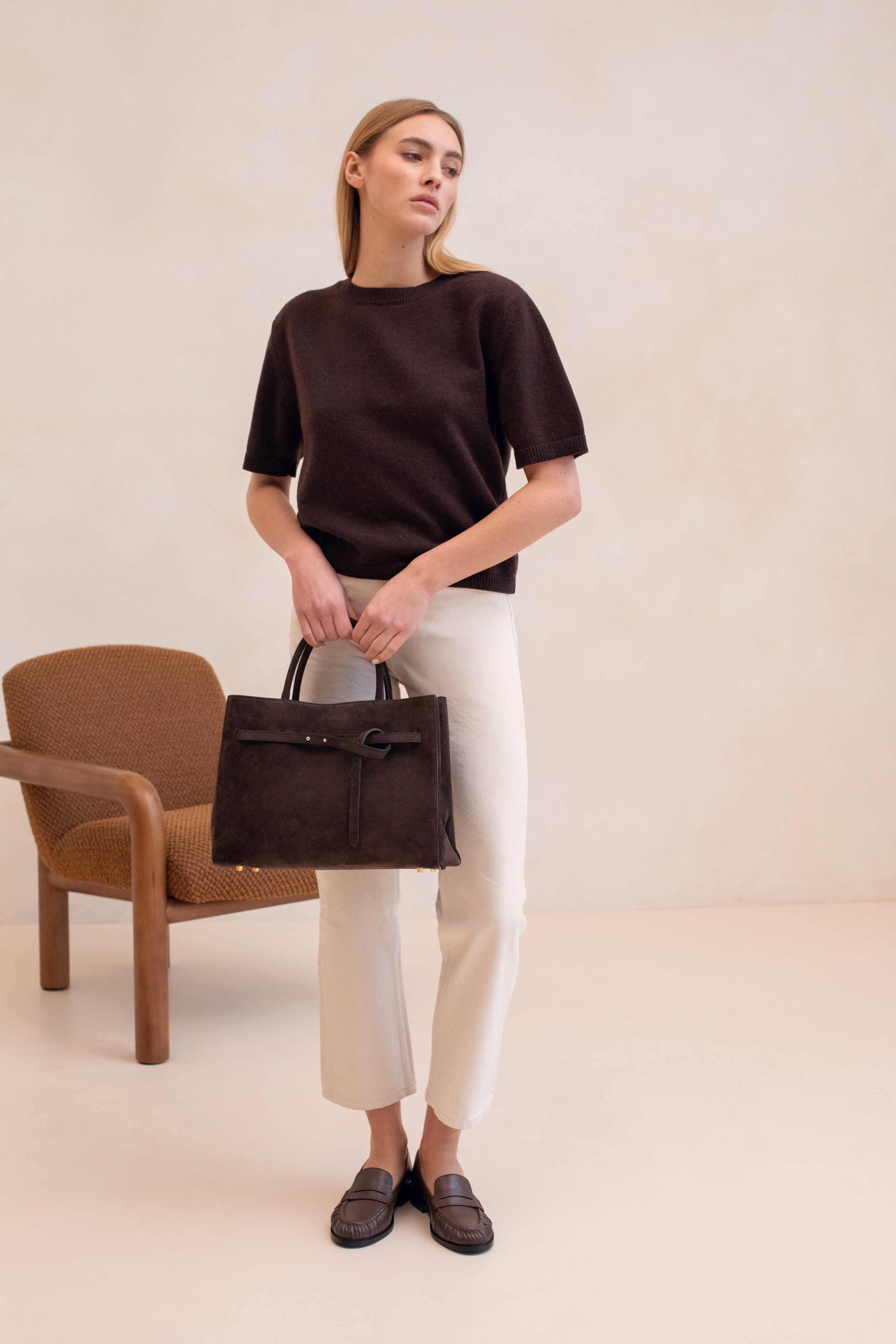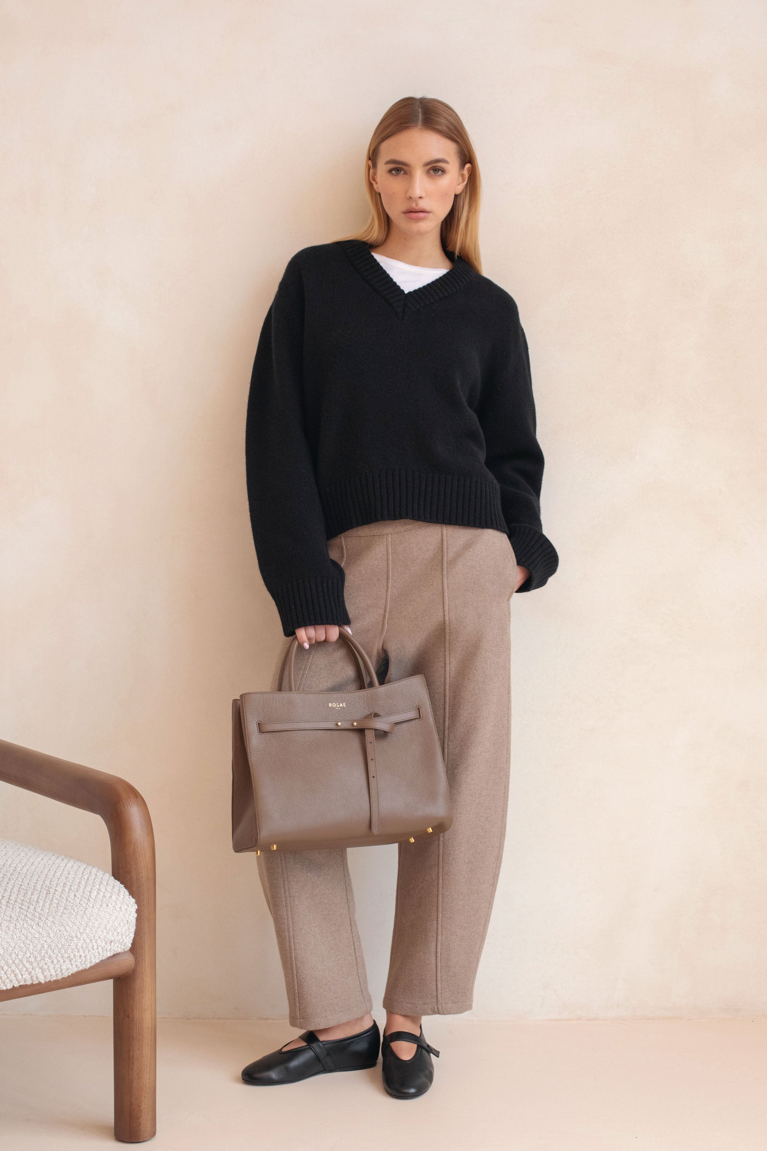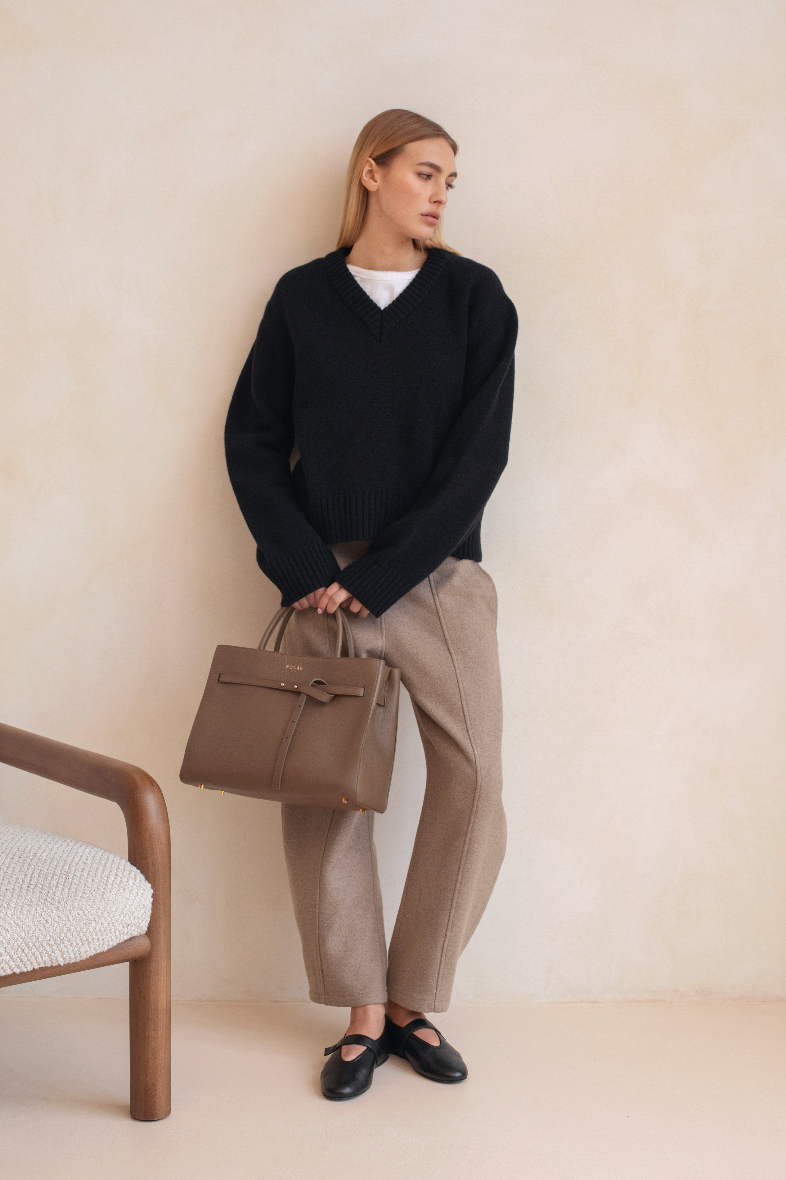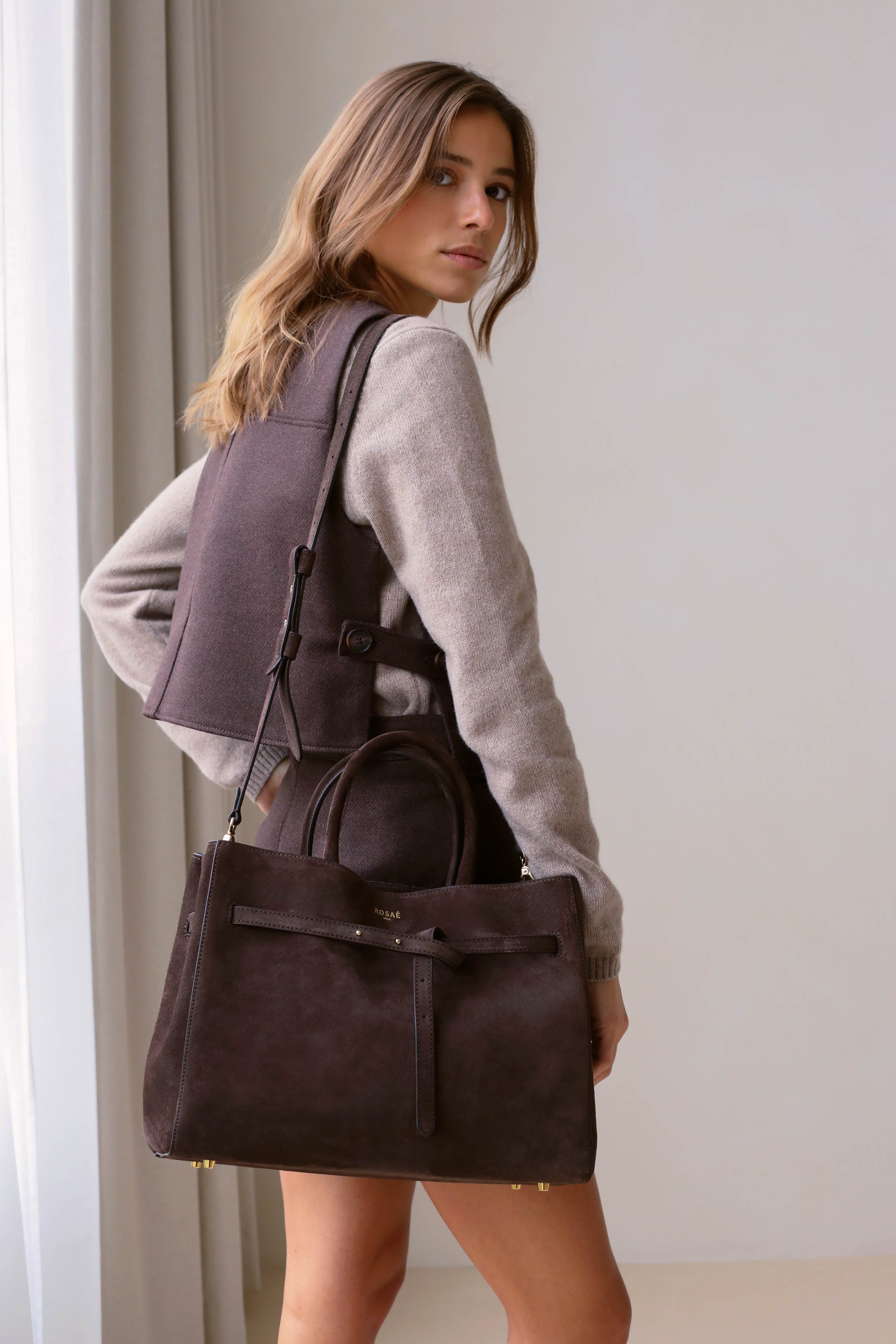 Jouant sur les codes du sac de jour tout en y apportant une touche plus minimaliste et couture, Le Pimpéan incarne à la perfection le délicat équilibre entre praticité et désirabilité.