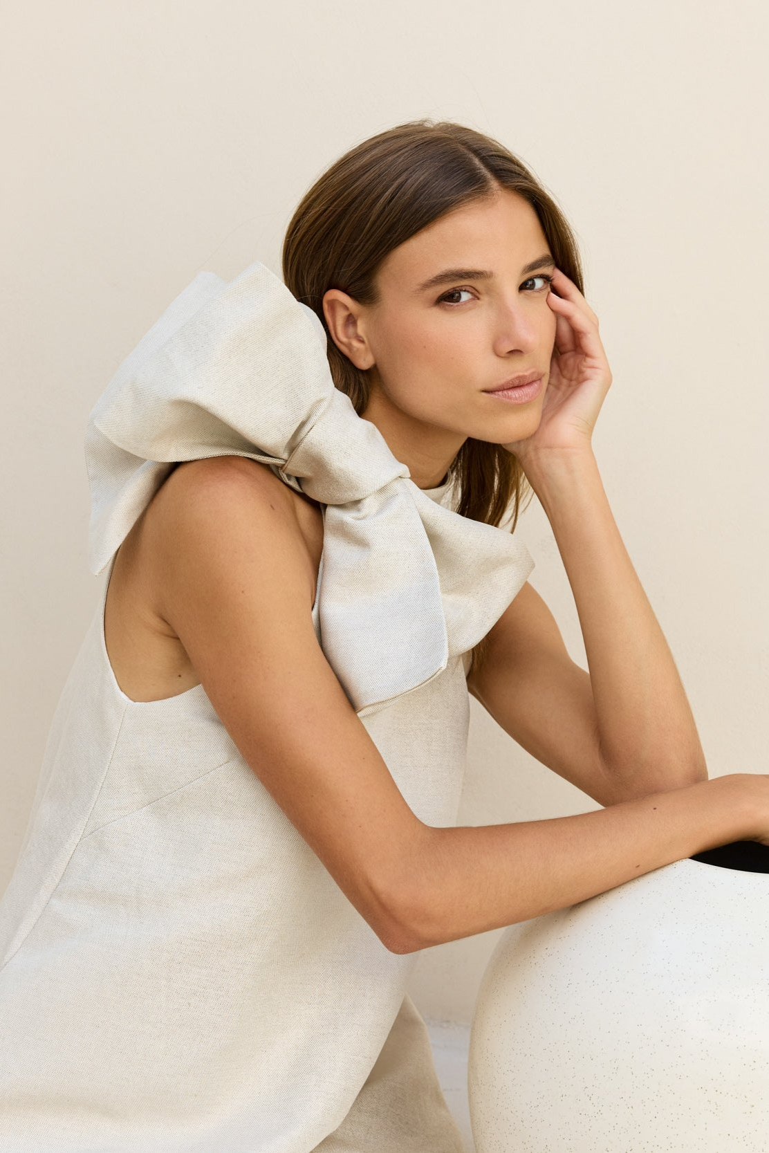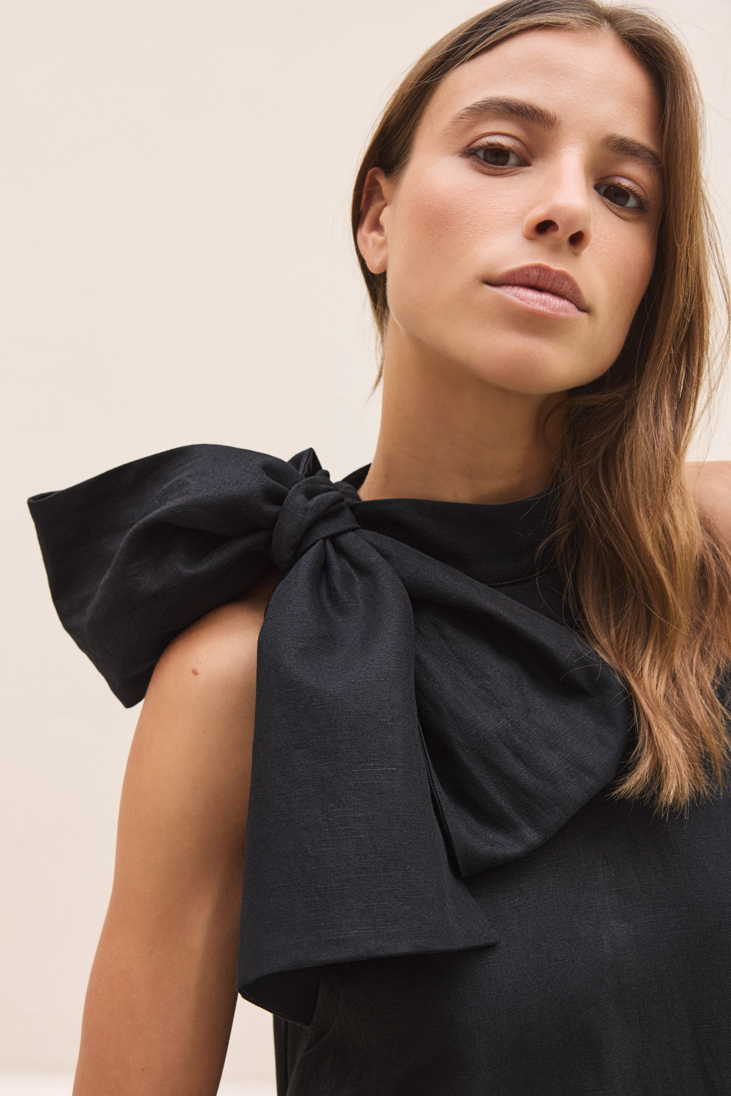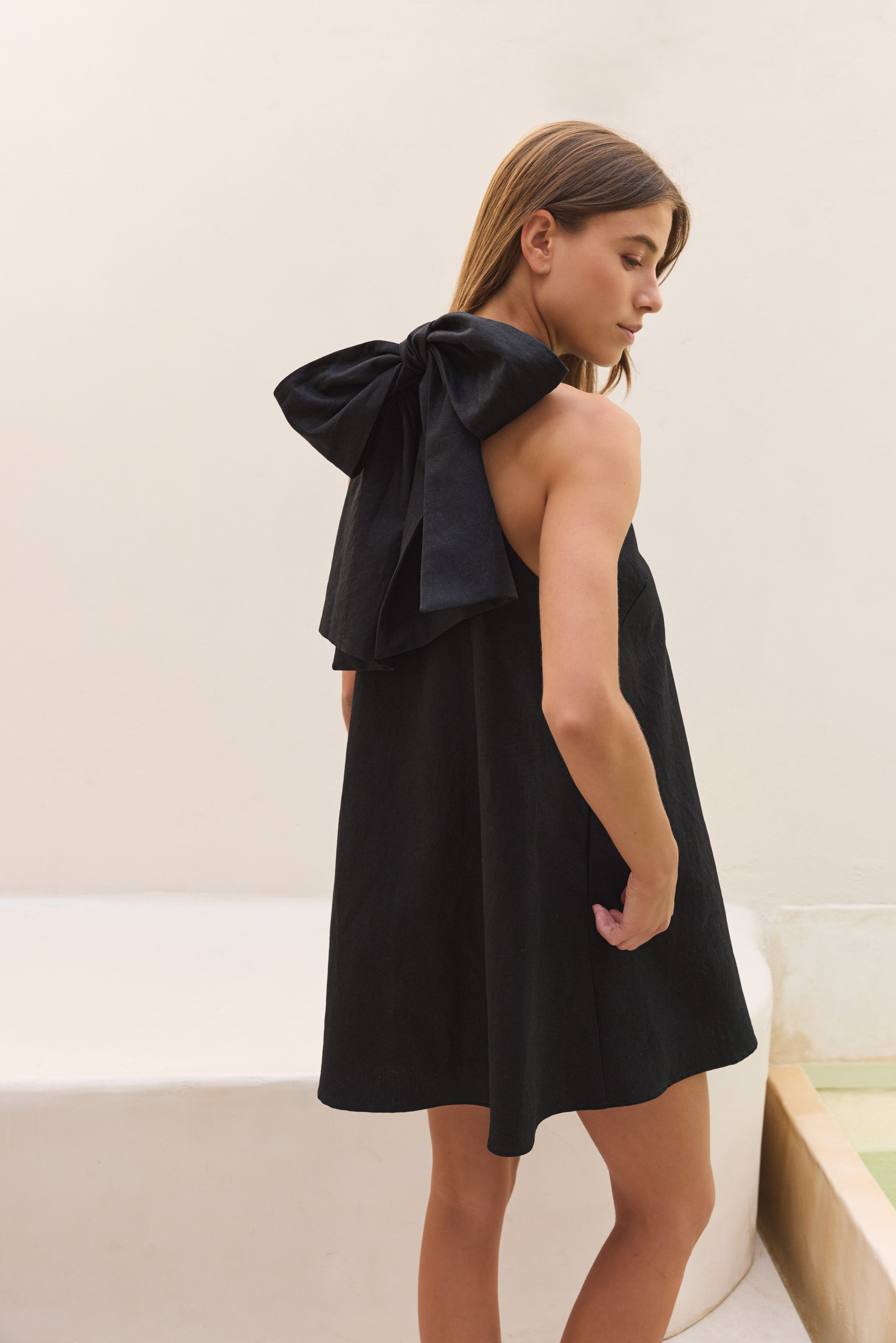 La Robe Mini à Col Montant avec son Noeud Tellement Sculptural