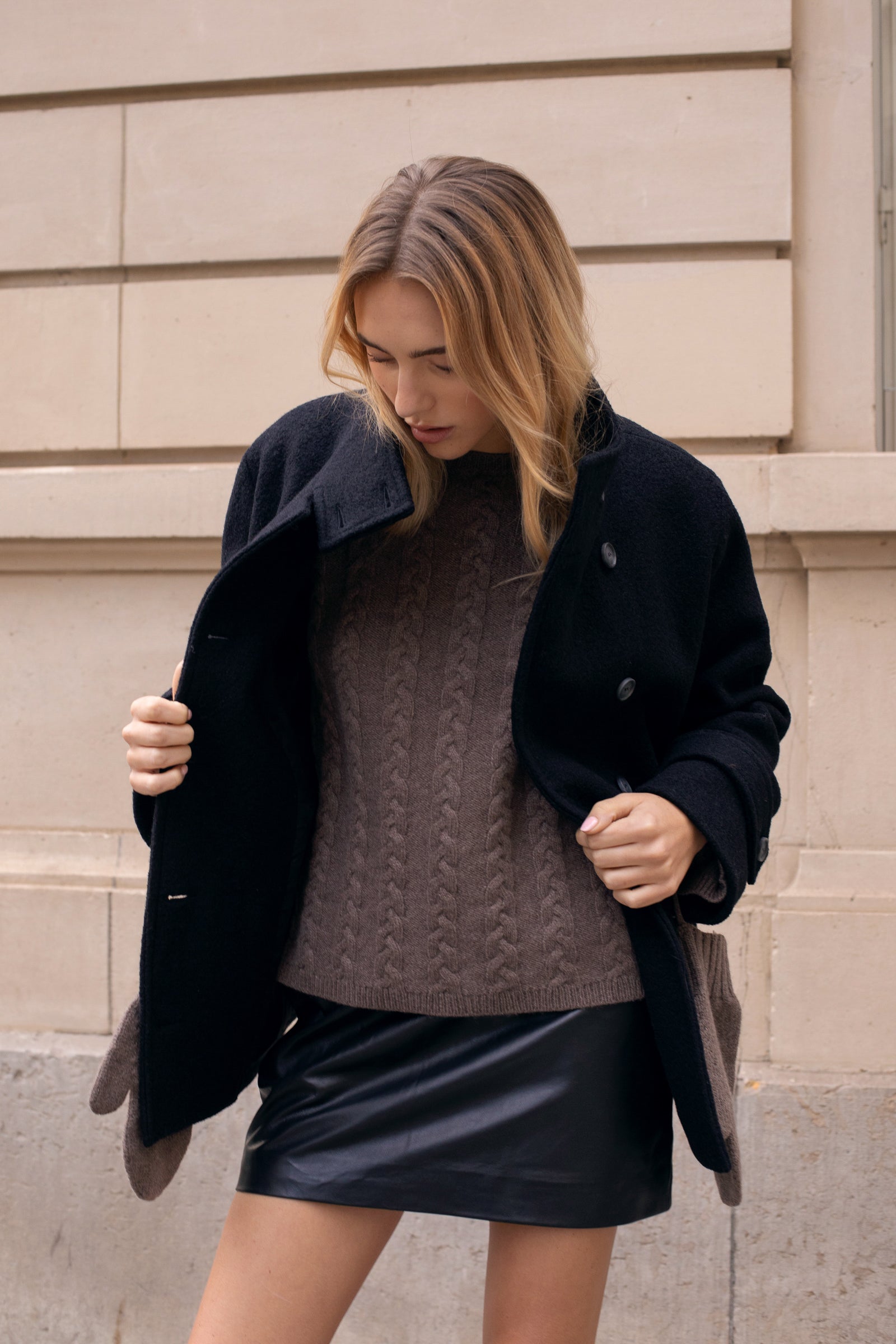 Notre laine réglisse est upcyclée et provient des stocks dormants d'une Maison de Luxe Italienne. Notre lainage chocolat a été confectionné en Italie. Notre laine sésame provient des Pays Bas.