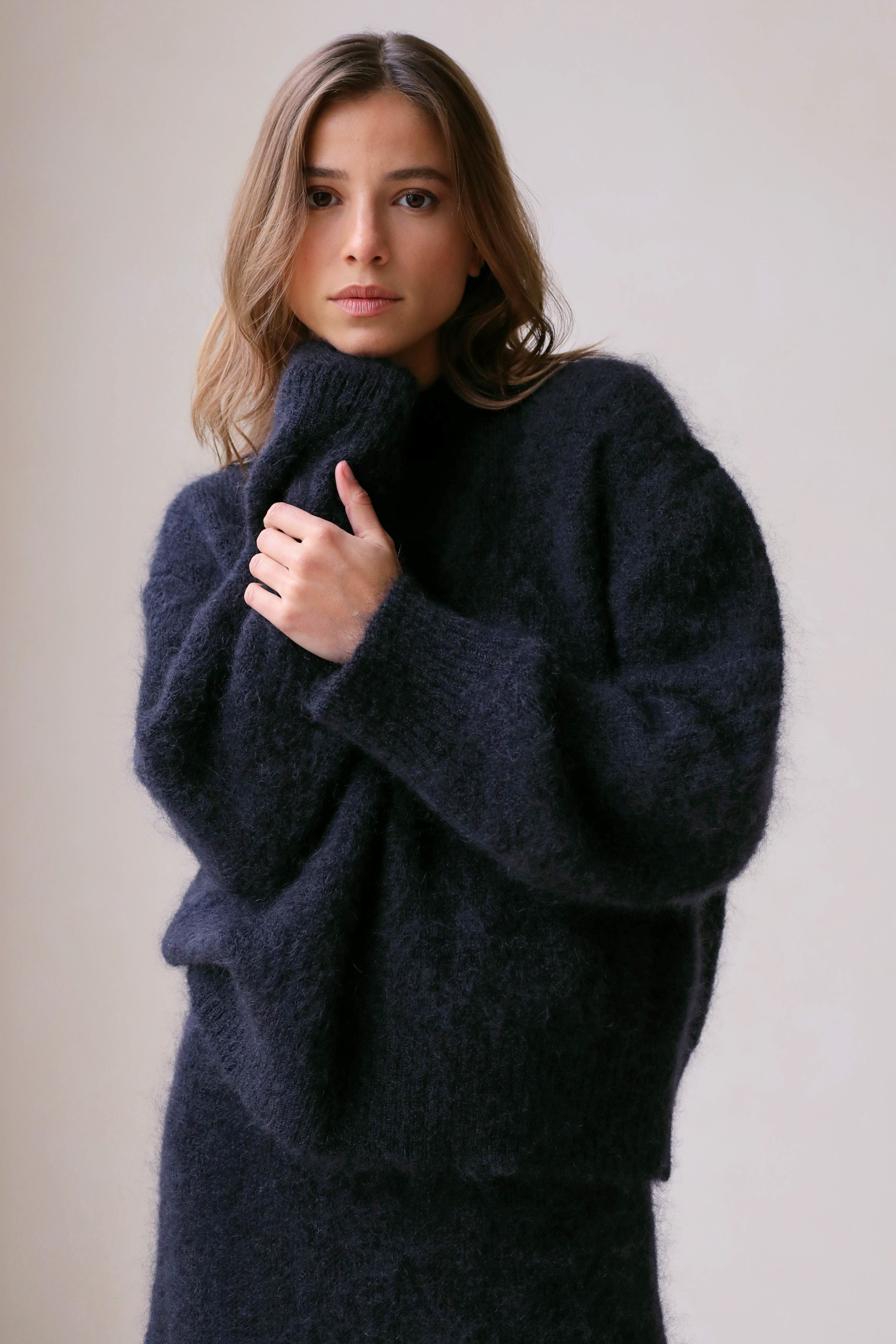 Aussi iconique que toutes nos autres mailles, Le Raviel, c'est la versatilité à l'état pur: que vous le portiez avec un short, un jupe, un pantalon en cuir ou un jean, vous obtiendrez un look canon, avec ce petit truc en plus, grâce à sa maille fluffy de rêve.