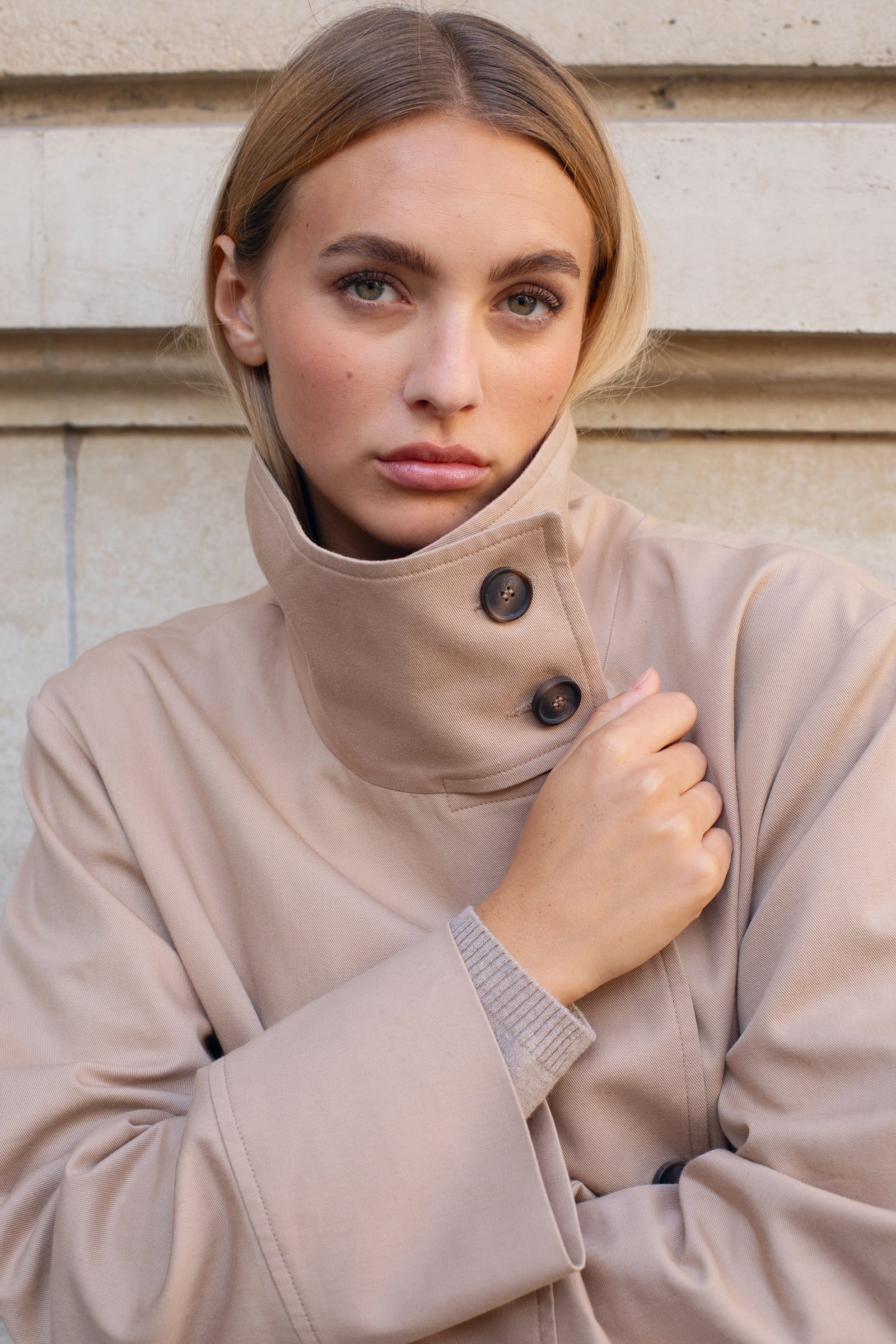 Confectionné dans notre coton biologique certifié GOTS déperlant, Le Renoir a tout de la pièce must-have et indispensable: légèrement loose, idéalement long et décoré d'une magnifique rangée de nos boutons signature gravés, Le Renoir, c'est la pièce esprit scandi et impeccablement minimaliste qu'il manquait à votre dressing de mi-saison pour un look iconique. Avec ses détails canons comme ses empiècements boutonnés sur les côtés et son magnifique col montant, Le Renoir est terriblement chic!