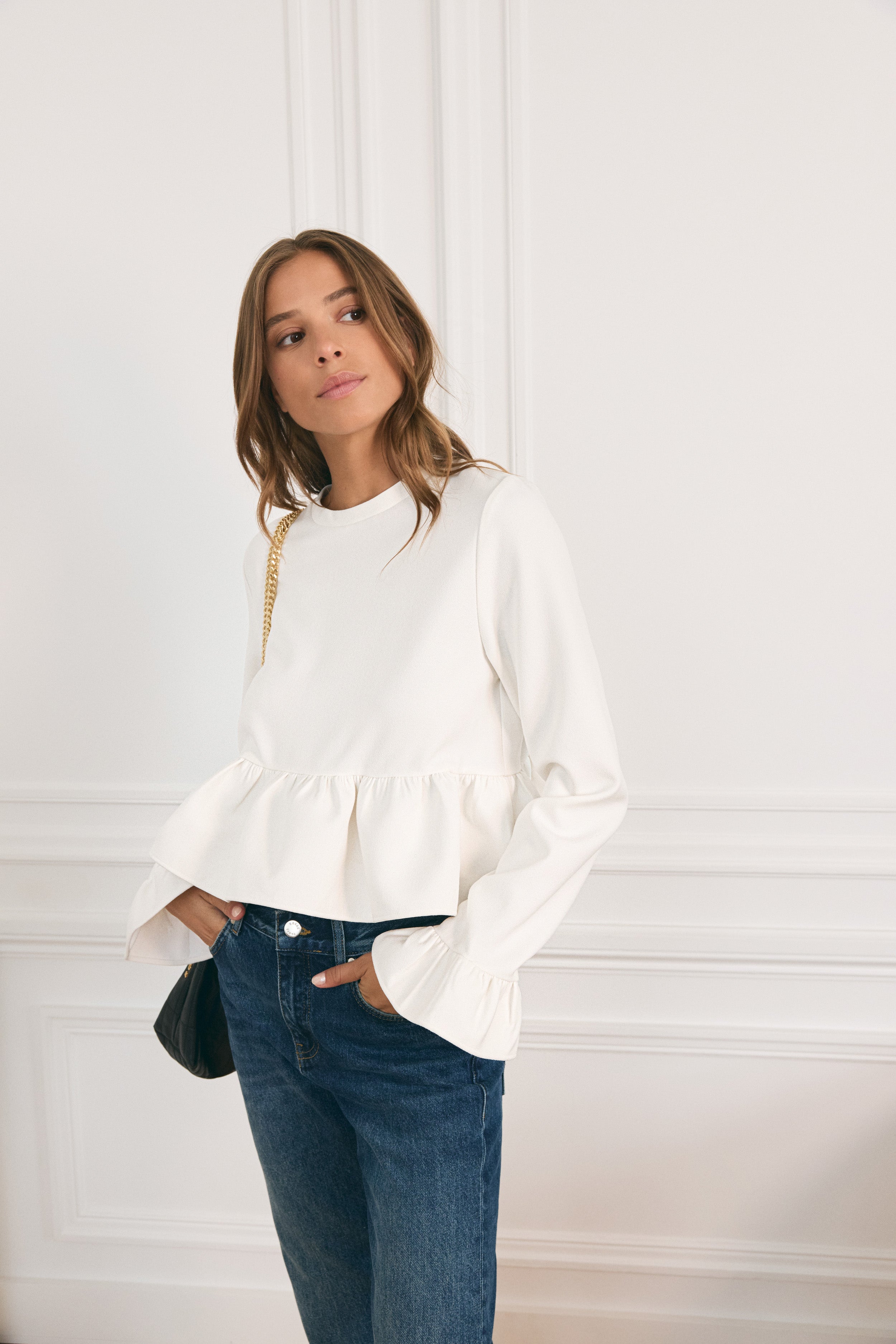 Alliance idéale entre silhouette boxy et volants tellement chou aux poignets et à la taille, Le Rodin, c'est la blouse babydoll ultime, mais réinterprétée d'une touche légèrement minimaliste qui la rend tout aussi moderne qu'intemporelle. Avec ses tissus texturés de rêve qui lui donnent le volume parfait, c'est la blouse que vous ne quitterez plus.