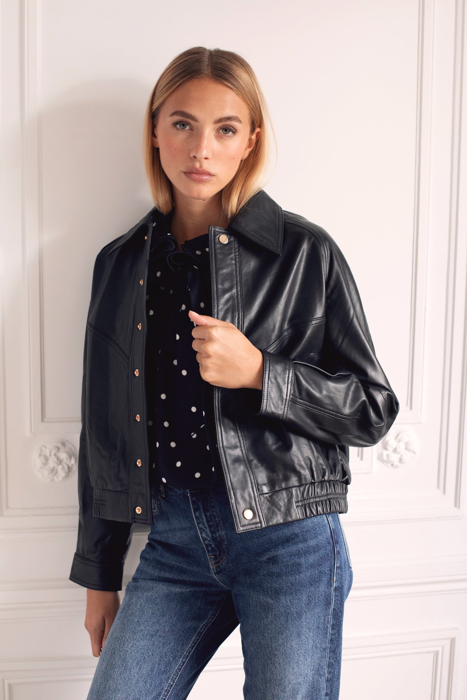 Pièce incontournable du dressing de rentrée, la veste en cuir façon bombers est aussi pointue qu'elle est désirable.