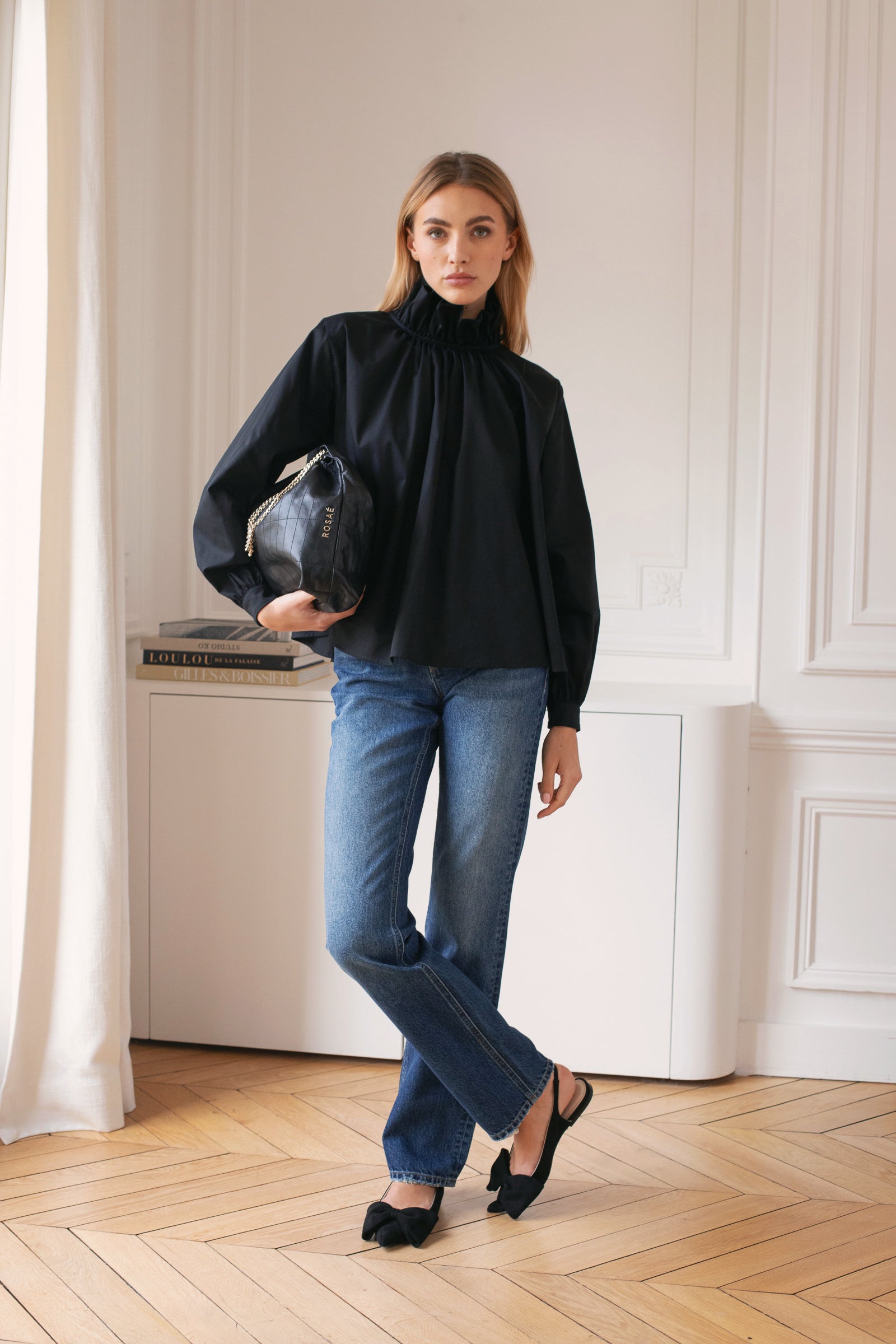 Affirmée et très sculpturale, la blouse Le Tautou se veut aussi spectaculaire qu'intemporelle. Avec son col montant tout en fronces, la blouse Le Tautou offre une allure très architecturale, tout en restant épurée et facilement associée à vos pièces favorites - portée seule ou sous une belle maille en faisant dépasser le col, c'est l'assurance d'un look qui ne laissera personne indifférent. Impeccablement finie par des manches ballon et une silhouette légèrement trapèze, Le Tautou se veut aussi audacieuse qu'essentielle.