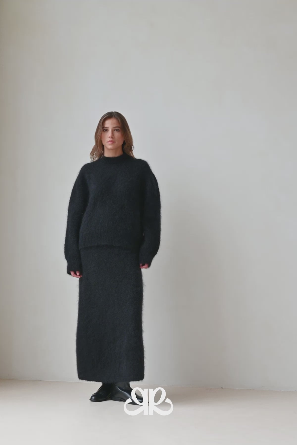 La Jupe en Maille en Kid Mohair Brossé Ultra Sculpturale