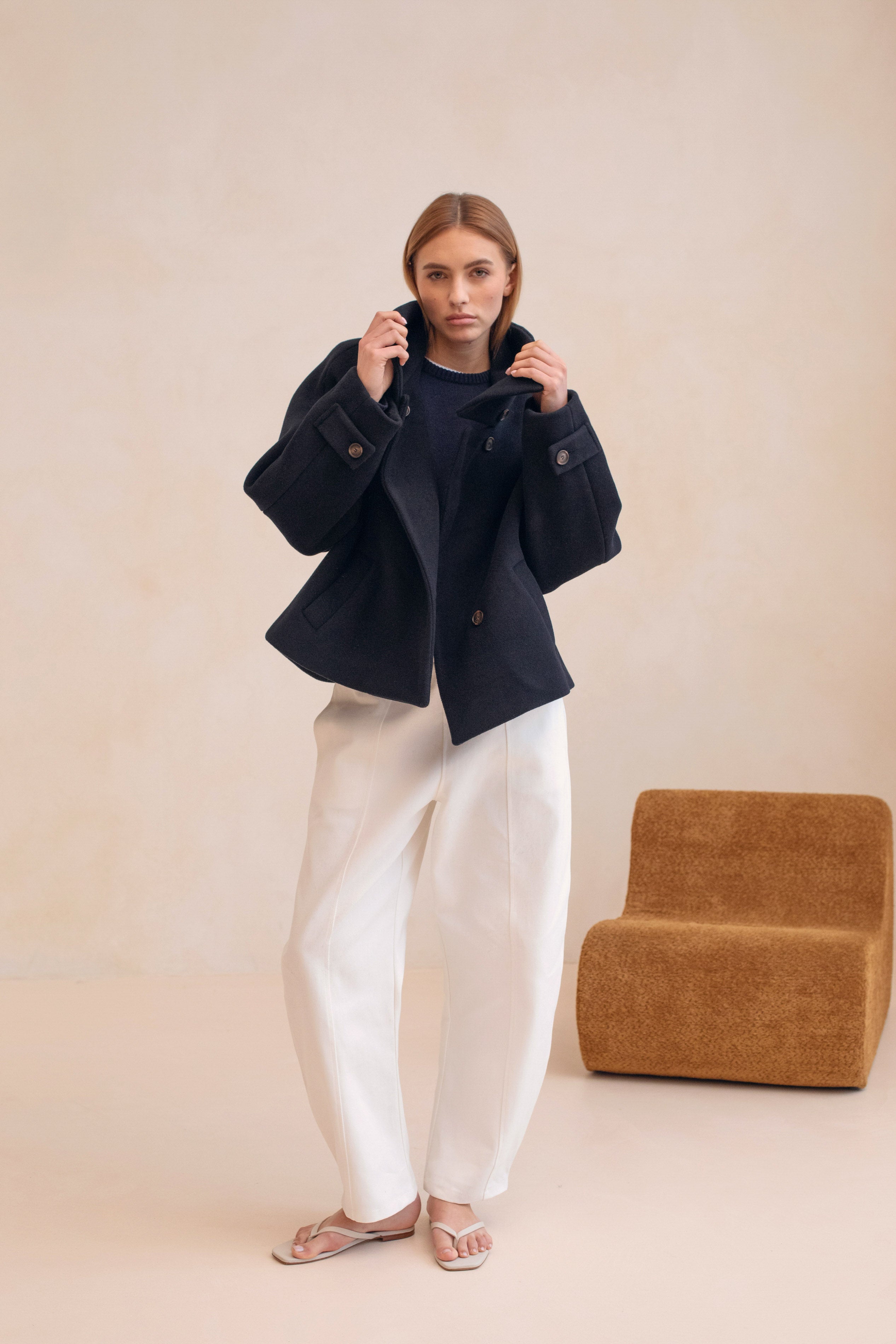 Le Tchaïkovski, c'est le must-have le plus désirable de la saison, la pièce forte par excellence. Inspiré des défilés, Le Tchaïkovski se pare d'une allure très architecturale avec sa coupe barrel: son fit ample tout en rondeur et légèrement fuselé en bas de jambe, ainsi que ses coutures contrastées, lui donnent une silhouette inoubliable. Une pièce audacieuse qui élèvera instantanément votre look d'une touche très pointue.