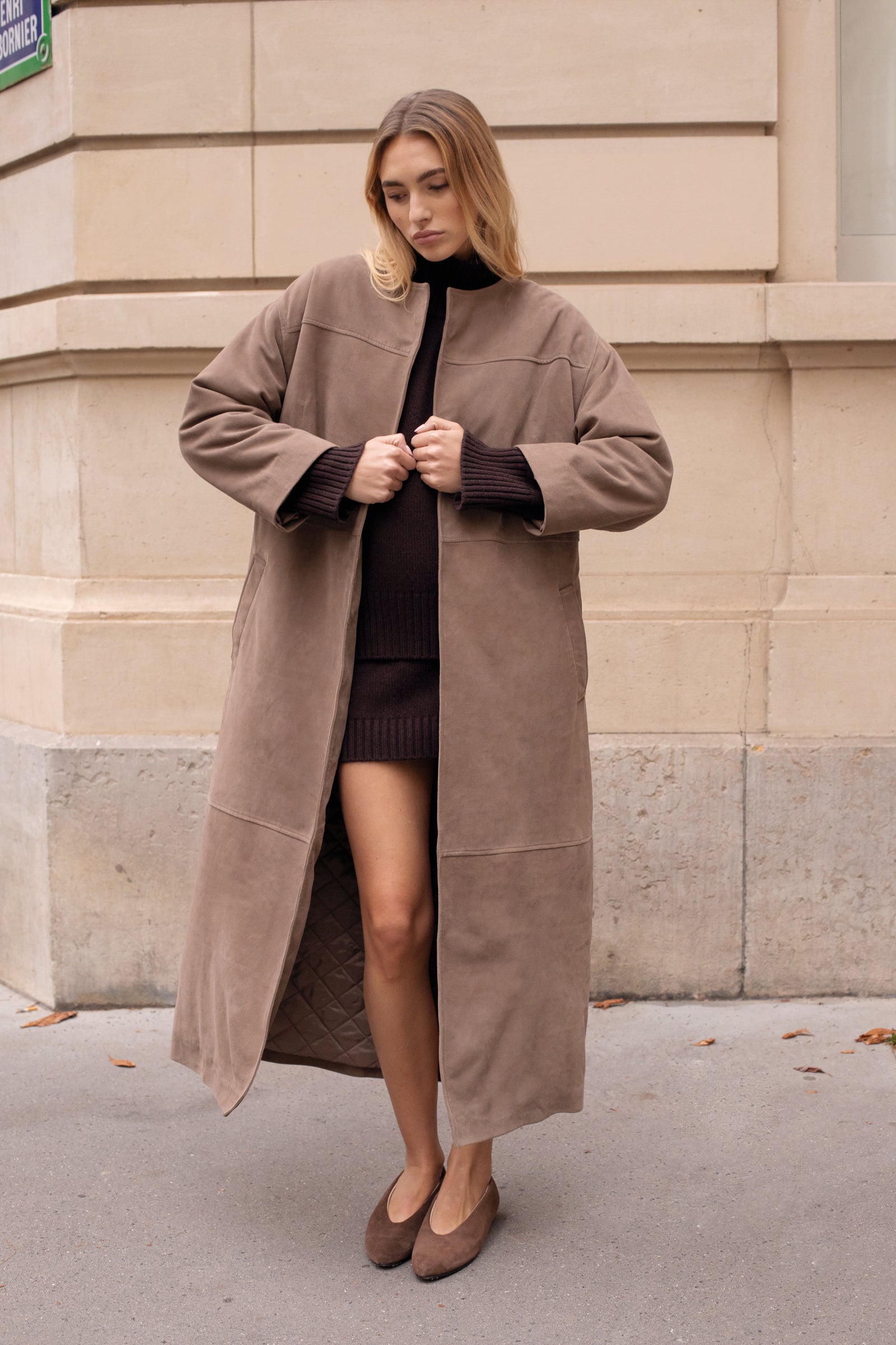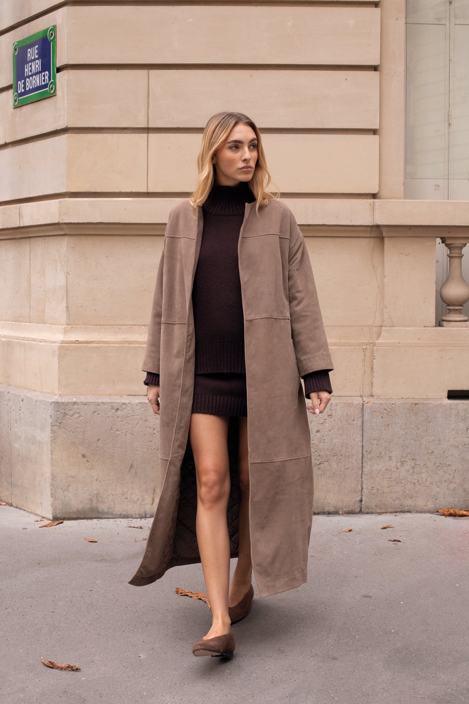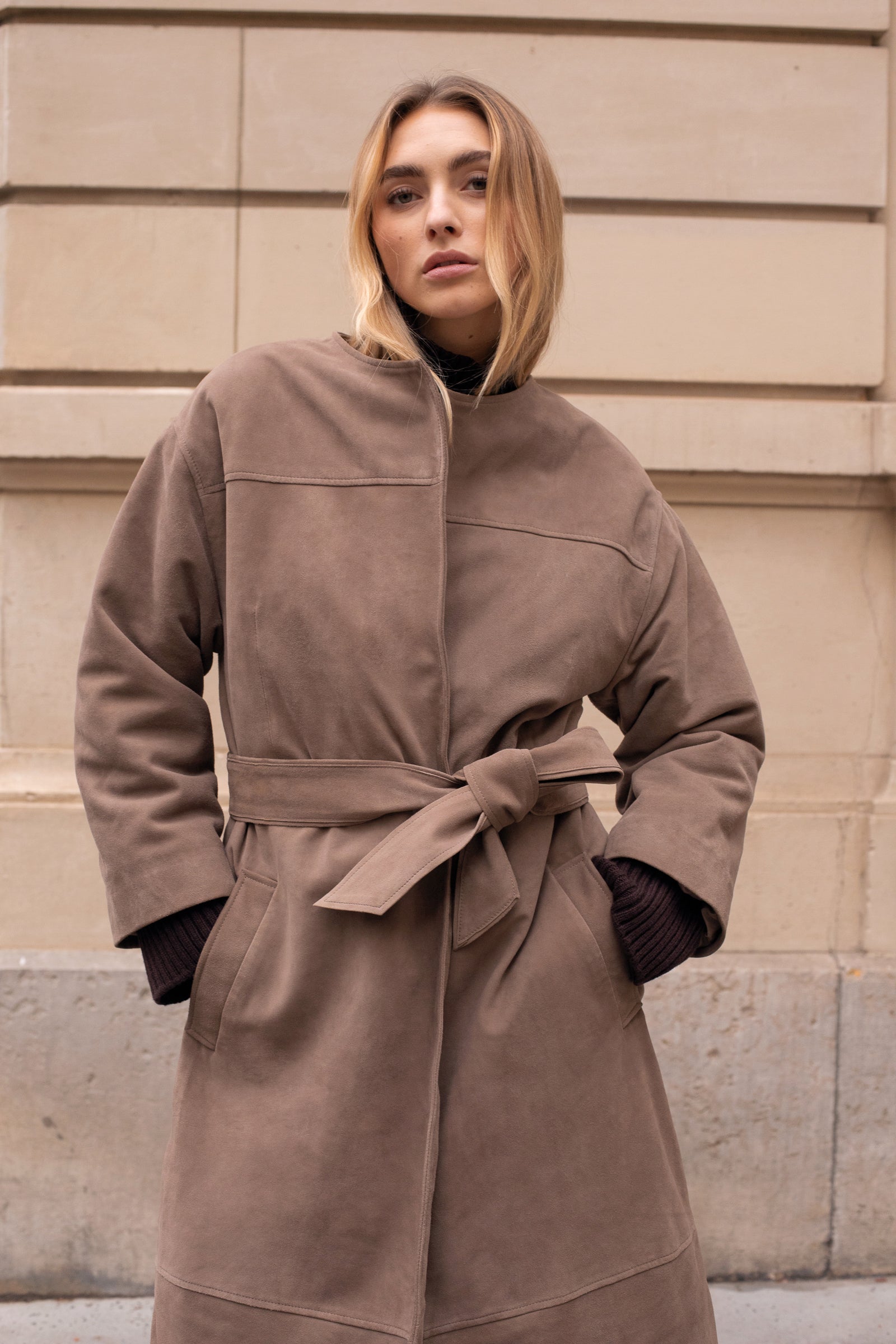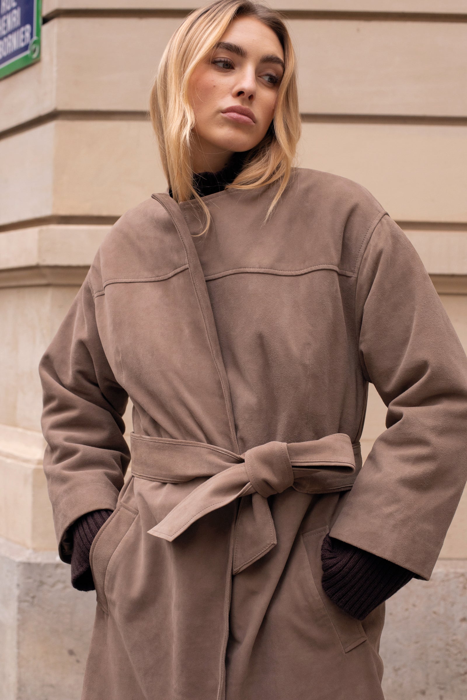 Le Manteau Long Ceinturé en Daim, Tellement Chic